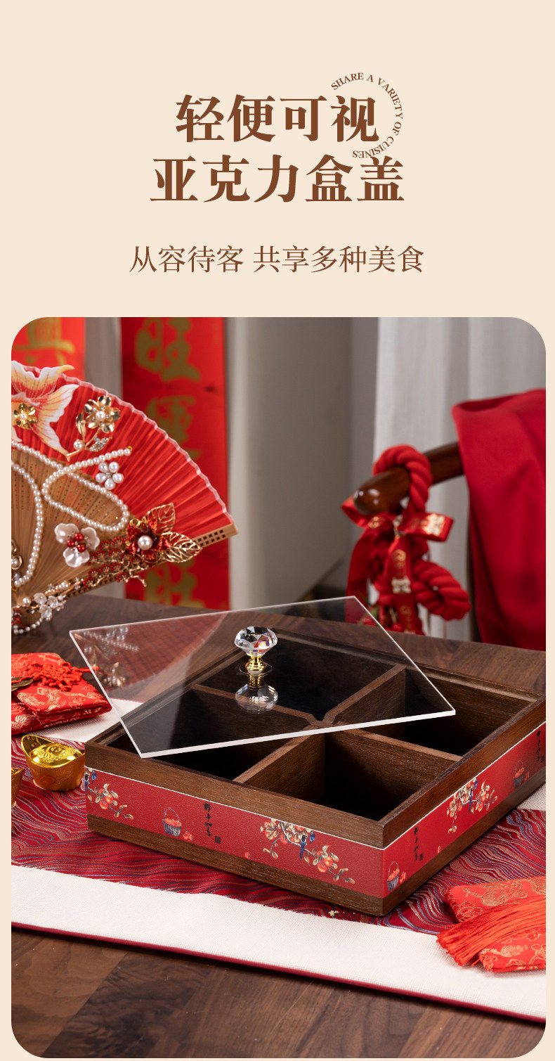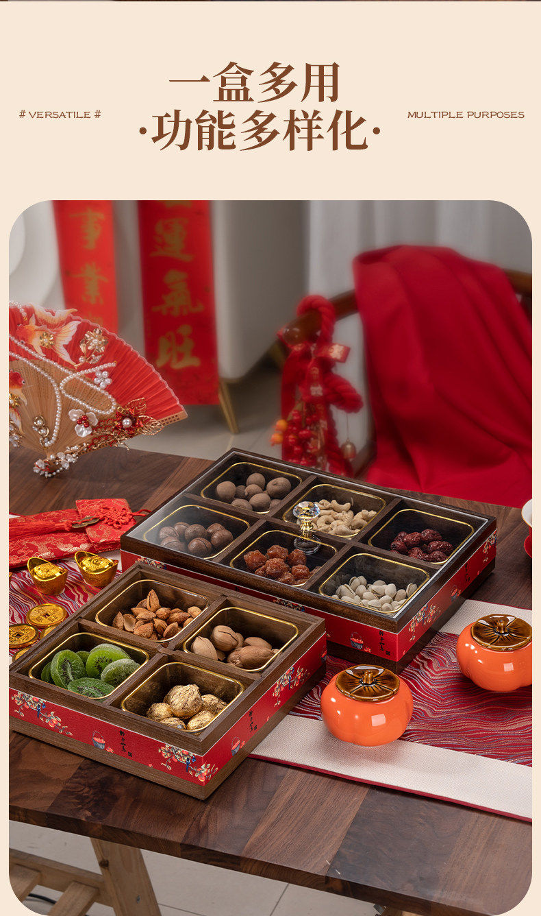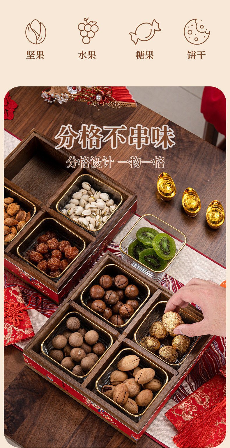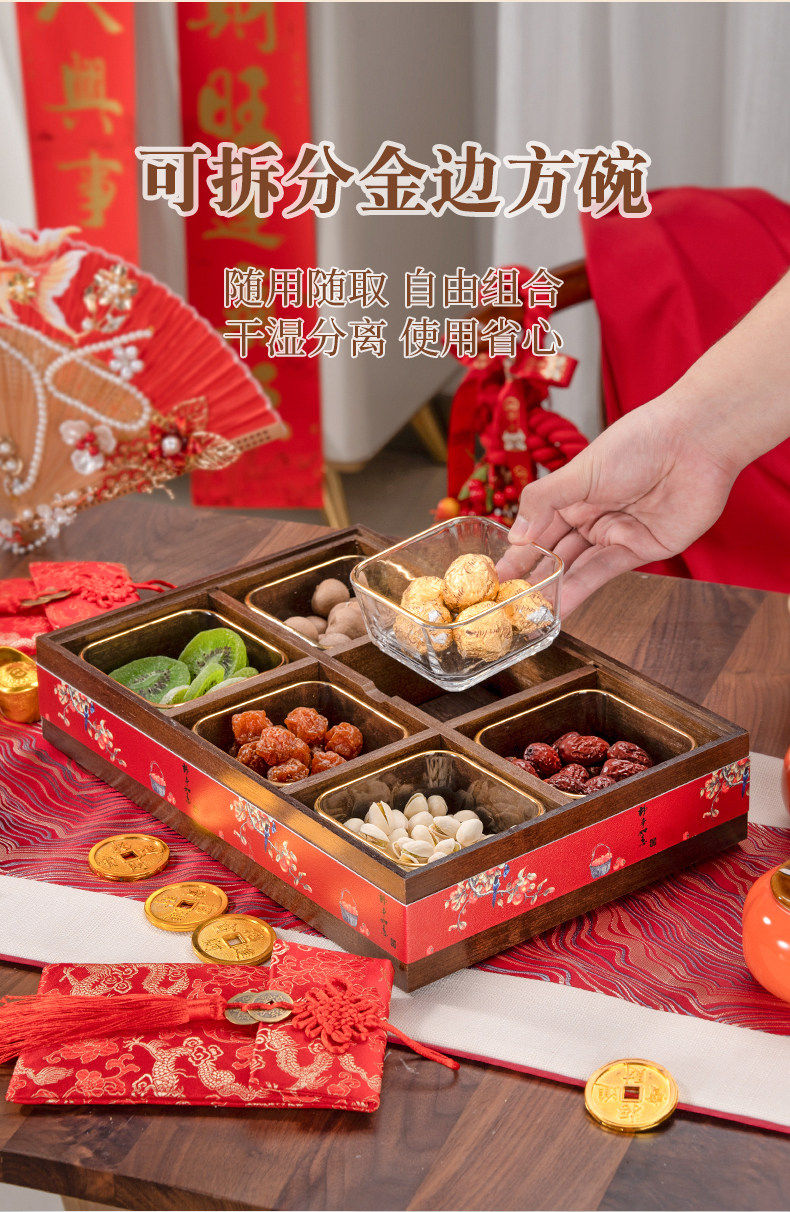 German Red Compartmentalized Fruit Box for Living Room, Home Use, Light Luxury High-End Dried Fruit Box, Chinese New Year, Housewarming, Wedding, Storage Snack Tray