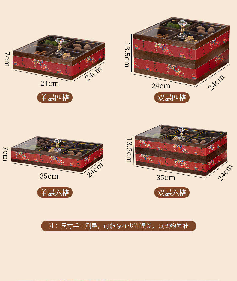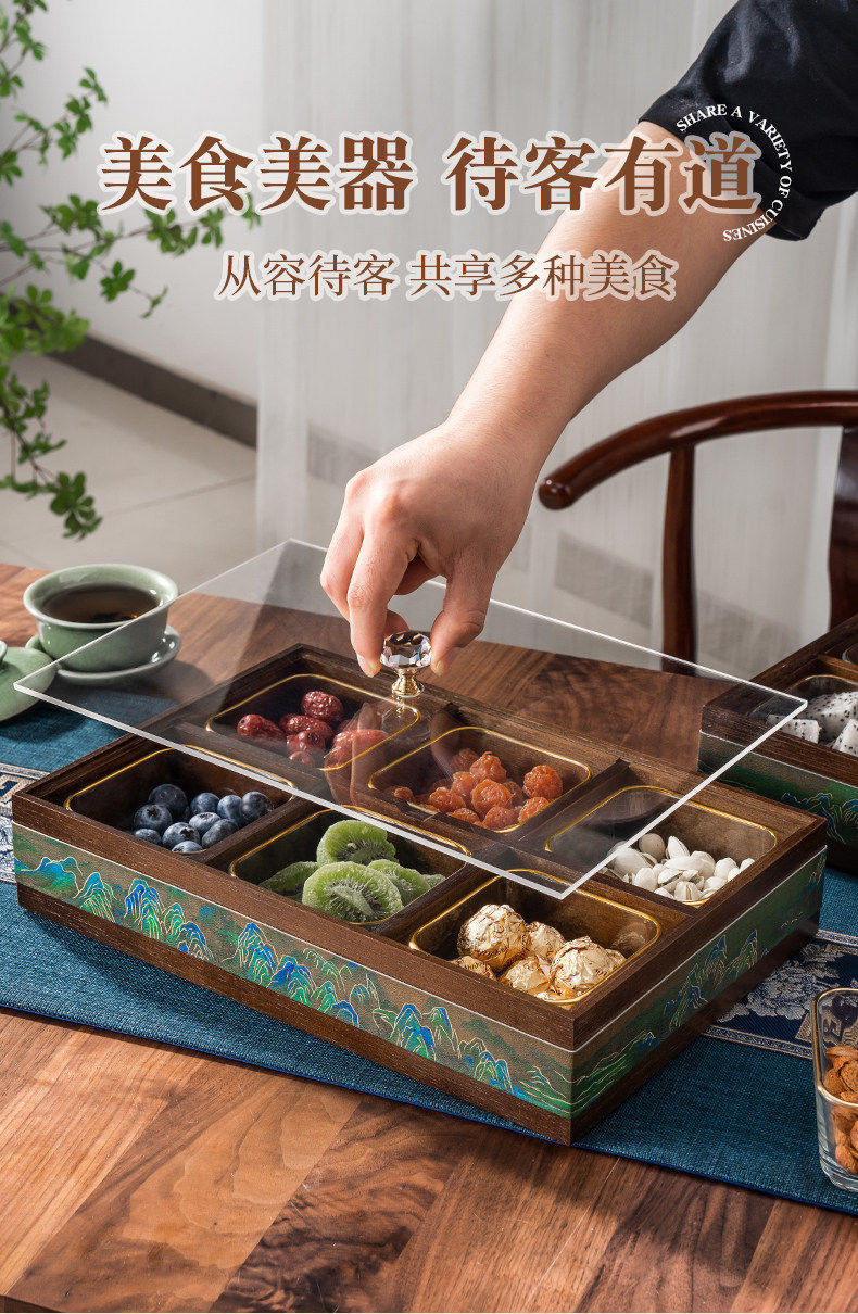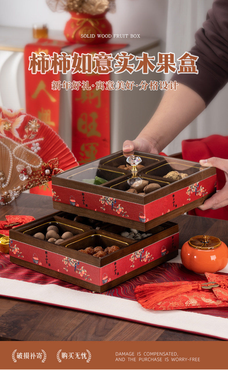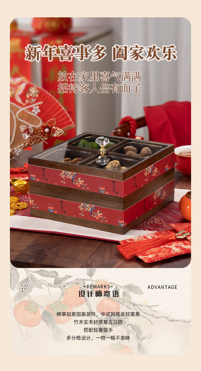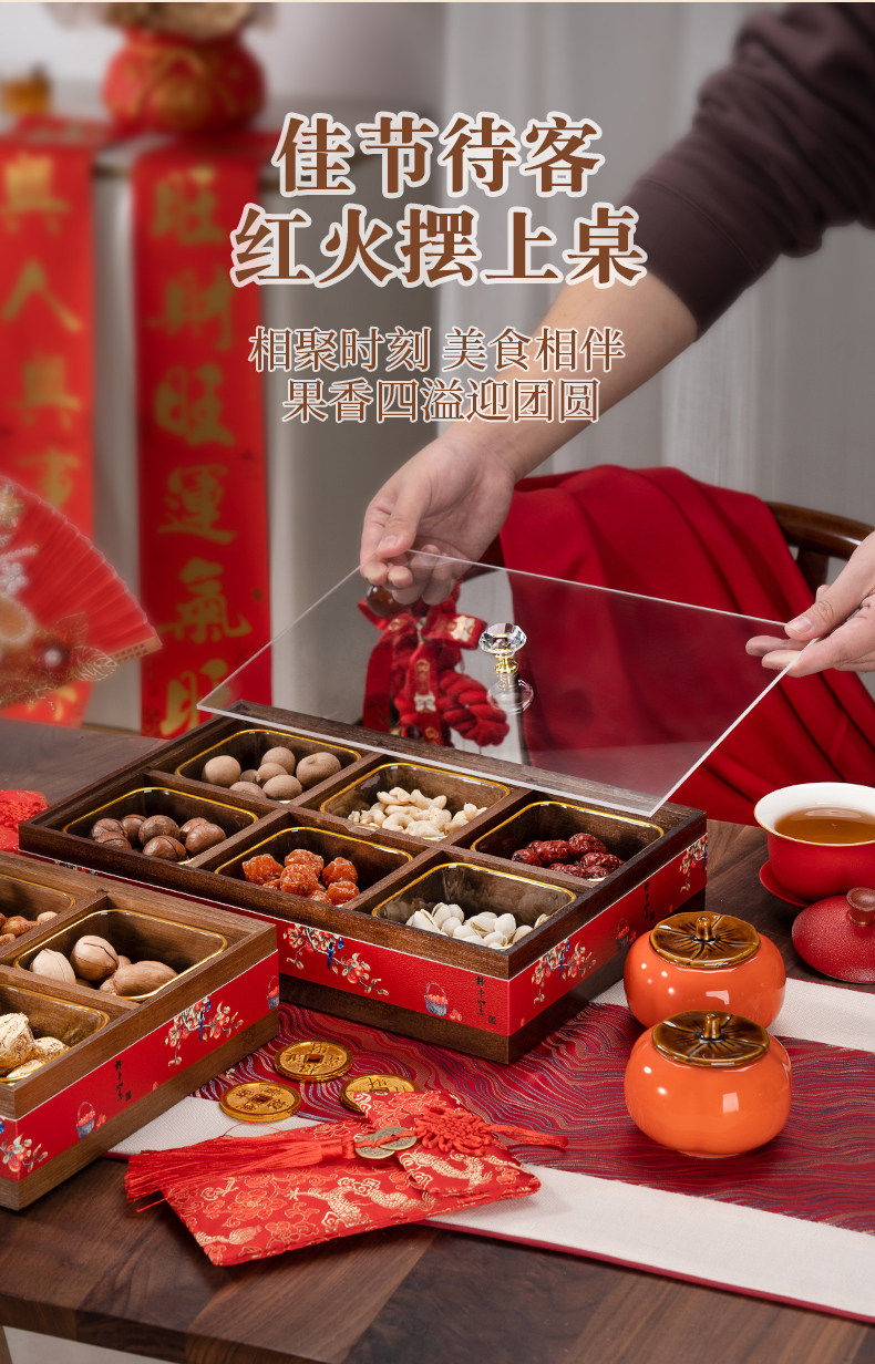 German Red Compartmentalized Fruit Box for Living Room, Home Use, Light Luxury High-End Dried Fruit Box, Chinese New Year, Housewarming, Wedding, Storage Snack Tray