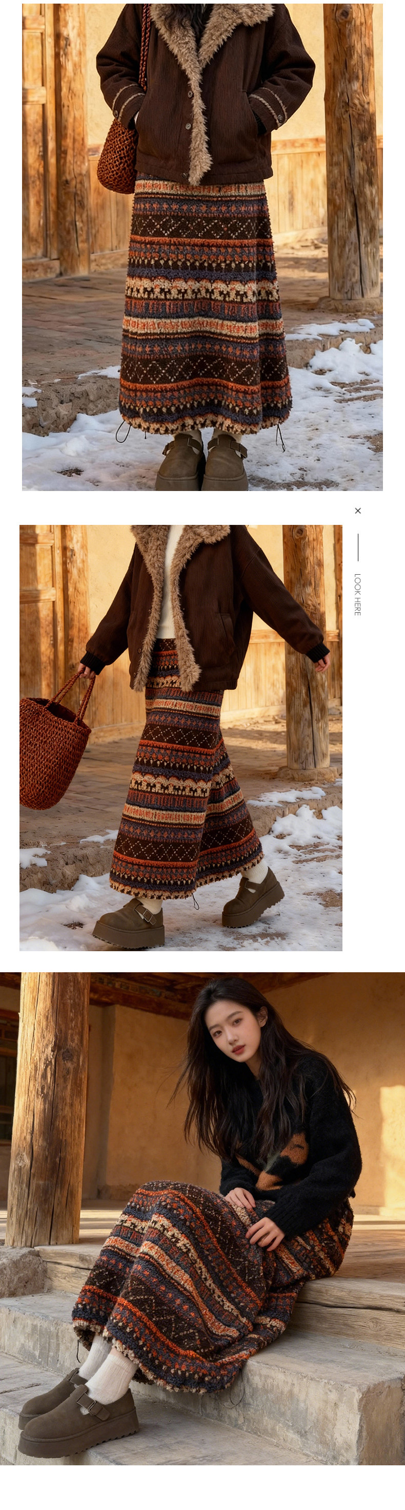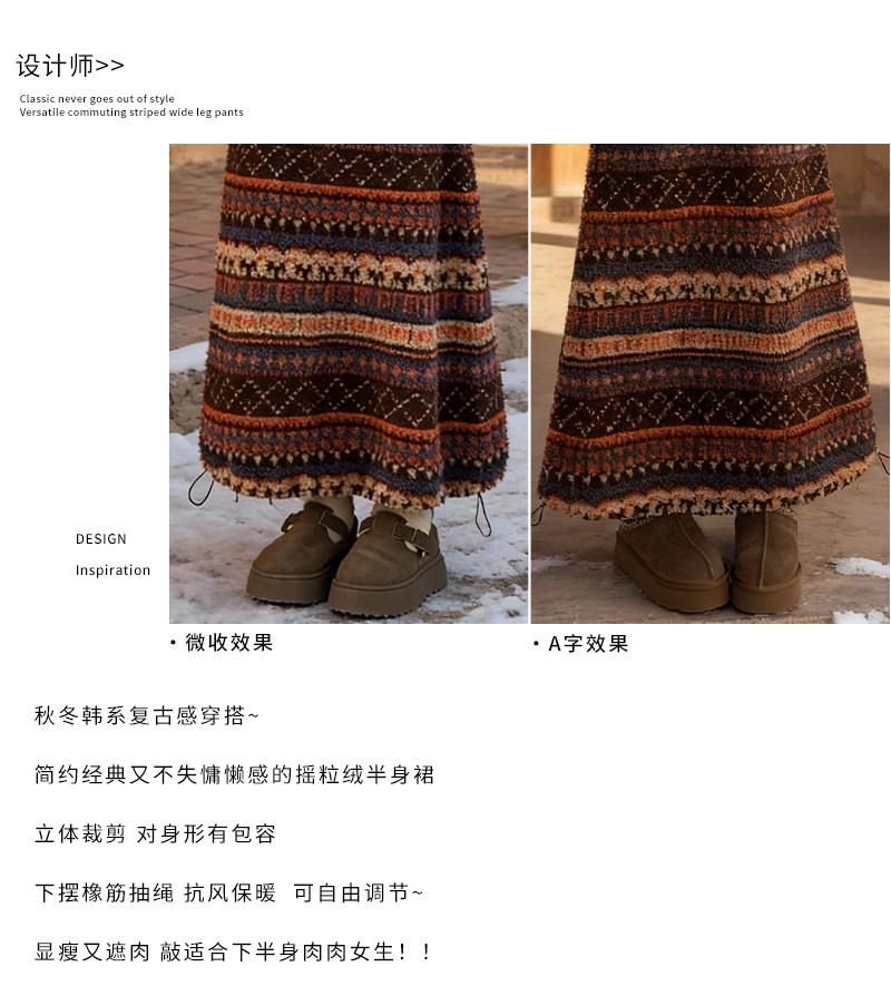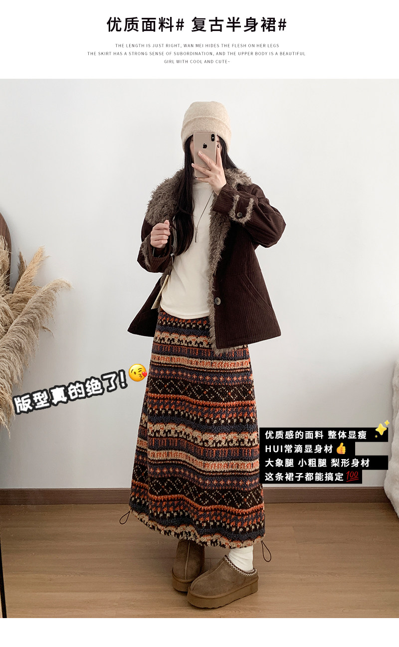 Коричневая юбка Fair Isle для женщин, осень и зима 2025, новая тонкая плюшевая юбка А-силуэта с высокой талией для маленьких людей, юбка, закрывающая ягодицы