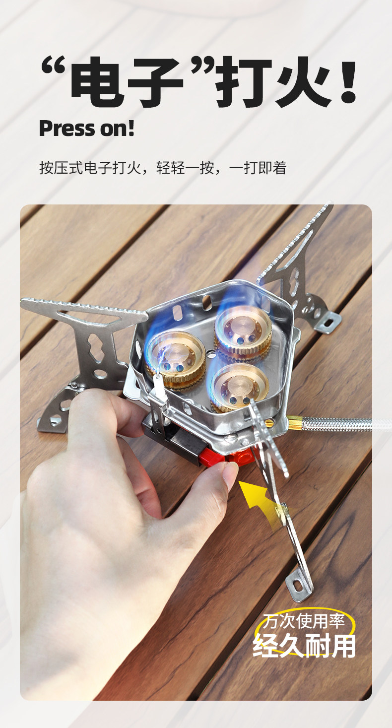 Cassette Stove Outdoor Cooking Equipment Portable Camping Cookware Split-Type High-Power Stove Head for Outdoor Tea Brewing Foldable Three-Burner Stove