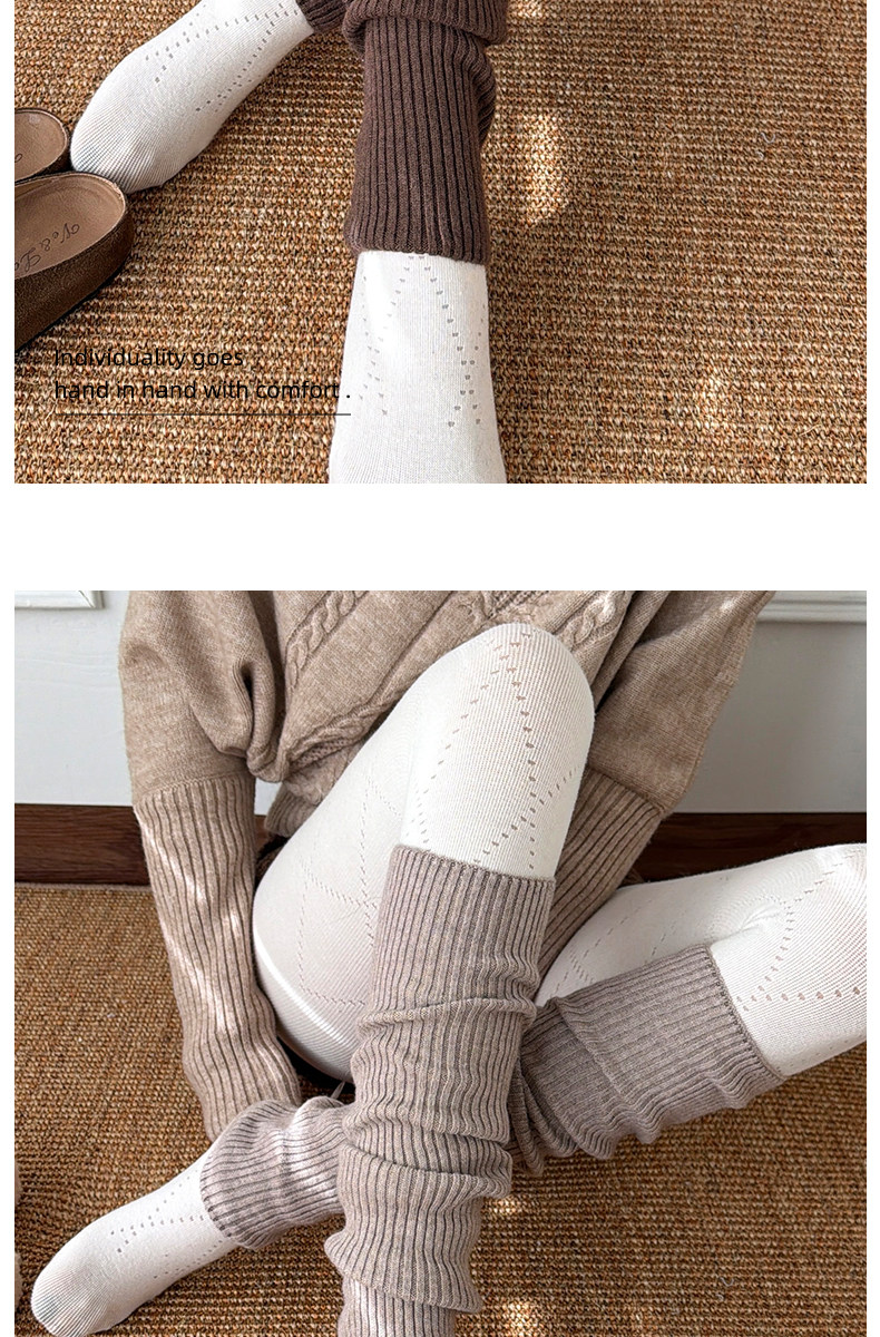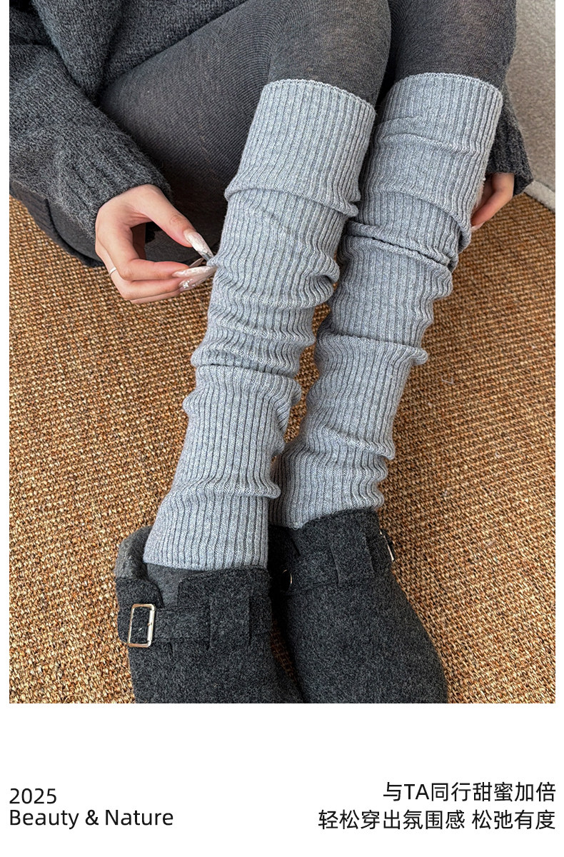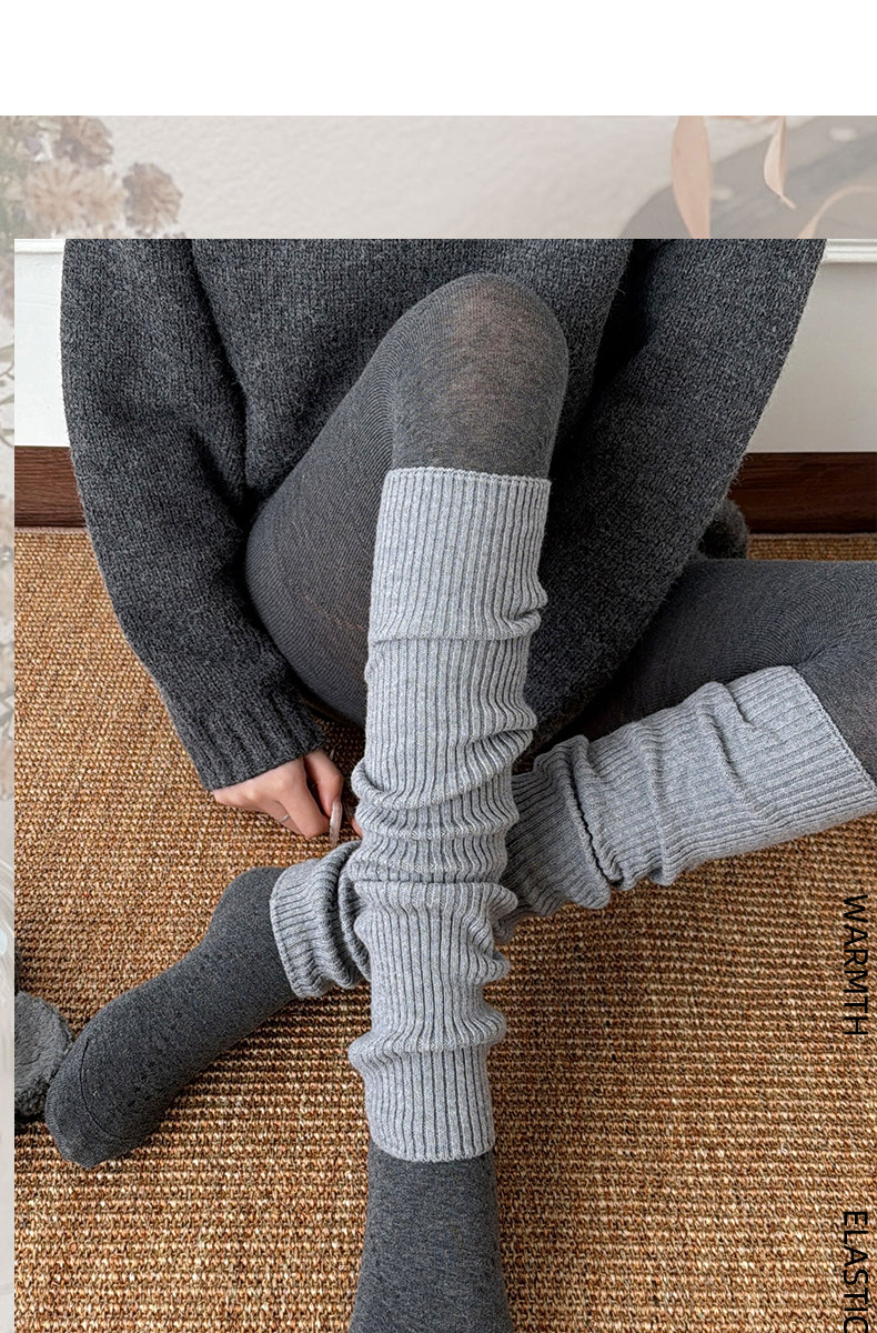 Lulu-Style Gray and Pink Cashmere Leg Warmers Paired with Shark Pants, Women's Autumn and Winter Korean Style Slimming Stacked Calf Warmers