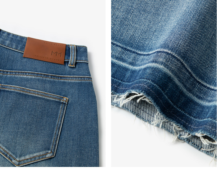 MM Mai Meng/Four Seasons B Vorbereitung Leichte Retro-Dekonstruktion Split Raw Edge Straight Jeans Einkaufszentrum Gleicher Stil 26 Frühling