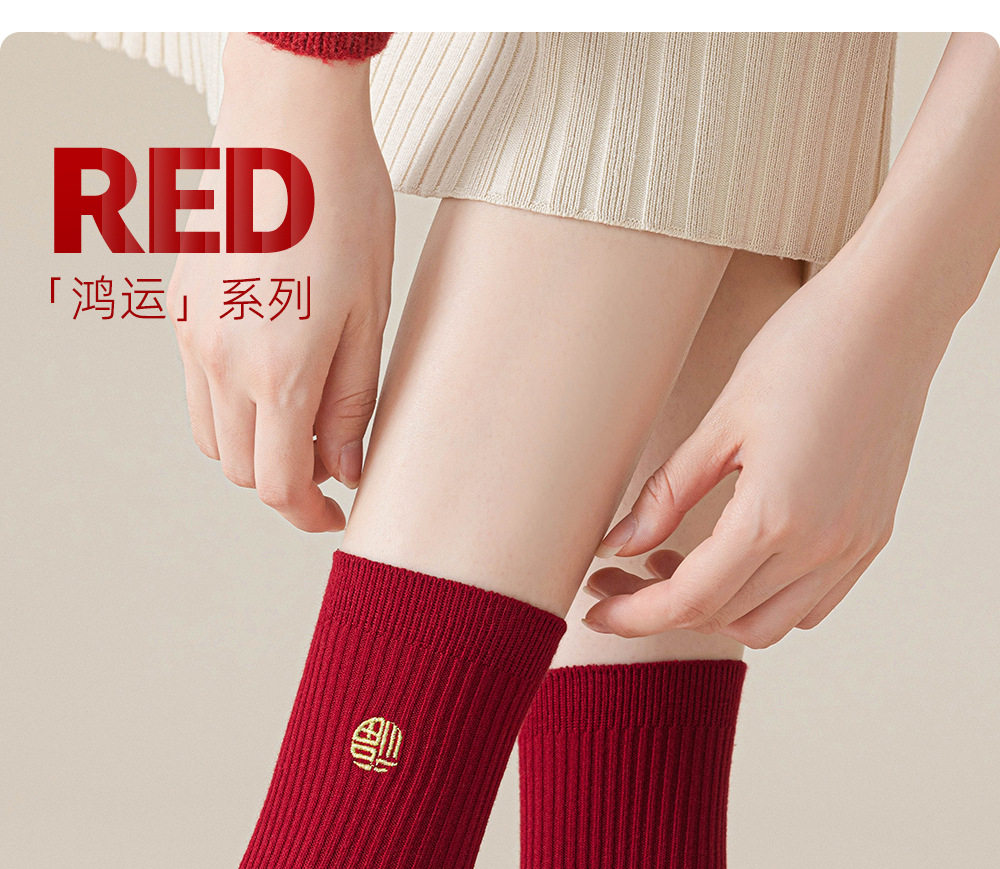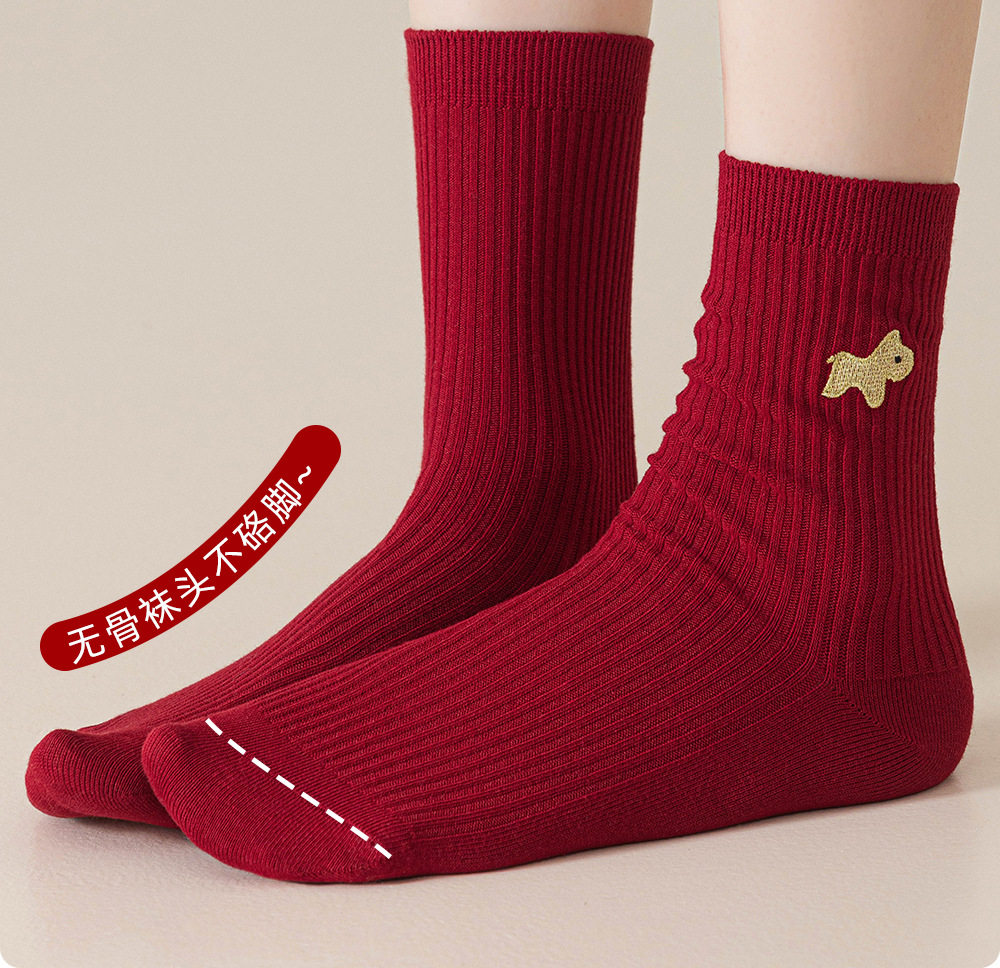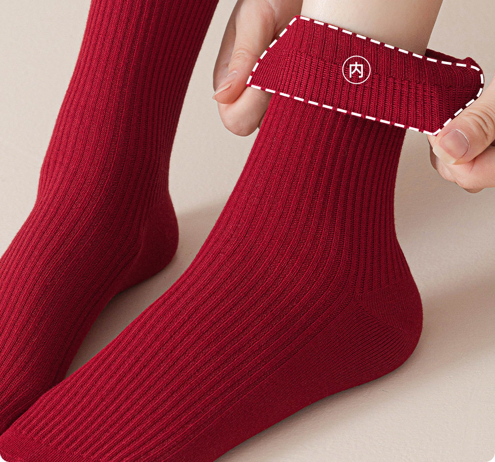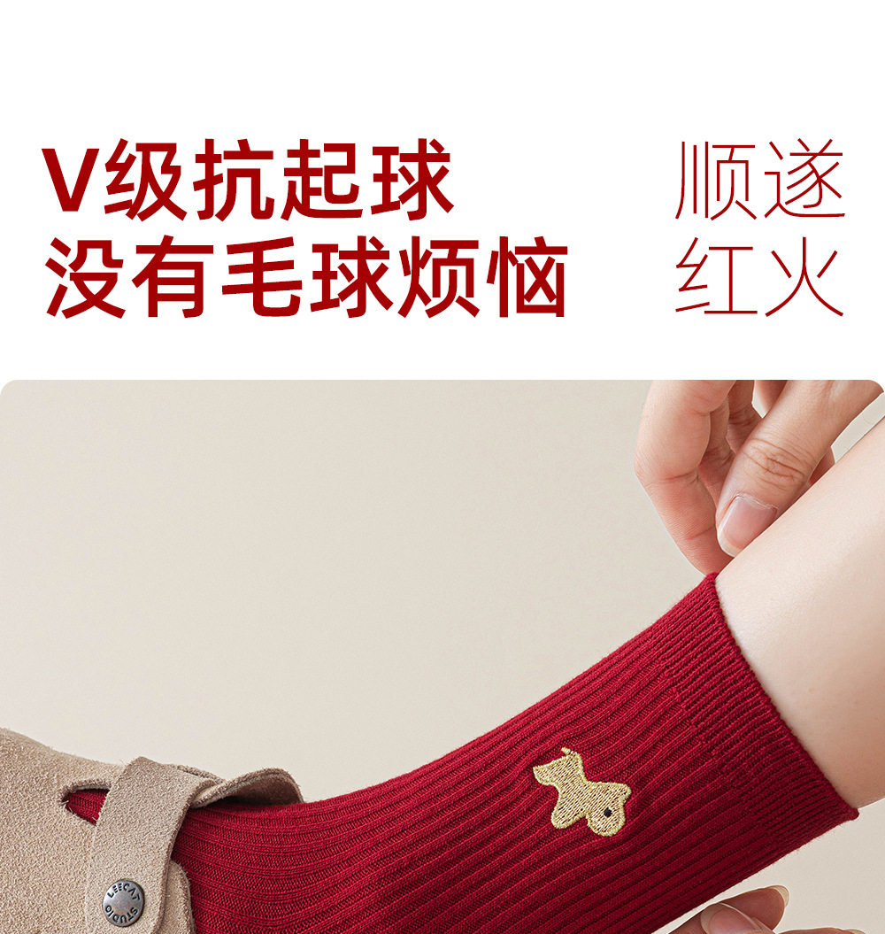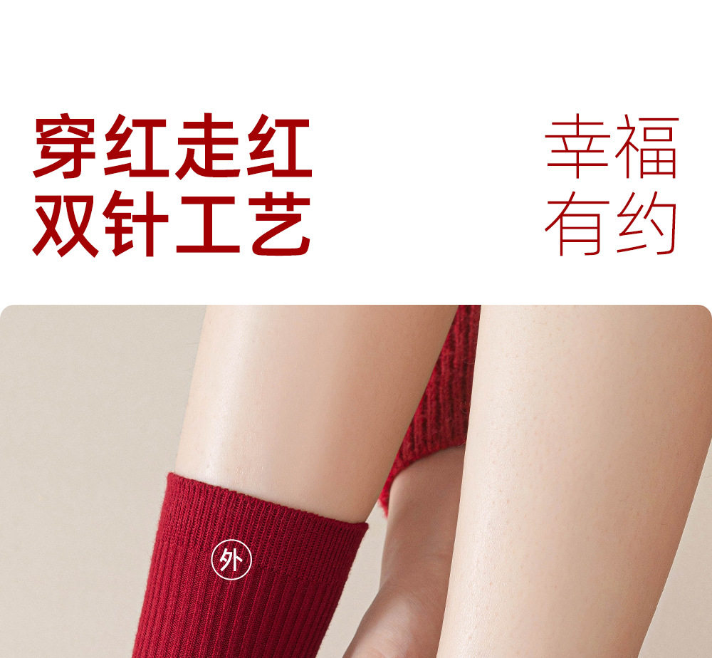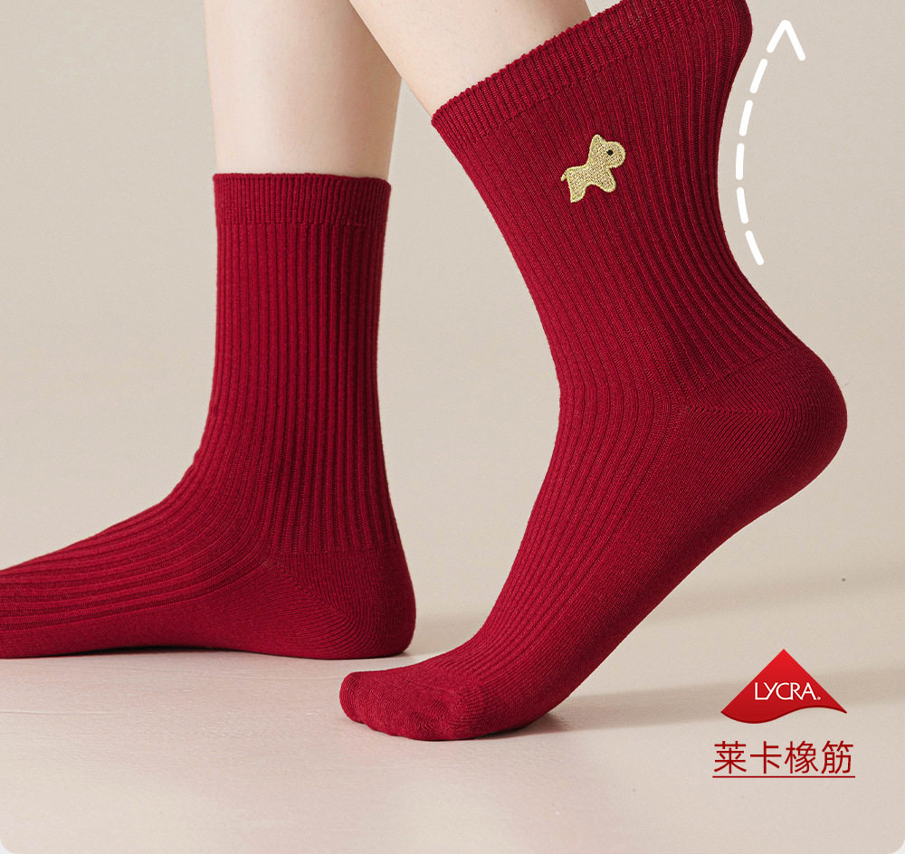 德国红袜子男女马年本命年纯棉中筒袜双针堆袜生日新年礼物送女友