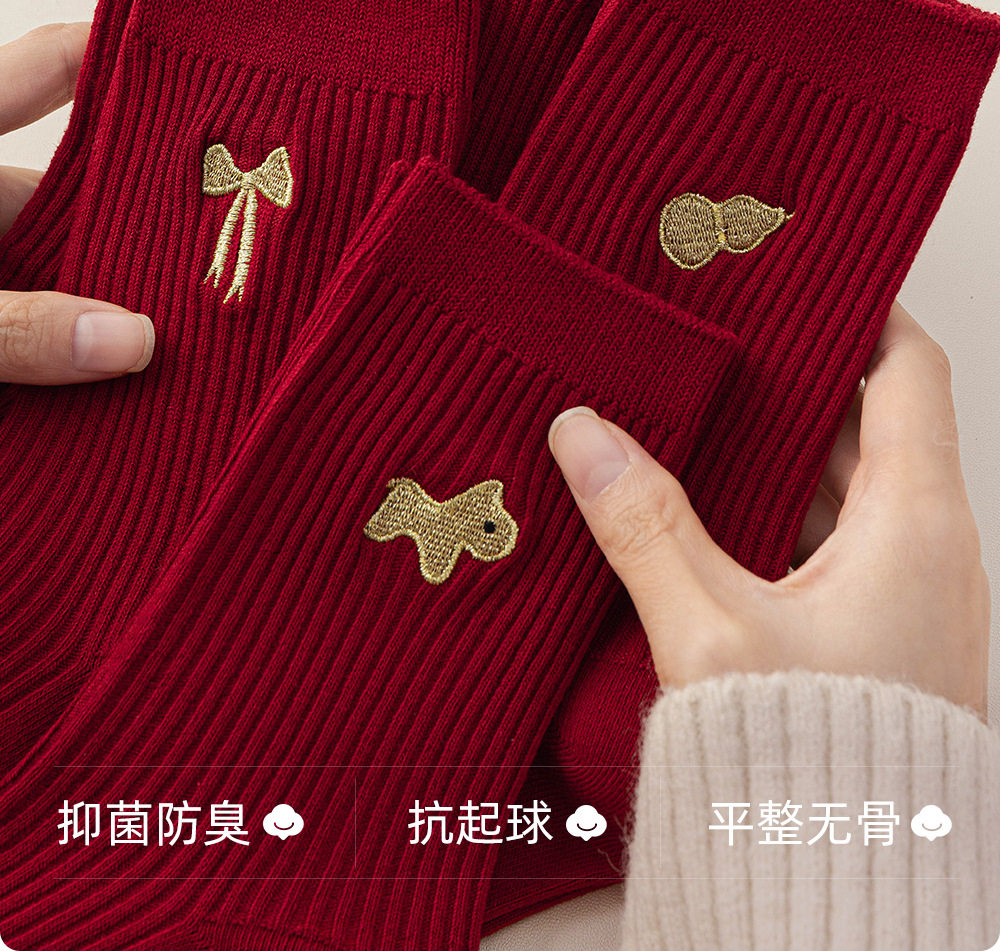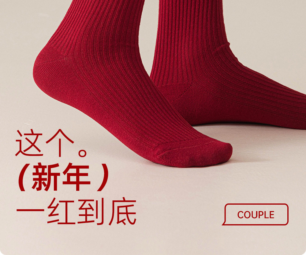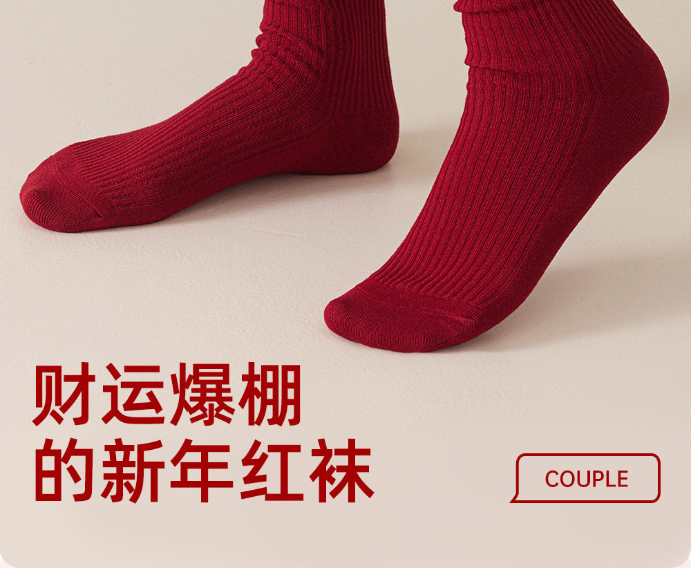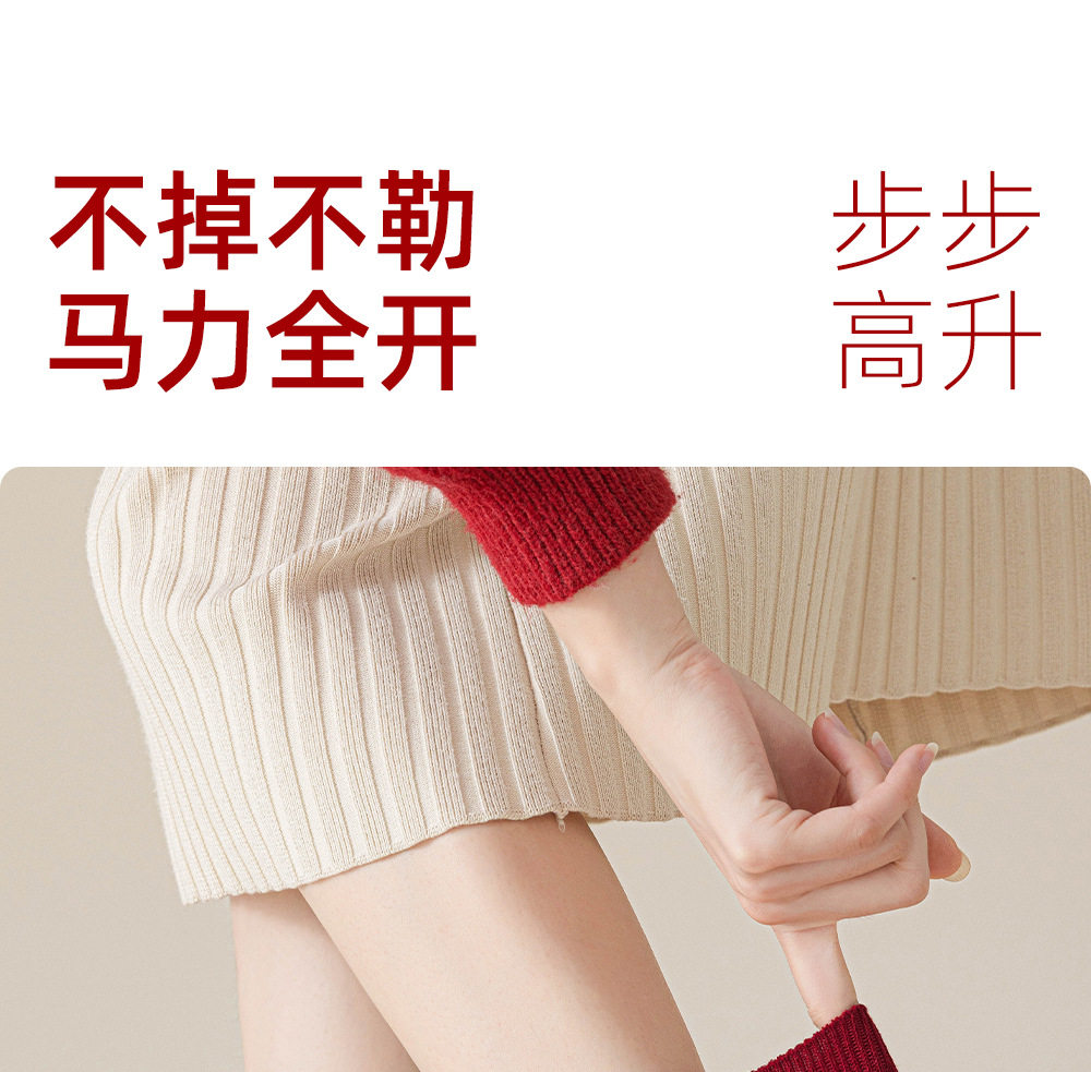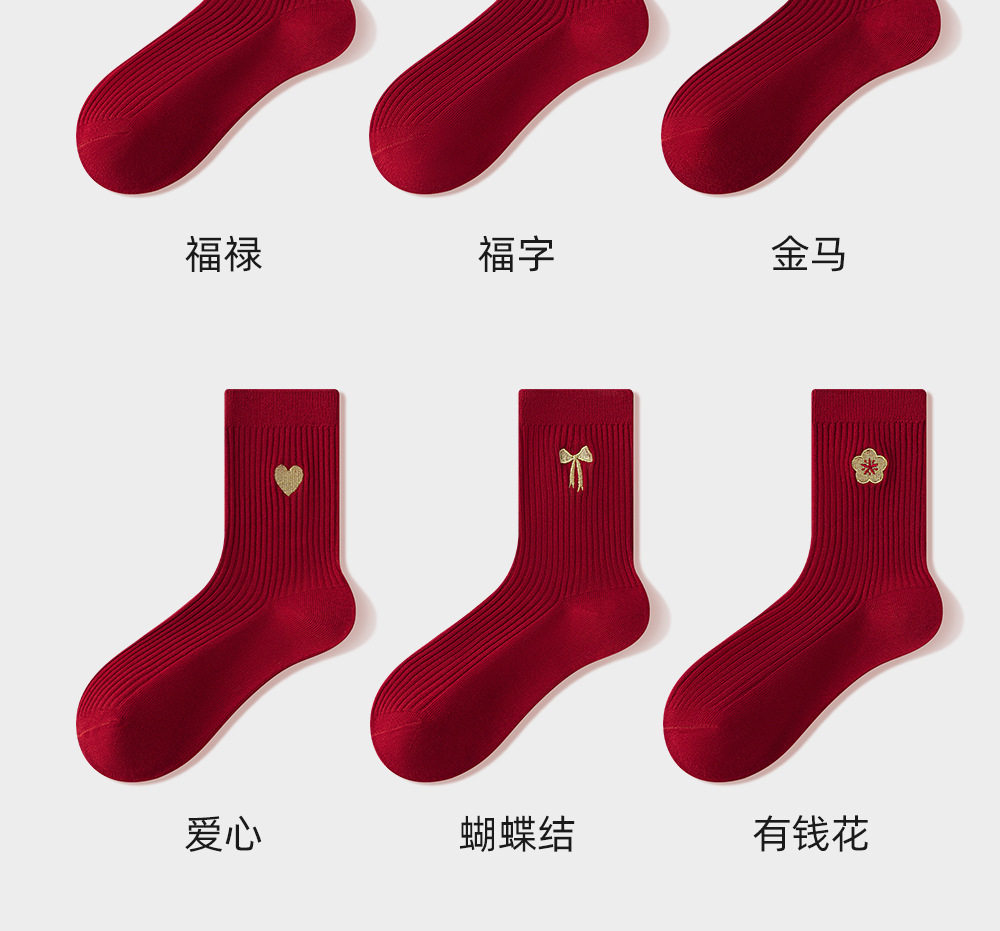 德国红袜子男女马年本命年纯棉中筒袜双针堆袜生日新年礼物送女友