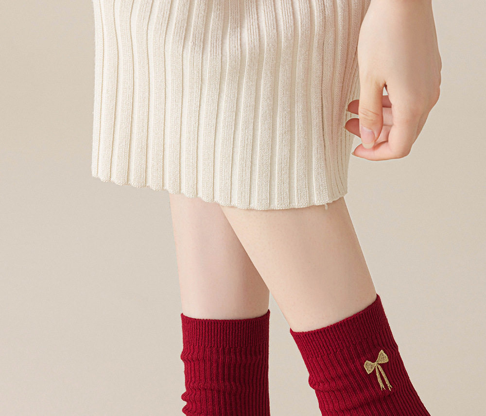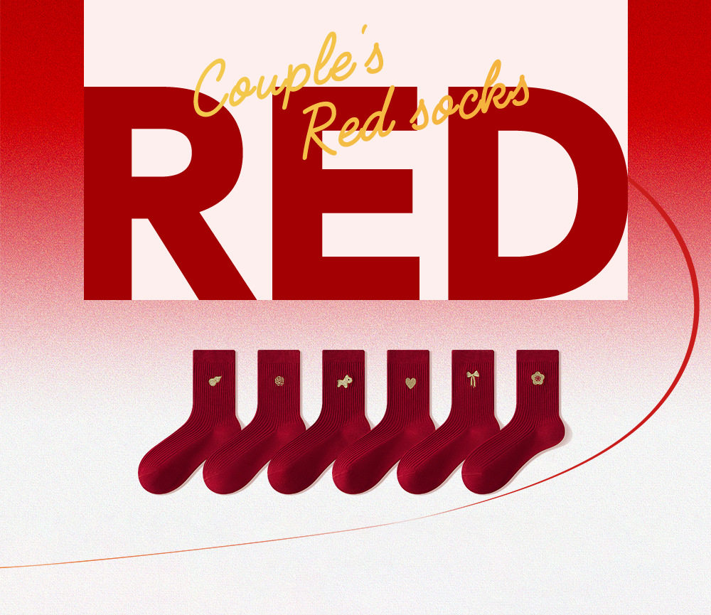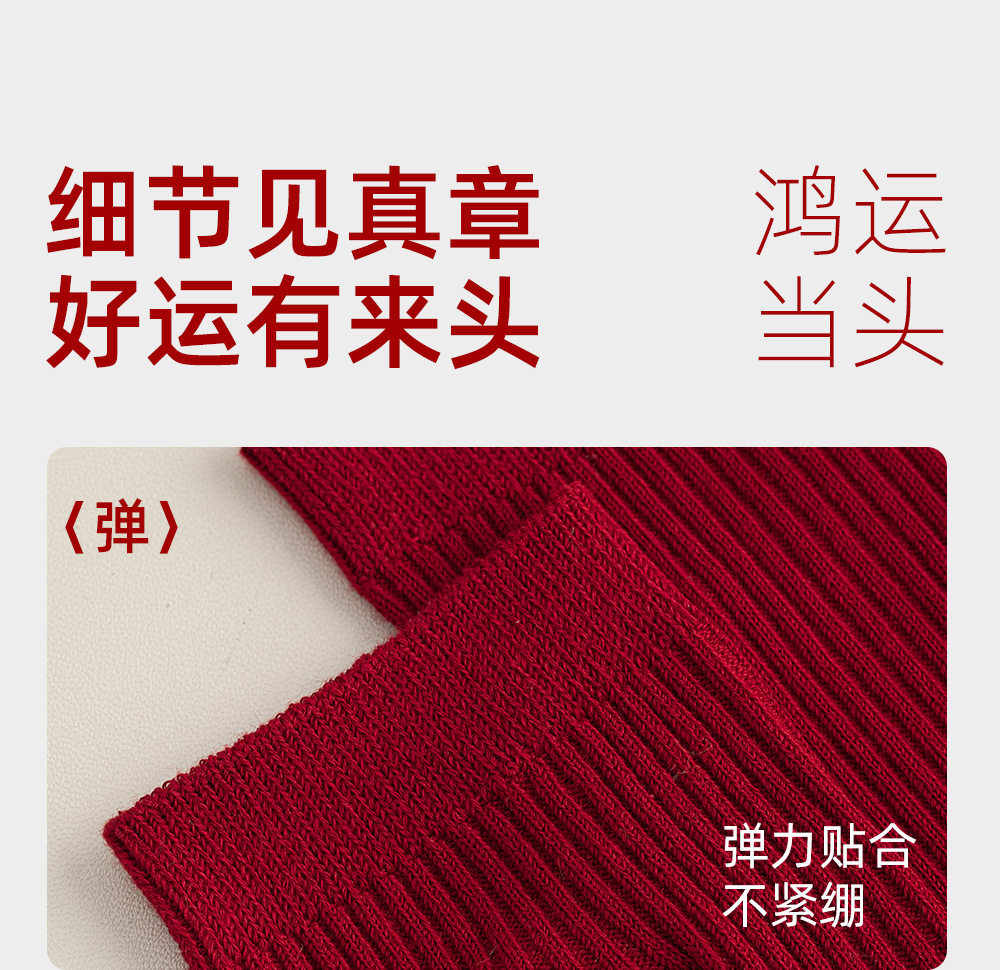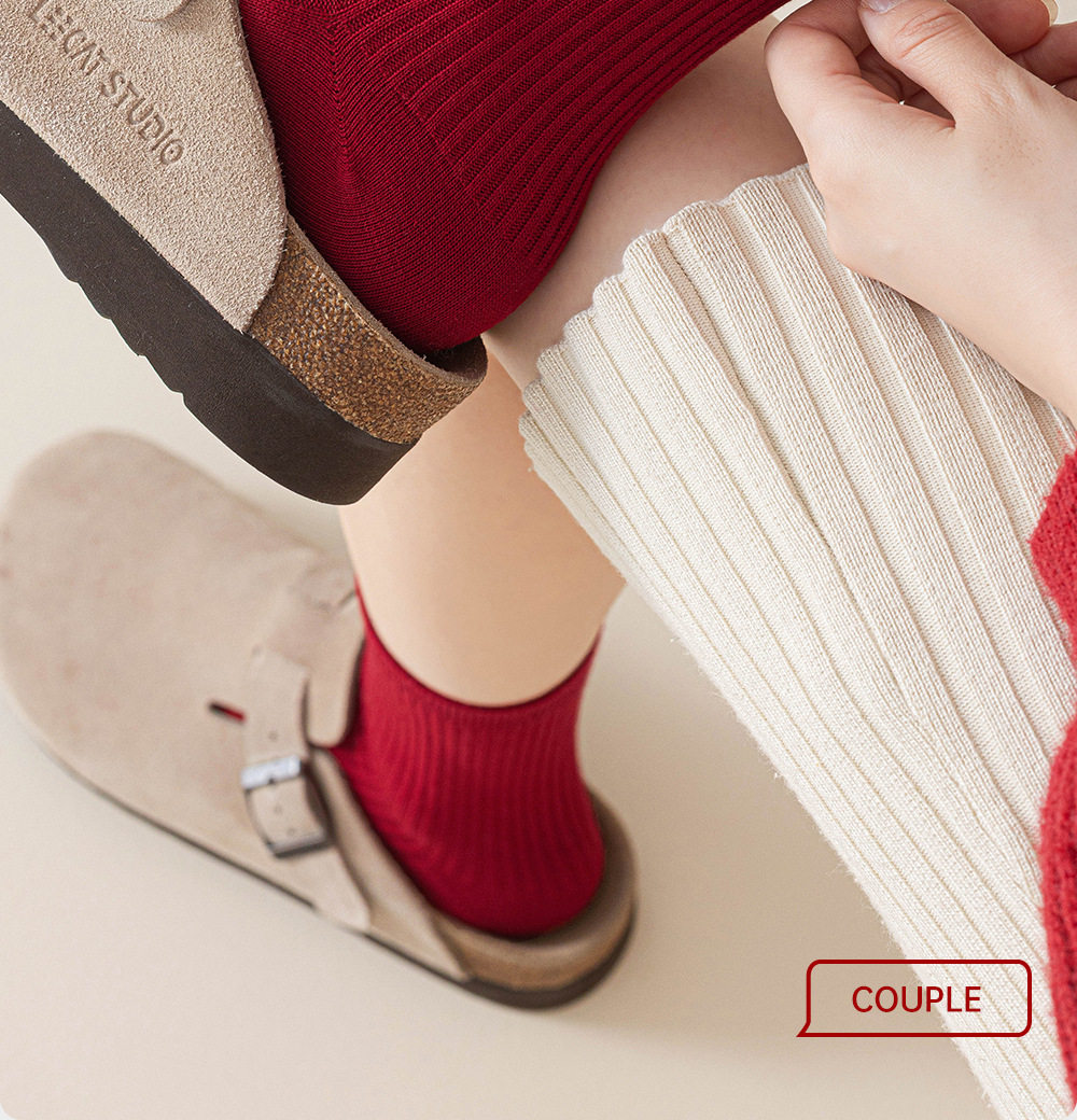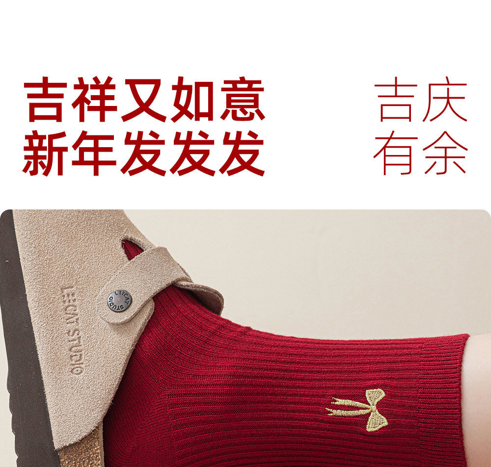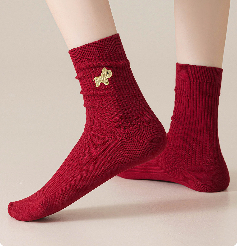德国红袜子男女马年本命年纯棉中筒袜双针堆袜生日新年礼物送女友