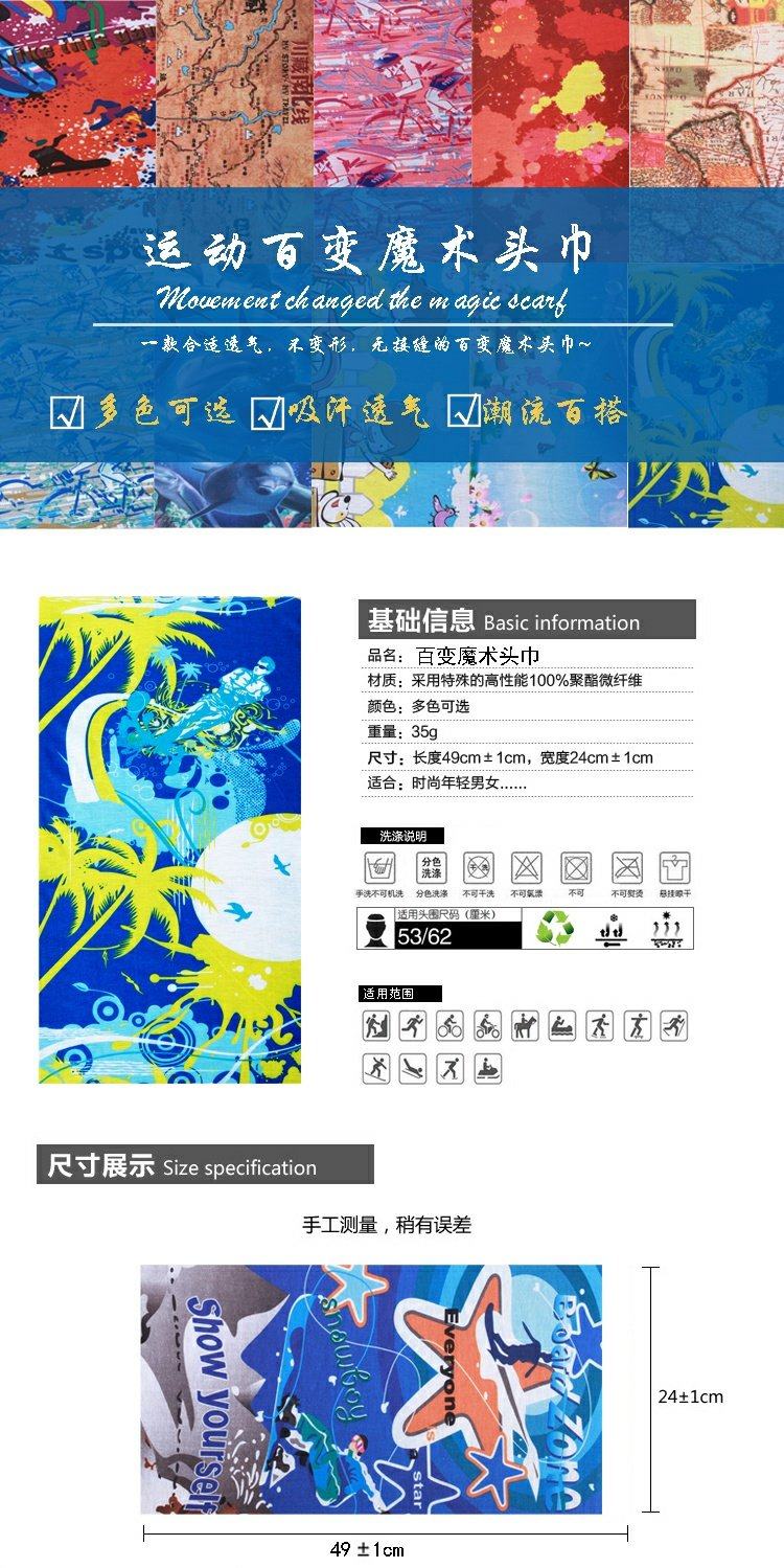 新款百变魔术头巾男女户外防晒防风面罩速干多功能头巾围脖套包邮