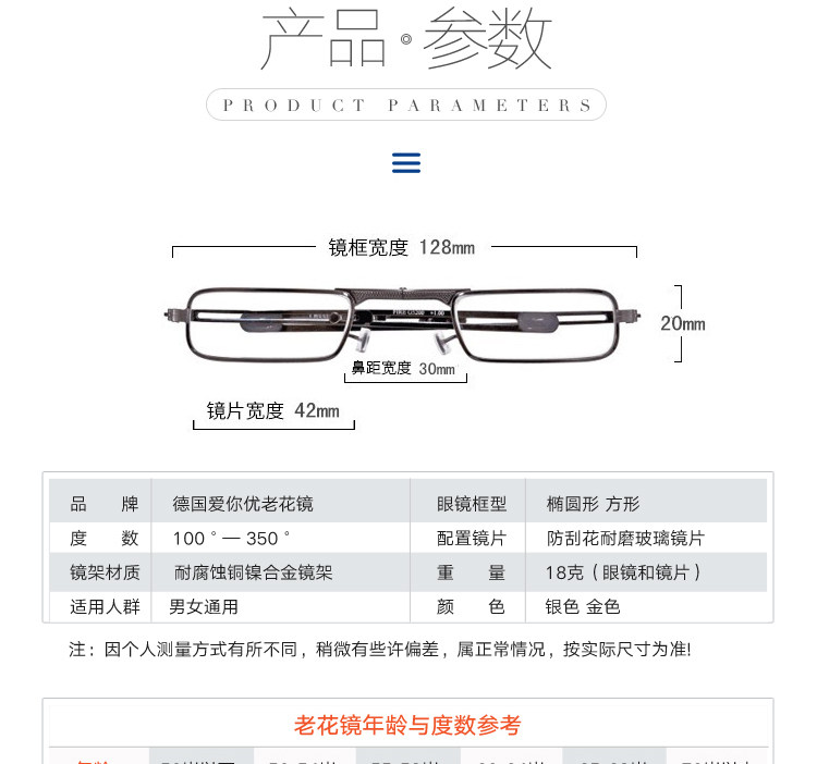 德国超薄商务花镜爱你优进口时尚高清舒适便携高档便携老花眼镜