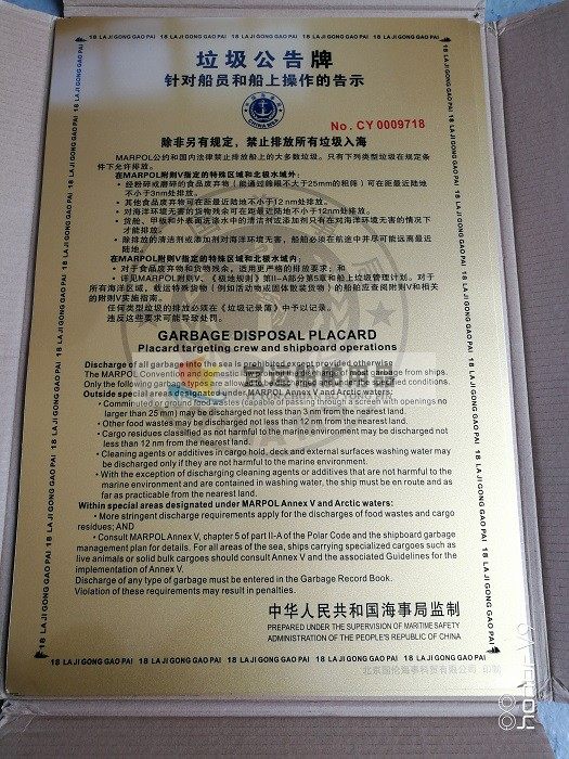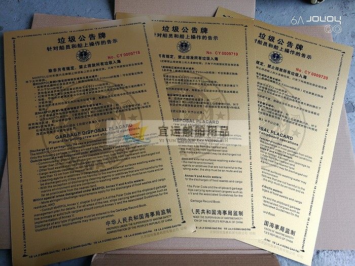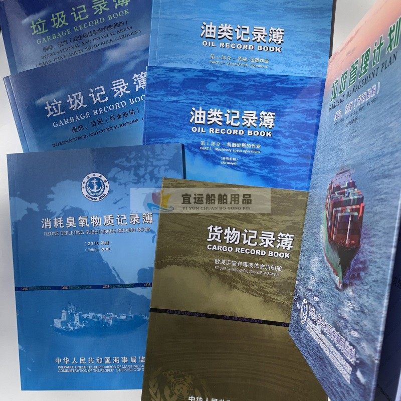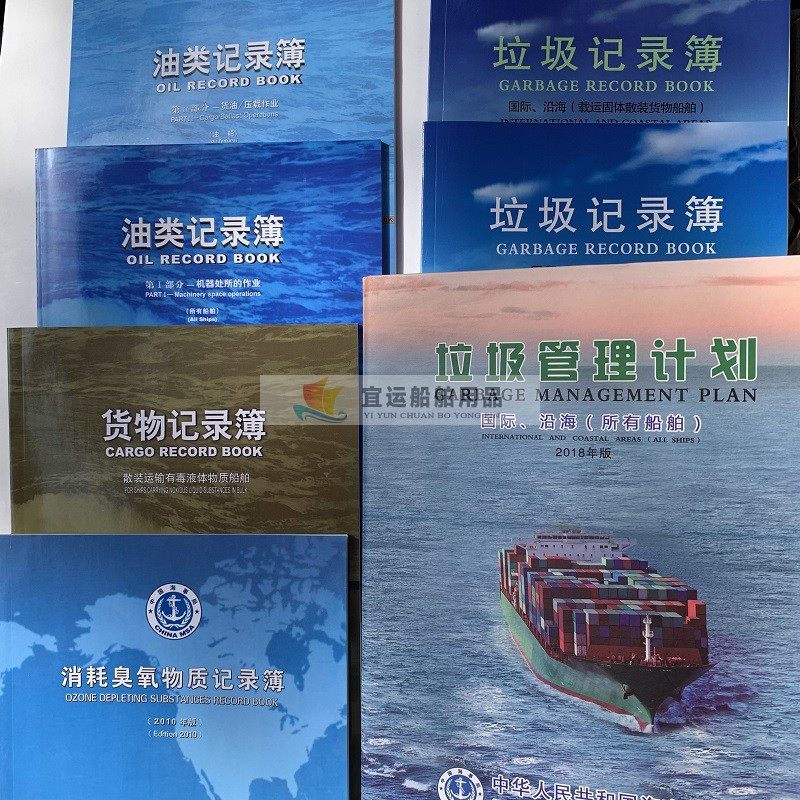 颜色分类 油类记录本所有船舶一部,油类记录本油船专用二部,垃圾记录本所有船舶一部,垃圾记录本散货专用二部,消耗臭氧记录本,货物记录本,垃圾管理计划,垃圾公告牌