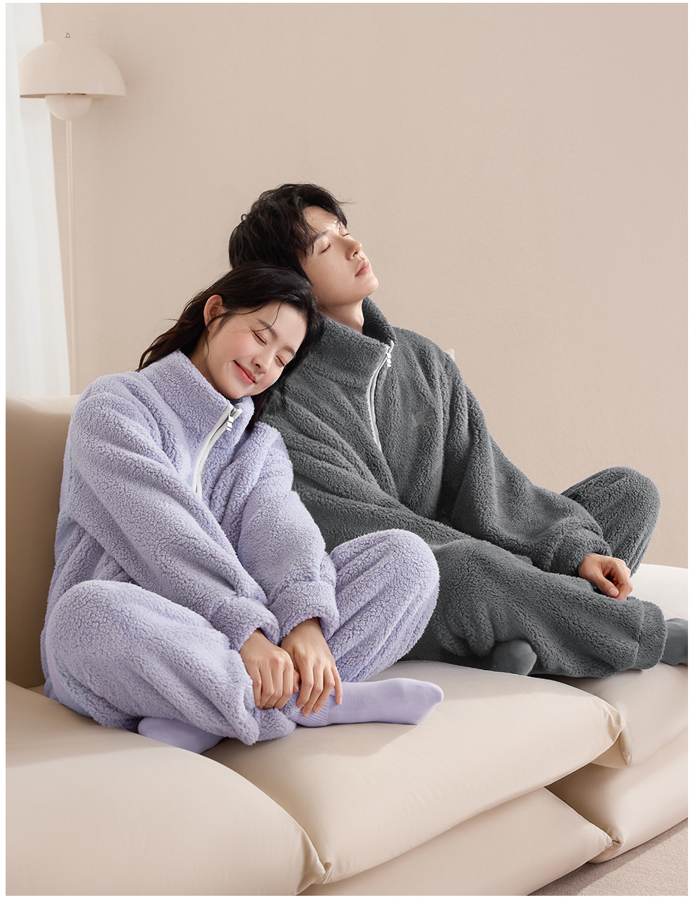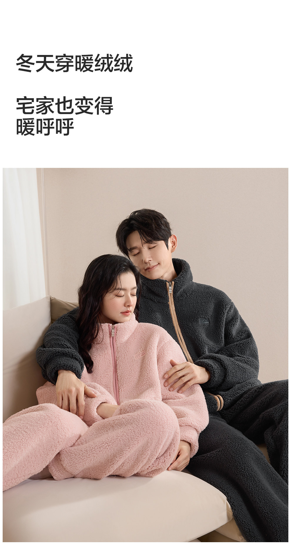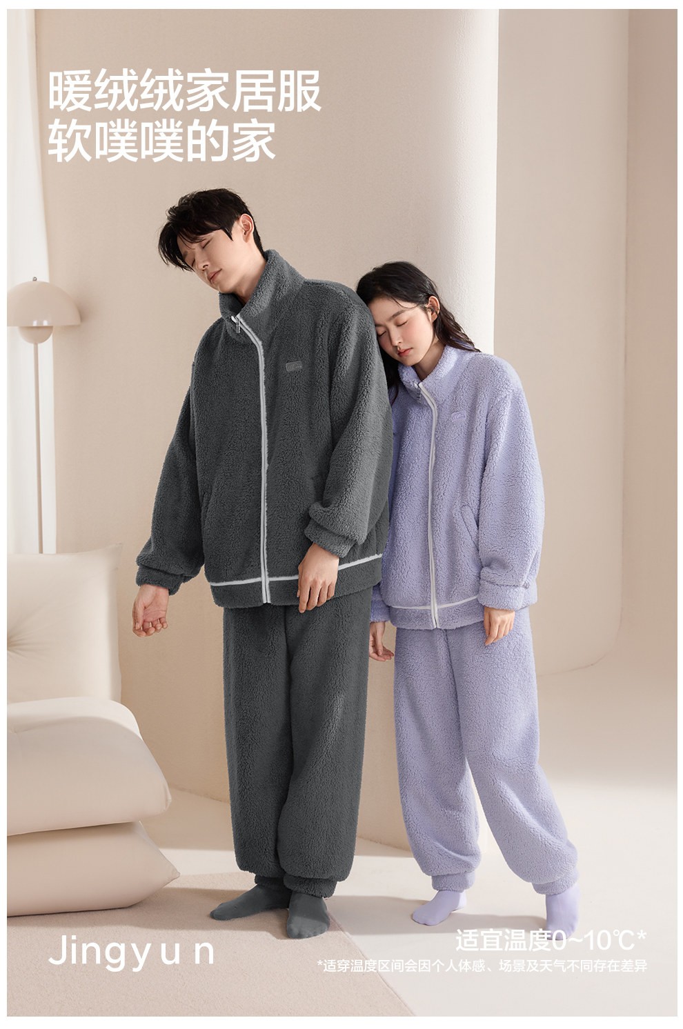 Jingyun [Super Soft] Lamb Wool Couple Pajamas Women's New Autumn and Winter Casual Homewear Set Can Be Worn Outside