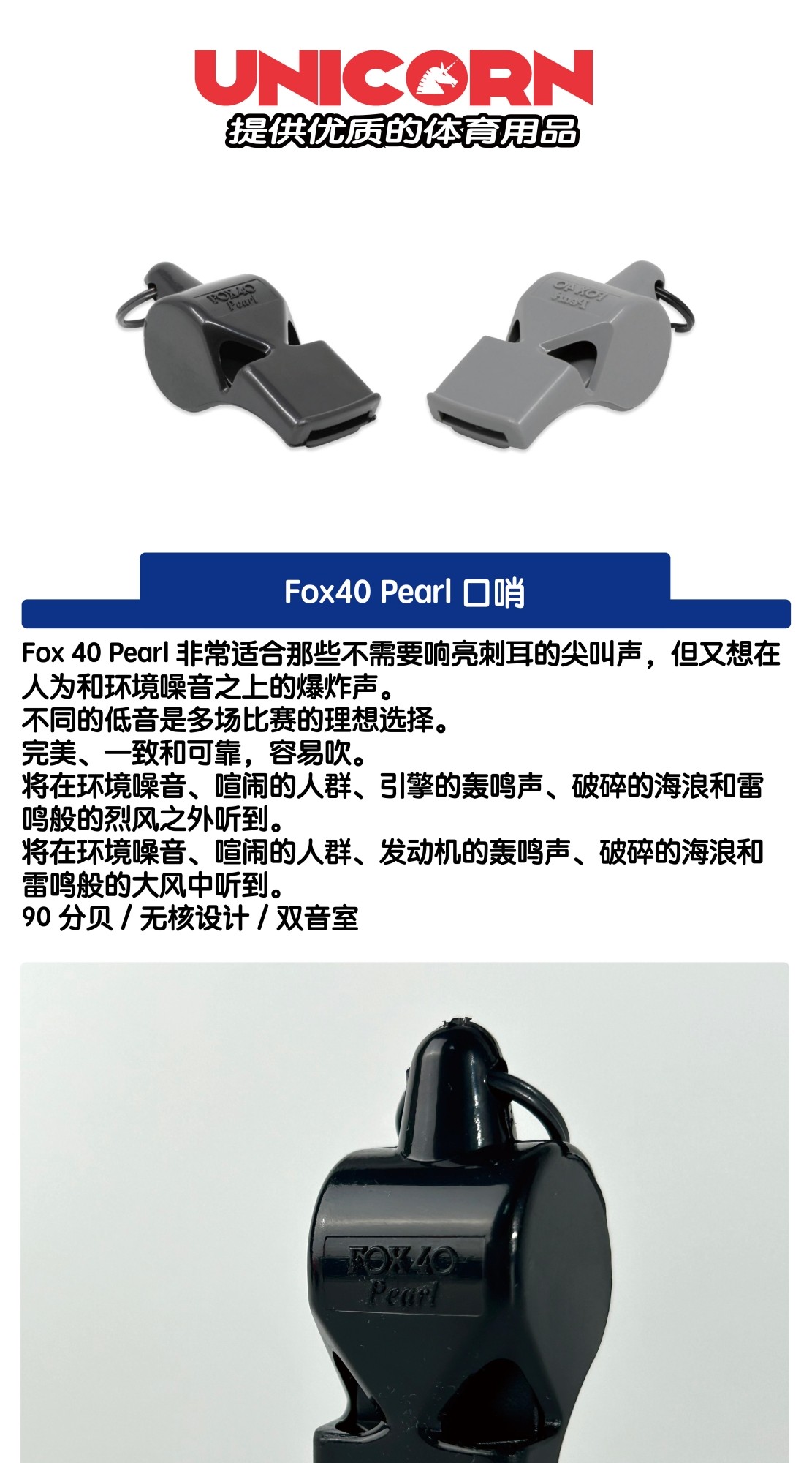 Fox40 Coreless Whistle Pearl Genuine Canadian Imported Professional Non-Piercing Coreless Whistle 90 Decibels