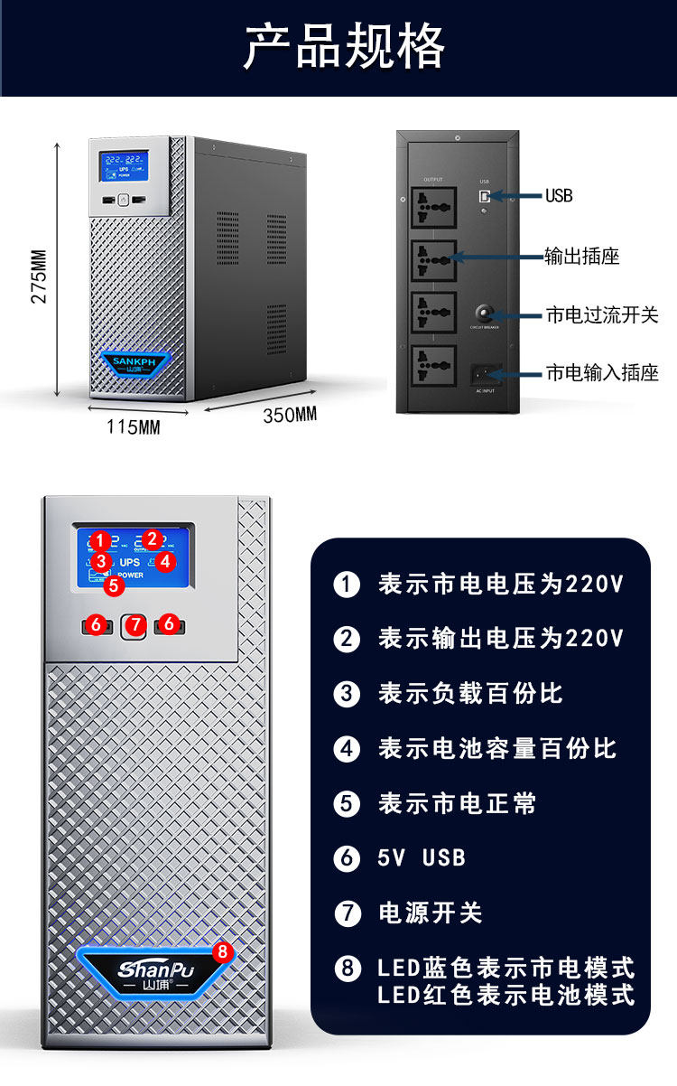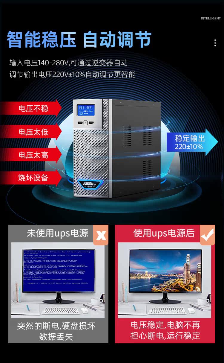 ИБП Shanpu (источник бесперебойного питания) для дома, 220В, стабилизация напряжения для компьютера, аварийный резервный источник питания для предотвращения сбоев электроснабжения SP2000