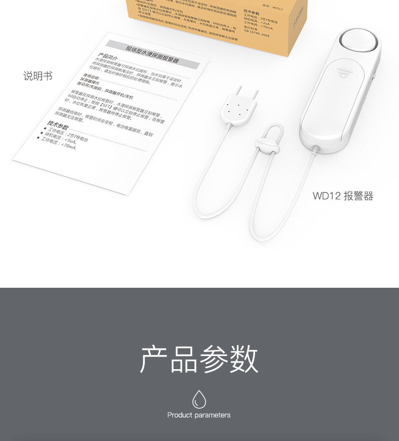 Farbklassifizierung Unabhängiger Wasserleckalarm, Leitungslänge 0,7 Meter
