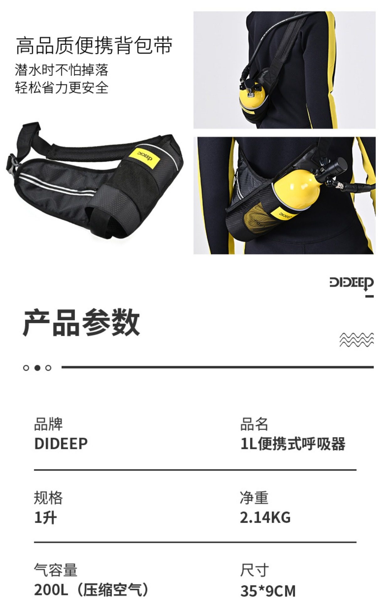 Underwater Breathing Apparatus 1L Scuba Diving Equipment Air Tank Fish Gill Portable Oxygen Tank Professional Swimming Artifact Complete Set