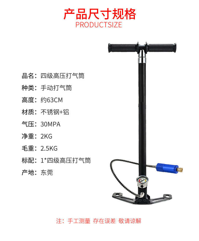 Bomba de compresión manual de aire, cilindro de neumático de coche, 30Mpa, alta presión, cuatro etapas, equipo respirador genuino