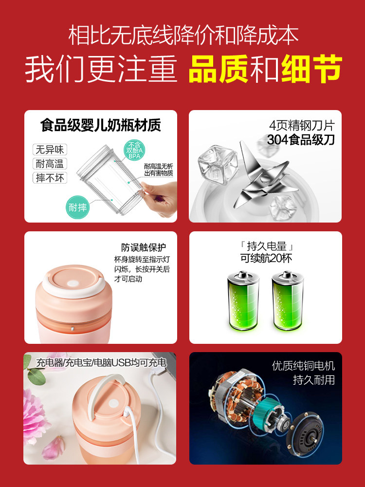 Michael Cool Portable Juicer Small Household Mini Juicer Cup Wireless Juice Machine Fruit
