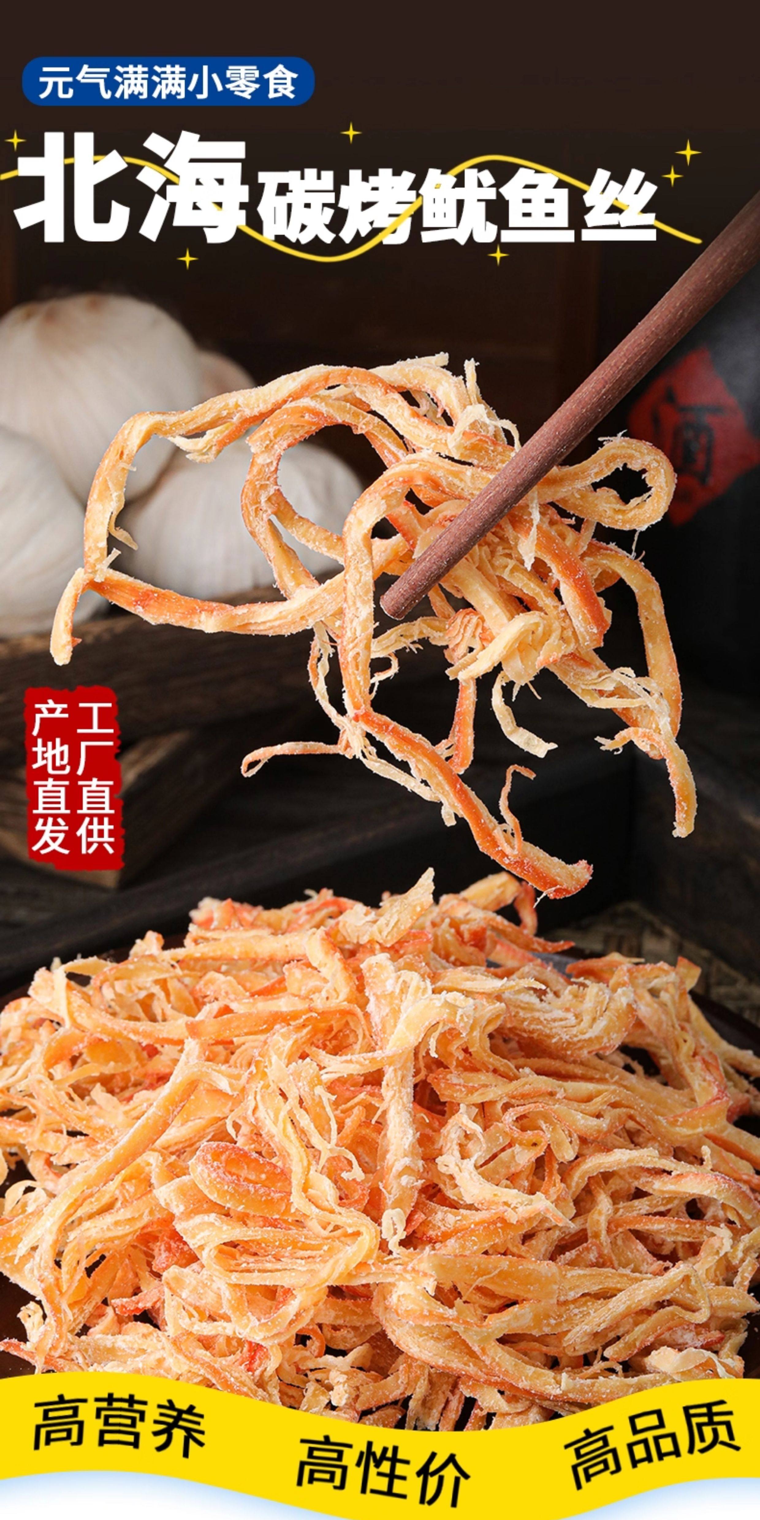 Guangxi Beihai Specialty Seafood Dried Squid Strips Snacks, Charcoal-Grilled, Hand-Torn, Not a Qingdao Yantai Snack from Shandong