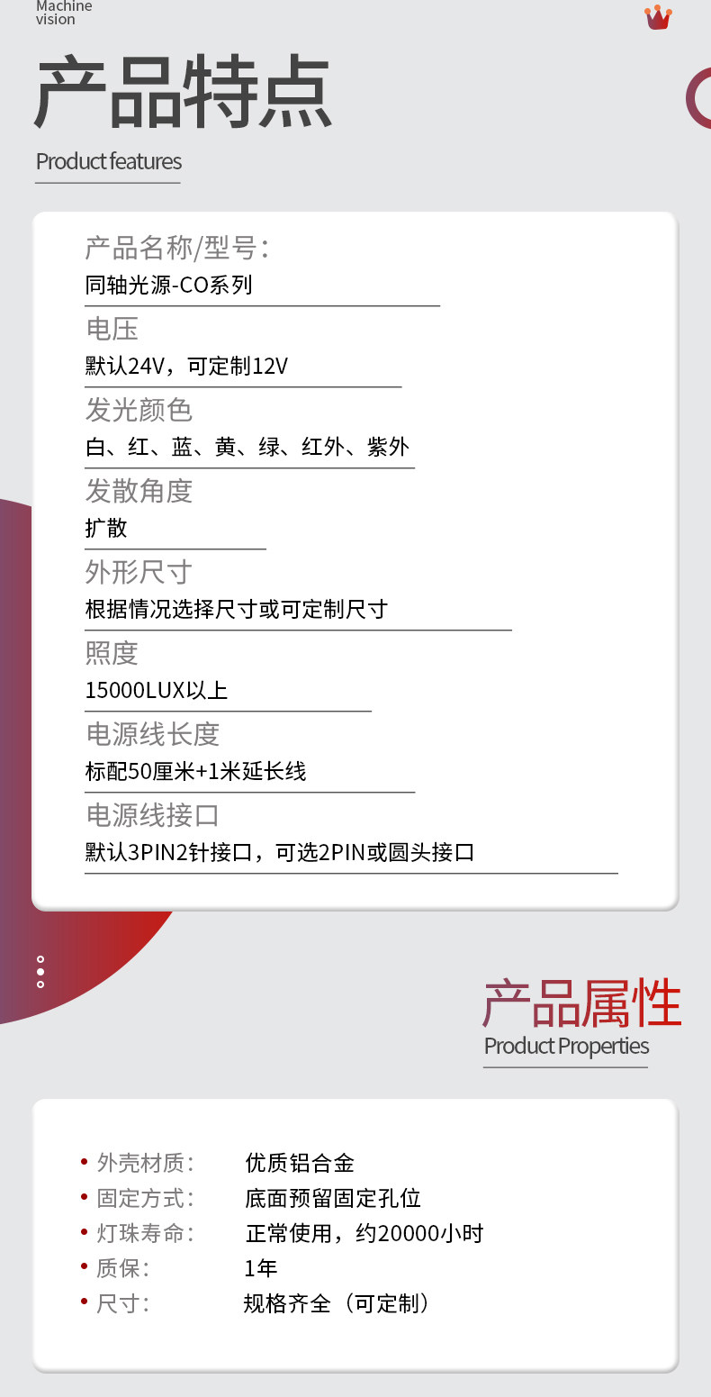 Industrial Camera Automated Appearance Defect Detection Mark Positioning High Brightness Uniform Machine Vision Coaxial Light Source