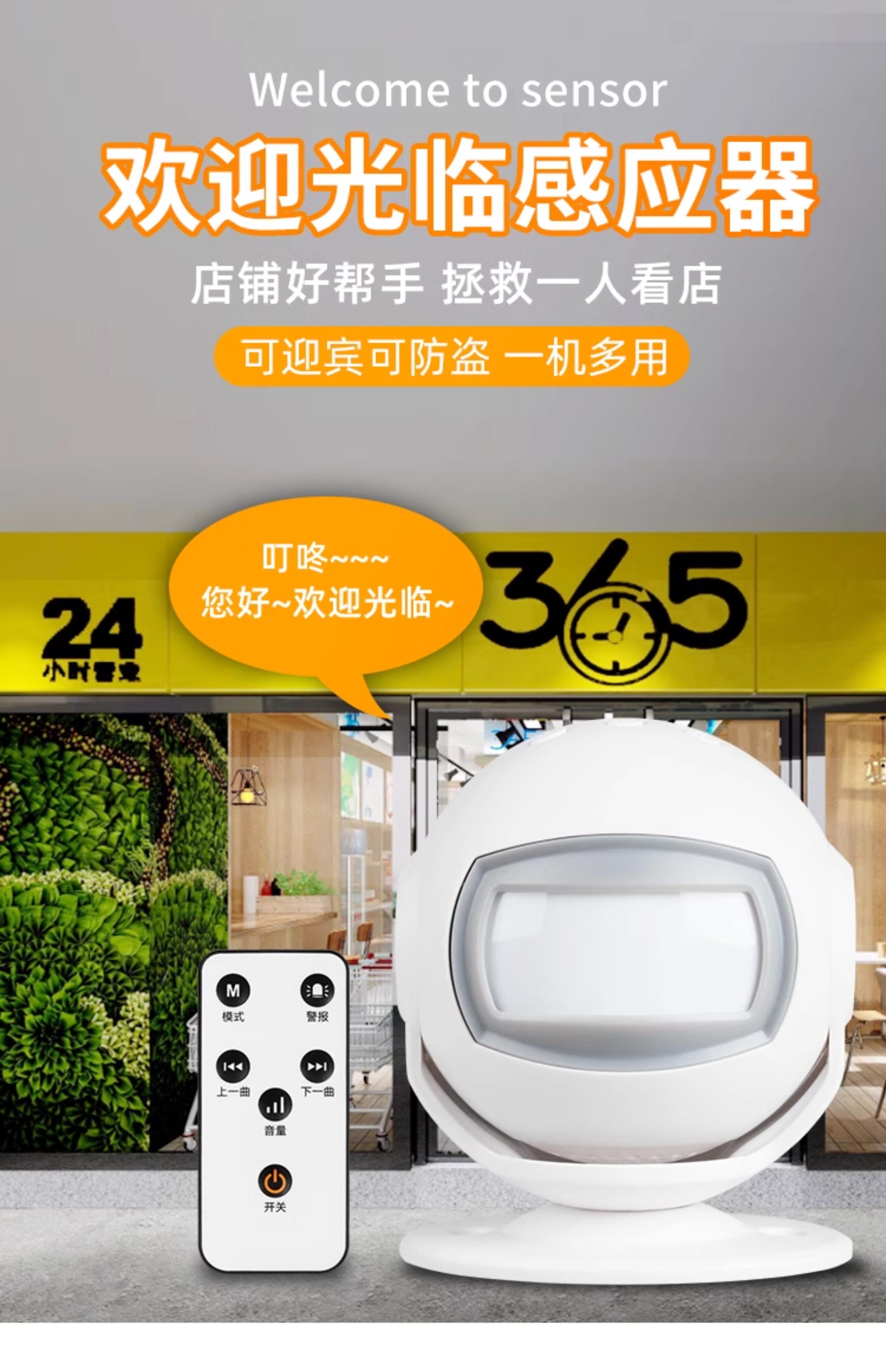 Store Voice-Activated Doorbell Welcome Sensor for Entering Supermarket or Store Entrance