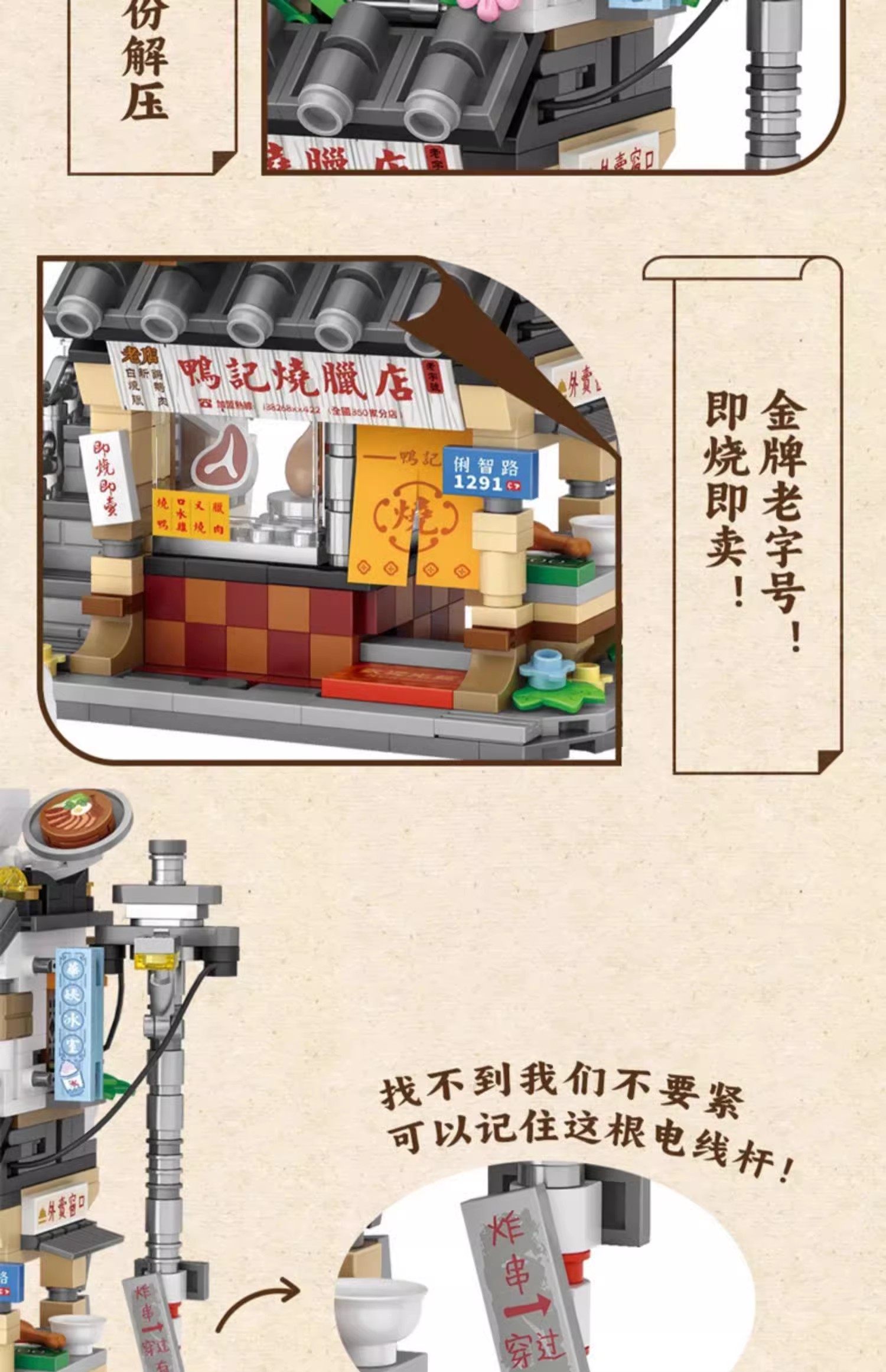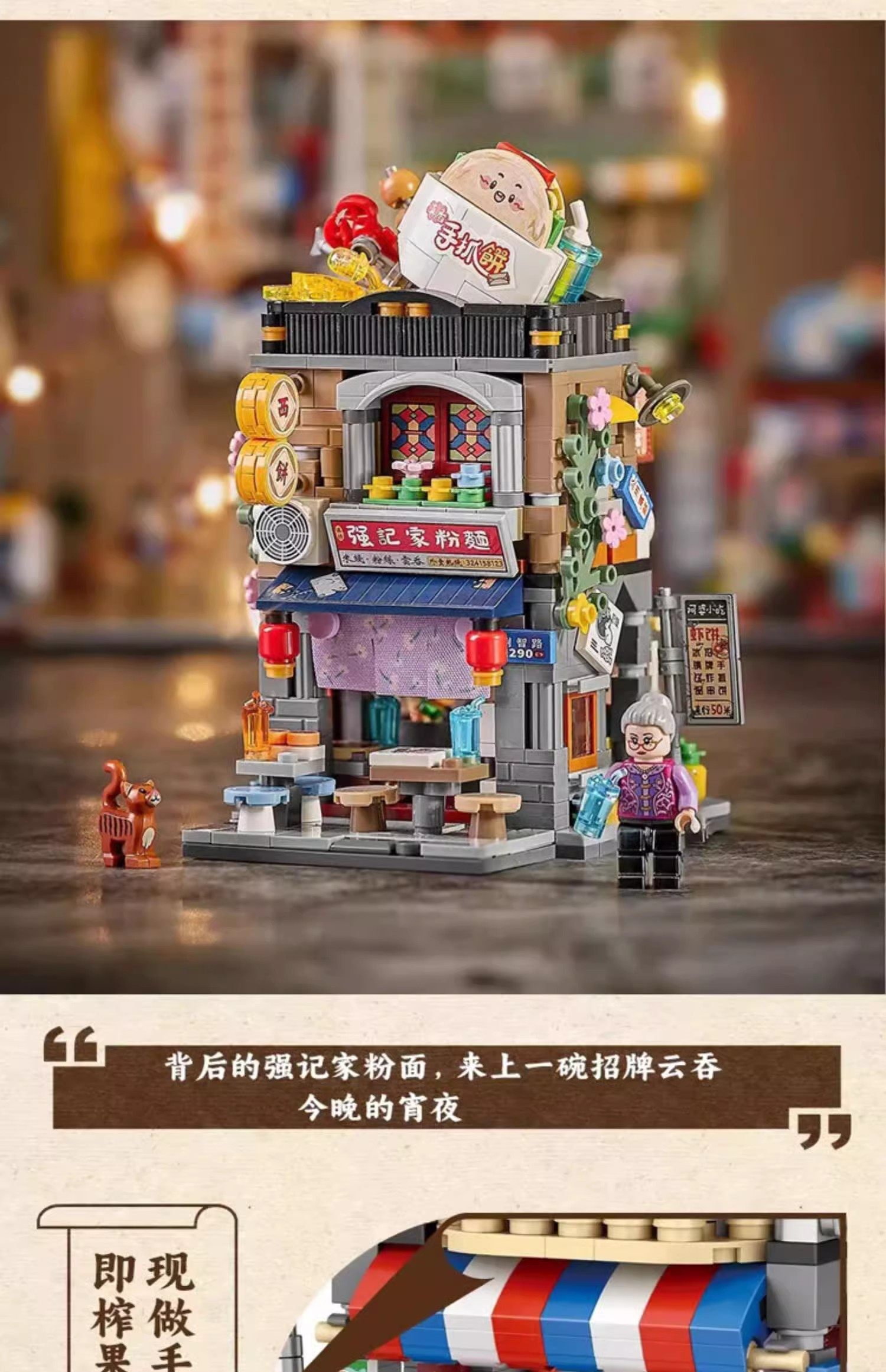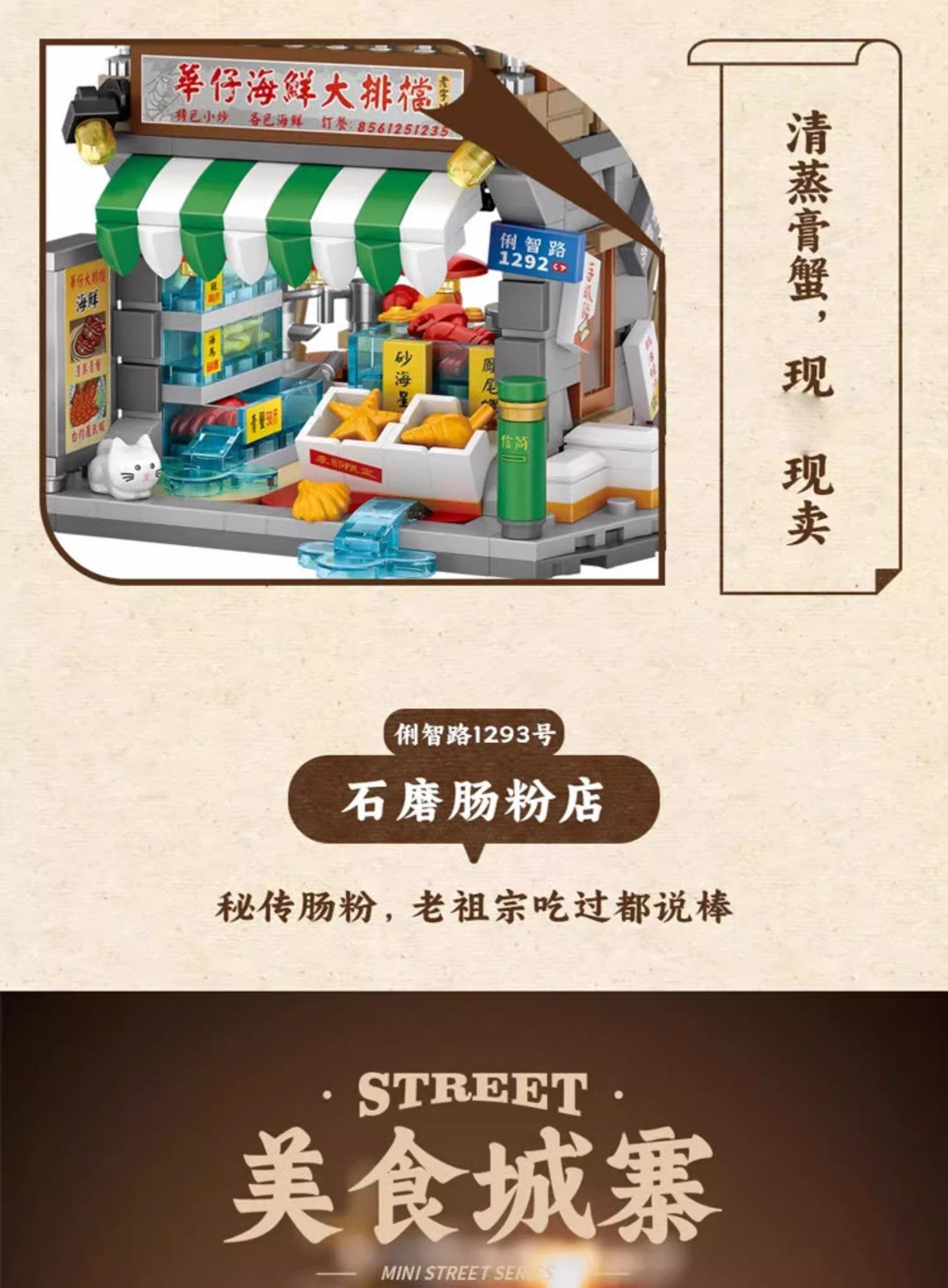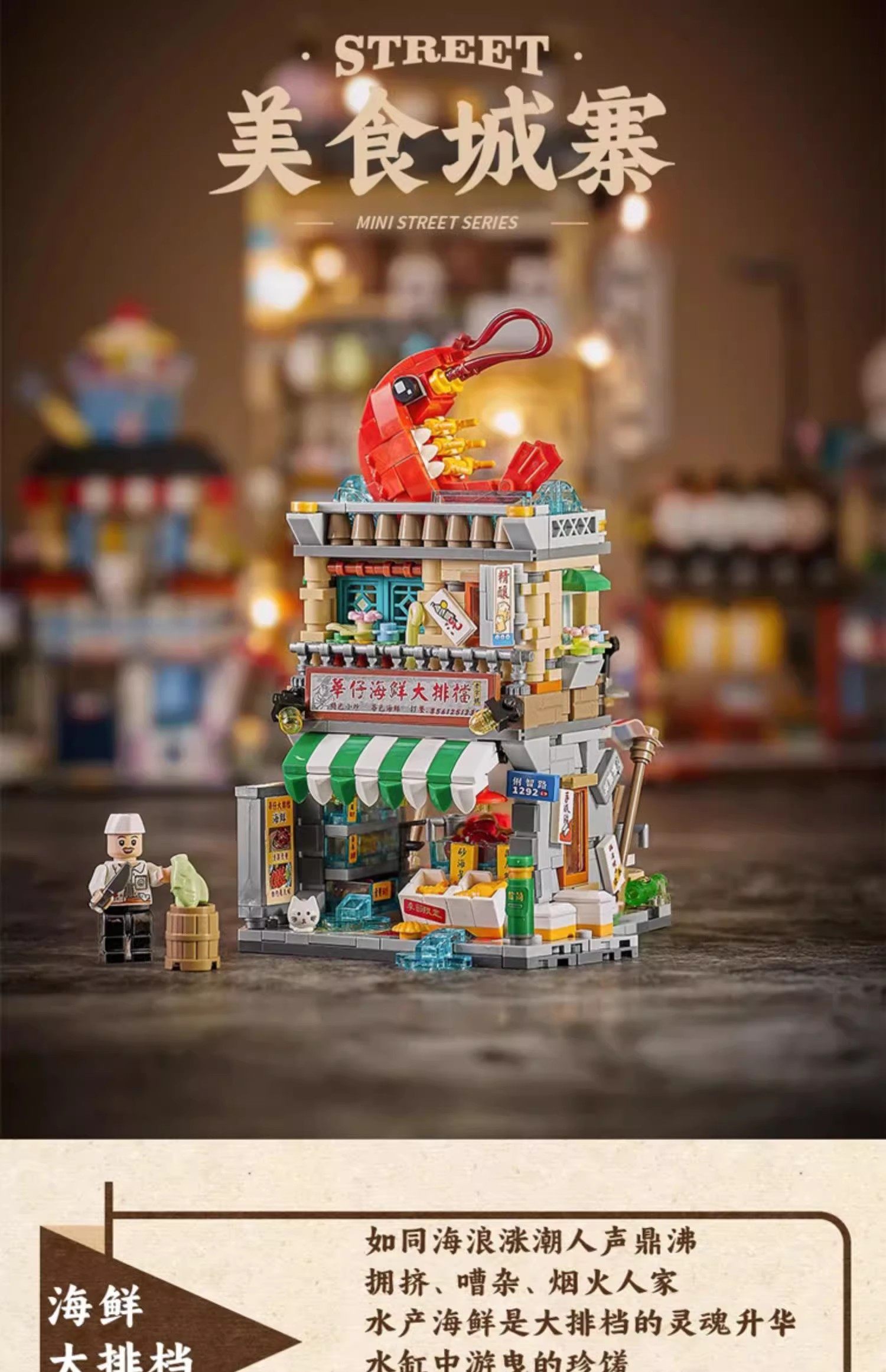 LOZ俐智美食城寨 港式街景积木海鲜大排档小吃店小颗粒拼装模型