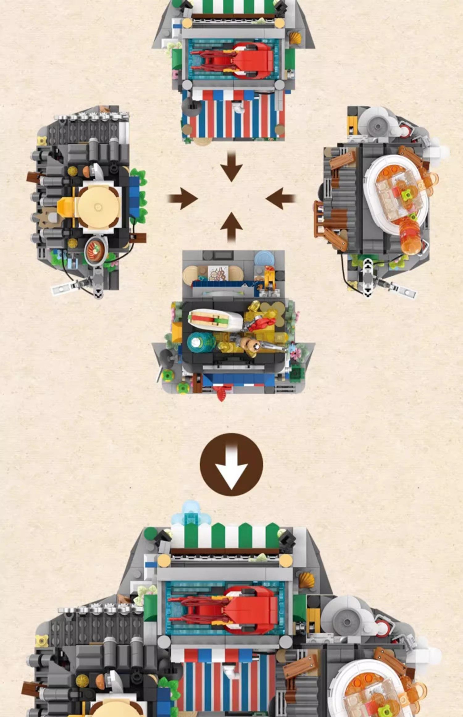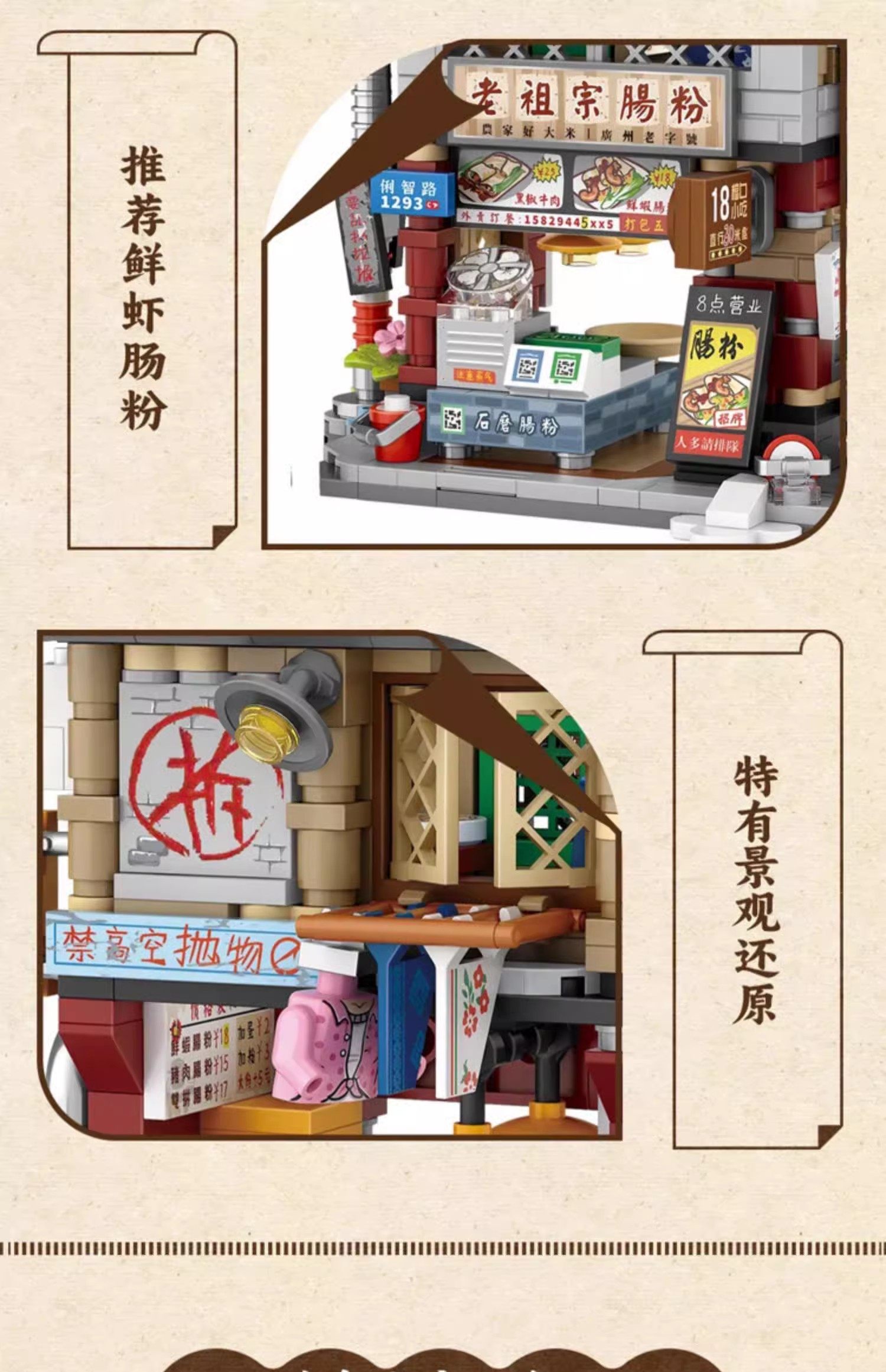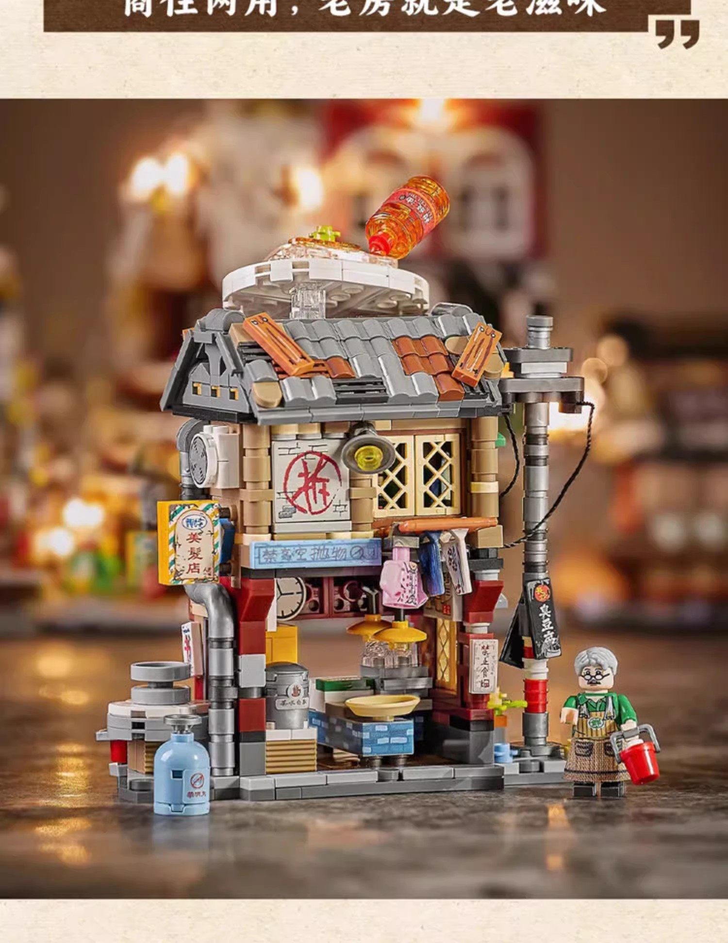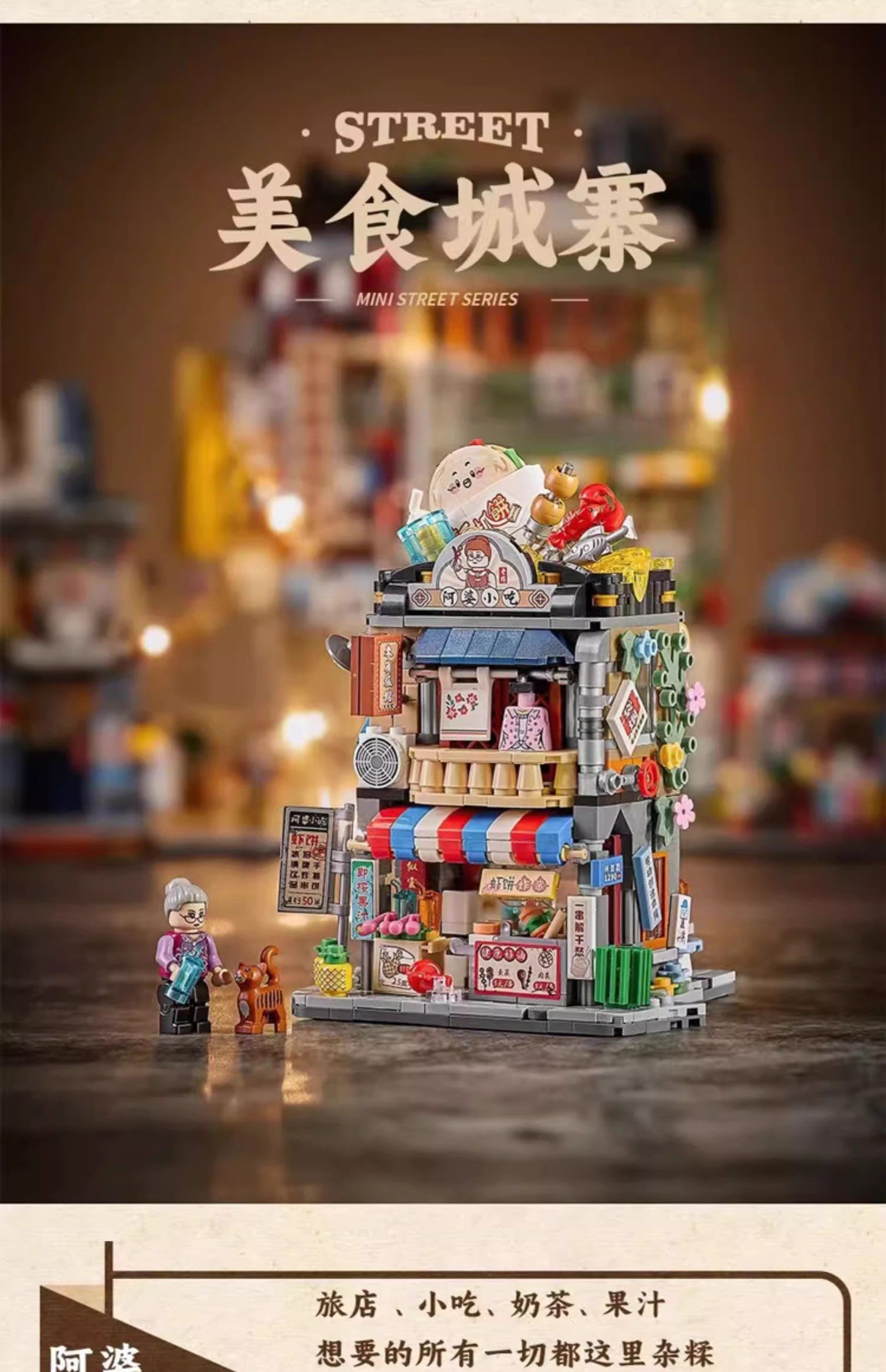 LOZ俐智美食城寨 港式街景积木海鲜大排档小吃店小颗粒拼装模型