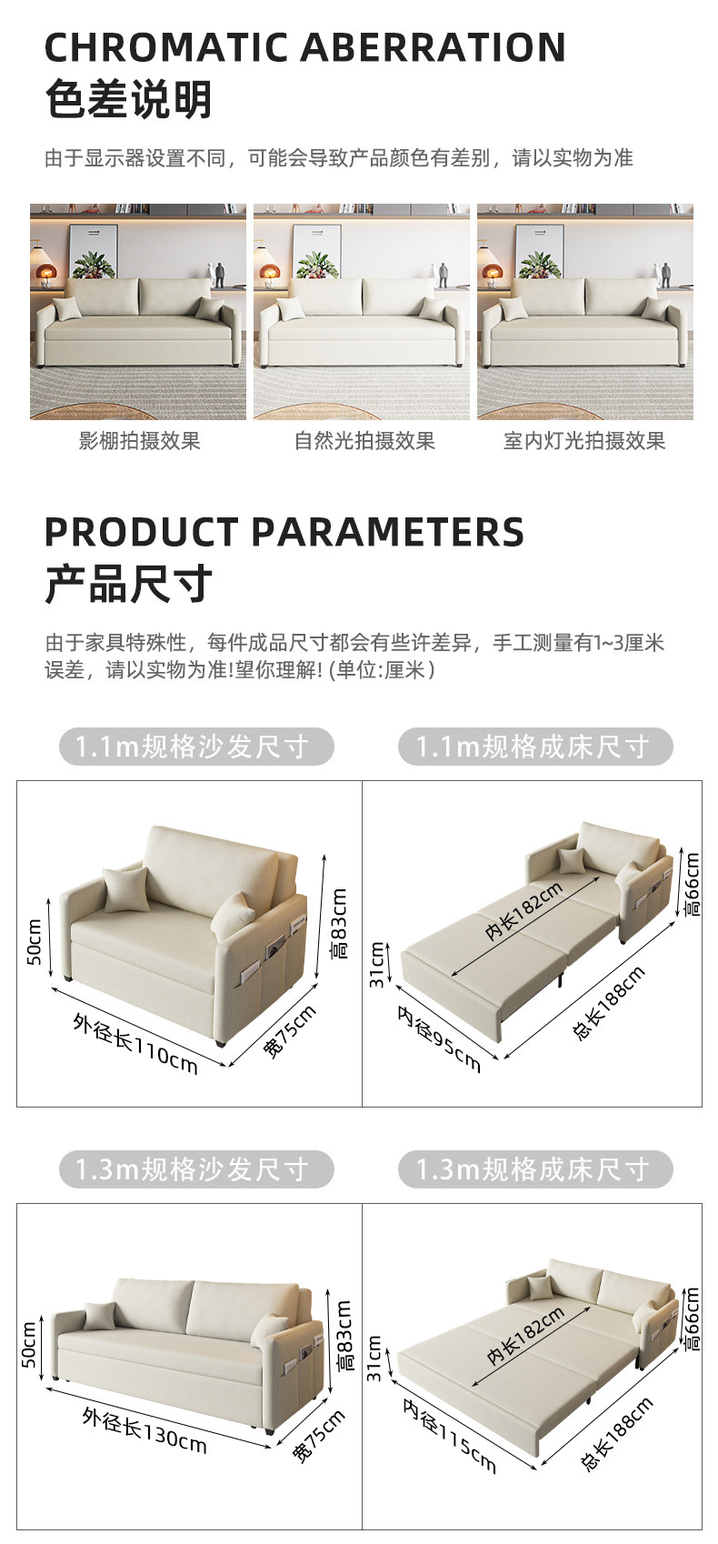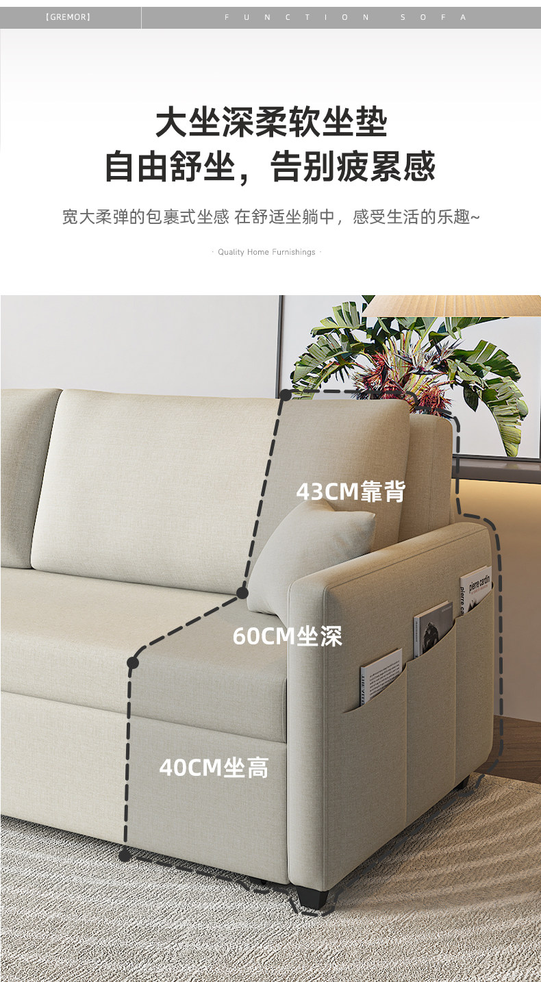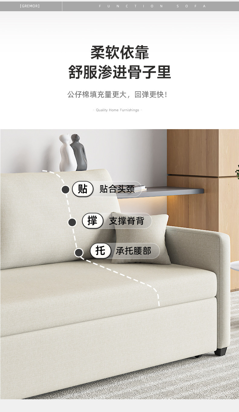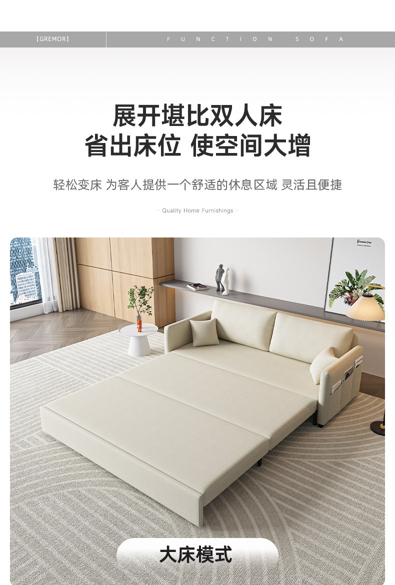 Gremor Folding Sofa Bed, Dual-Purpose for Living Room, Cream Style, Suitable for Small Apartments, Multifunctional, Extendable Pull-Out Fabric Bed