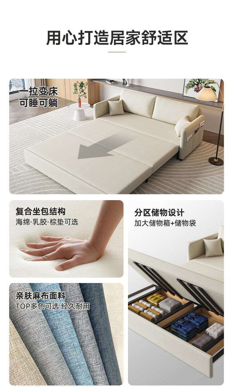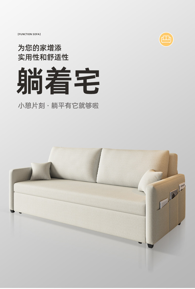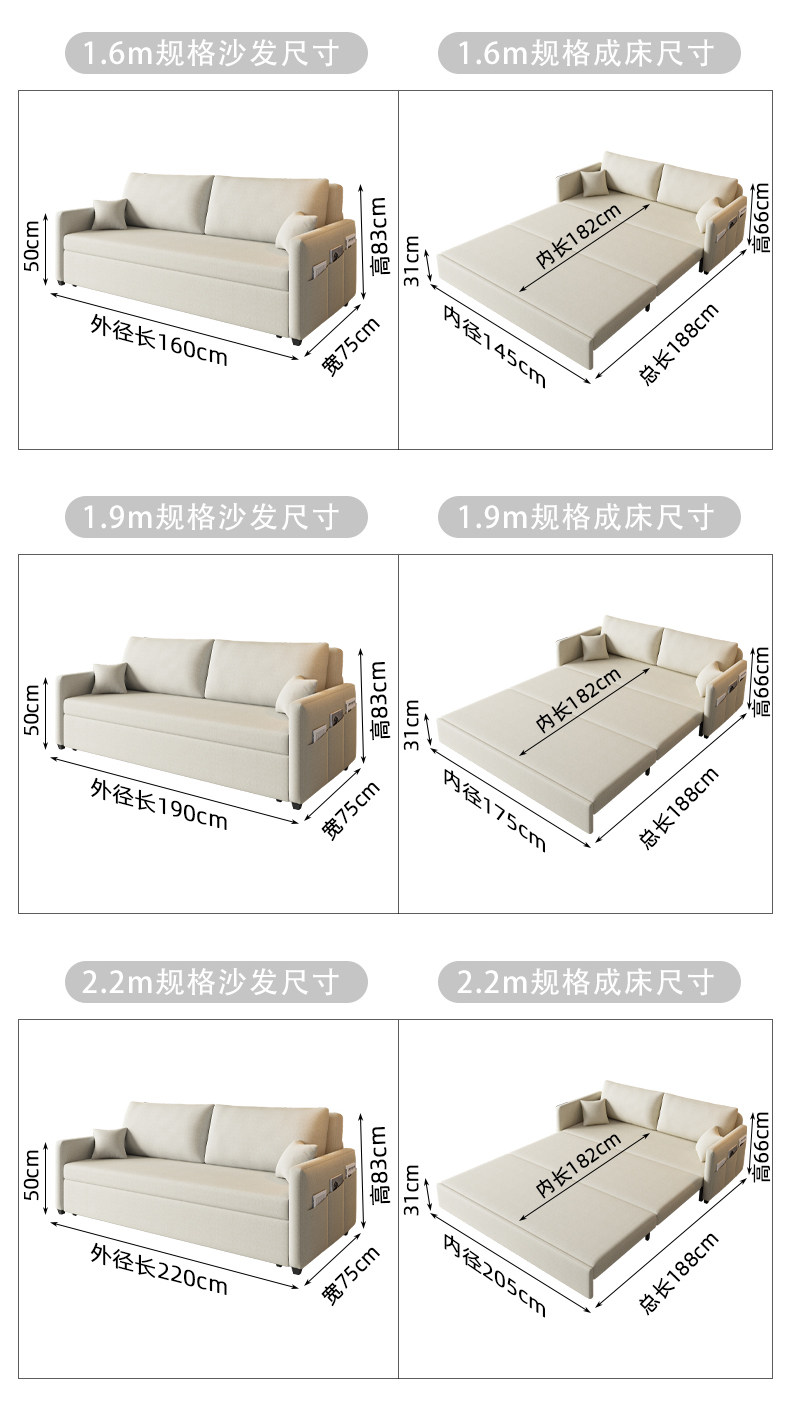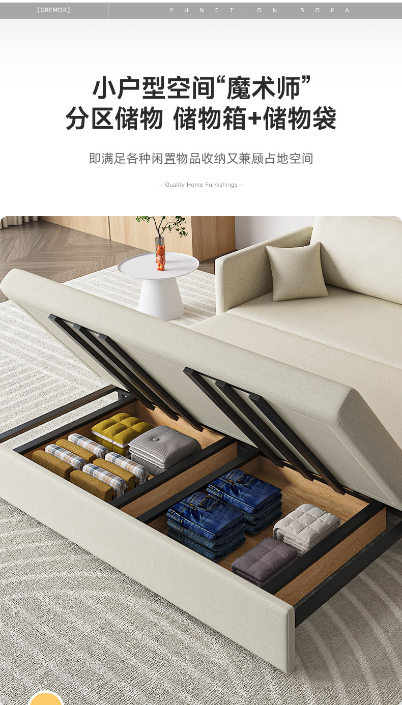 Gremor Folding Sofa Bed, Dual-Purpose for Living Room, Cream Style, Suitable for Small Apartments, Multifunctional, Extendable Pull-Out Fabric Bed