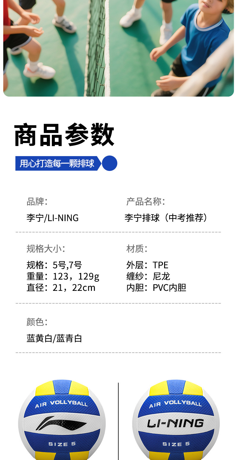 Li-Ning Air Volleyball, Special for High School Entrance Examination, Size 7, Student Size 5, Light and Soft, for Adults, Children, Beach, Women, Middle-Aged and Elderly, Competition and Training Ball