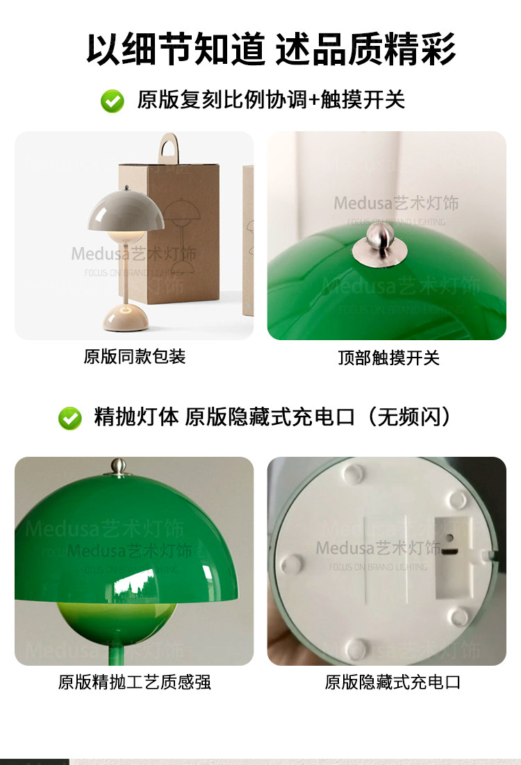 Lámpara de mesa danesa VP9 bud, carga inalámbrica, atenuación, decoración extraíble, mesita de noche, decoración de boda, luz de ambiente