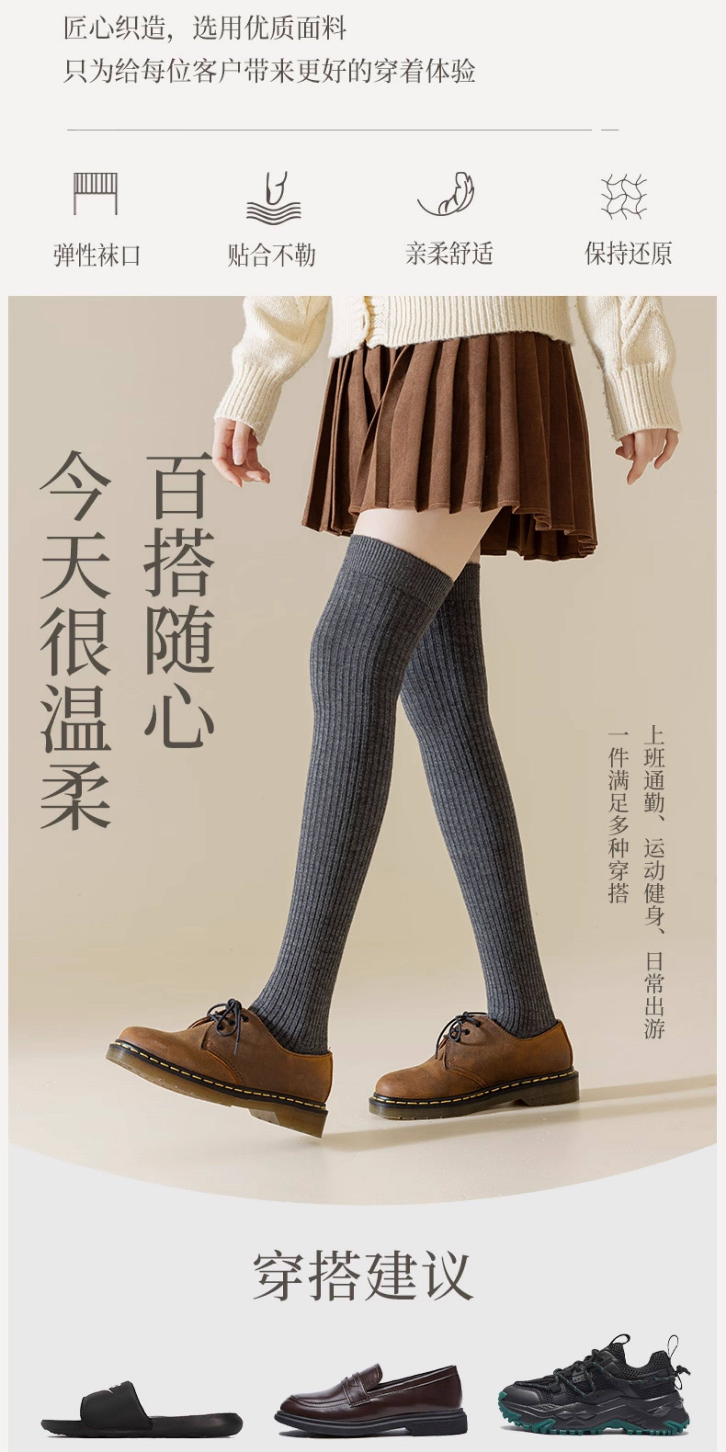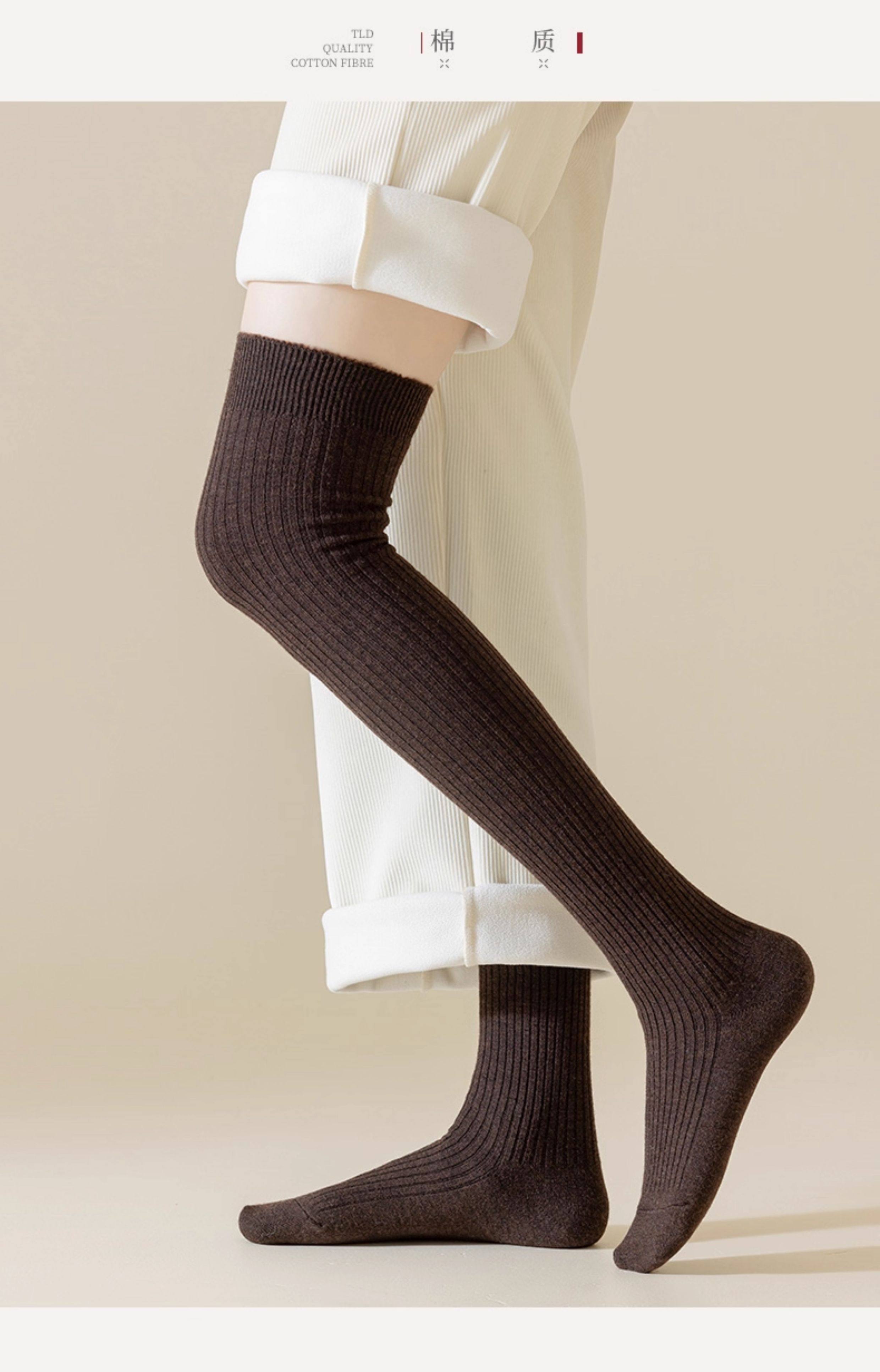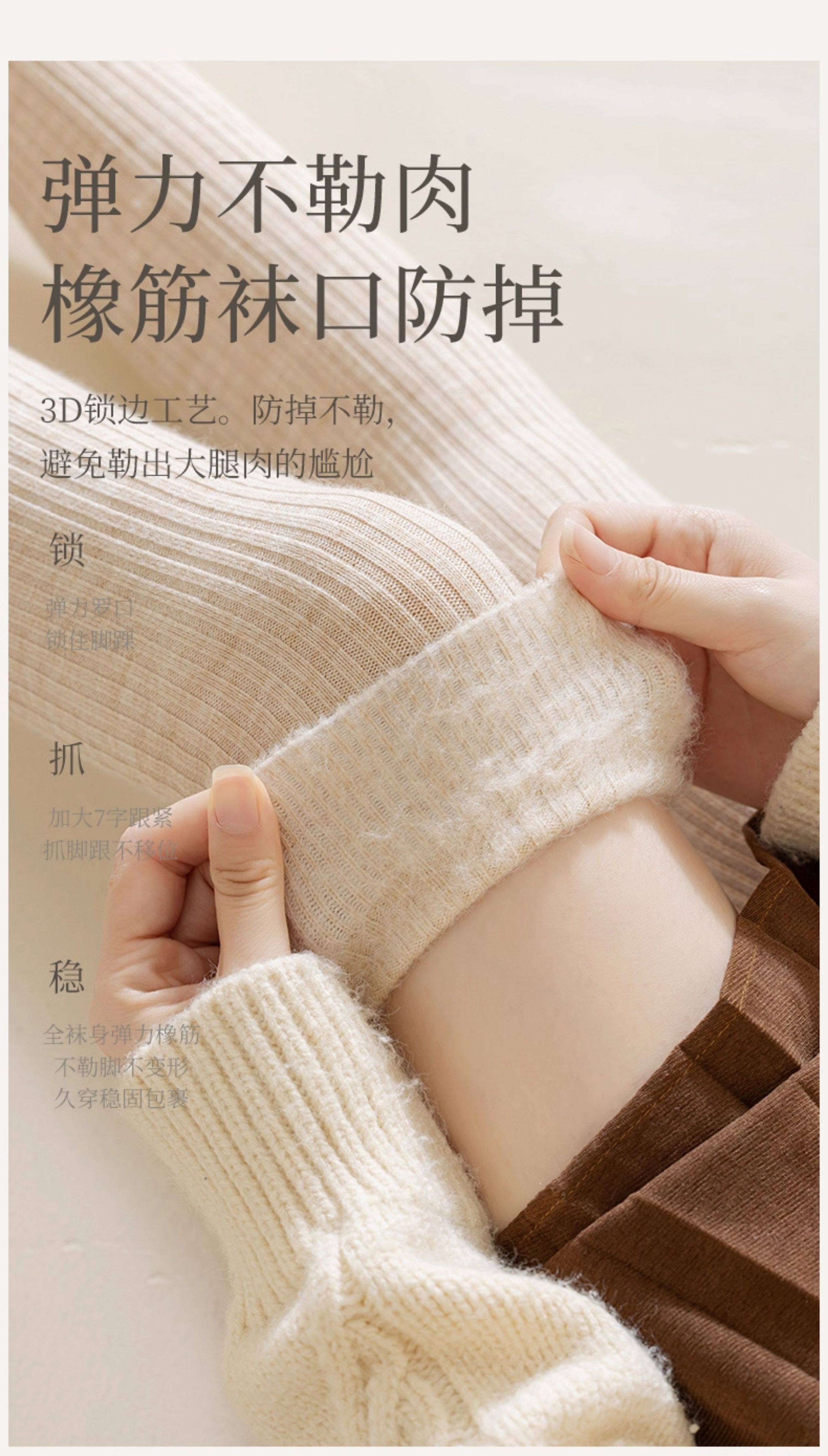 长筒袜女秋冬季搭配小皮鞋保暖袜无骨袜羊毛加绒加厚毛圈过膝袜女