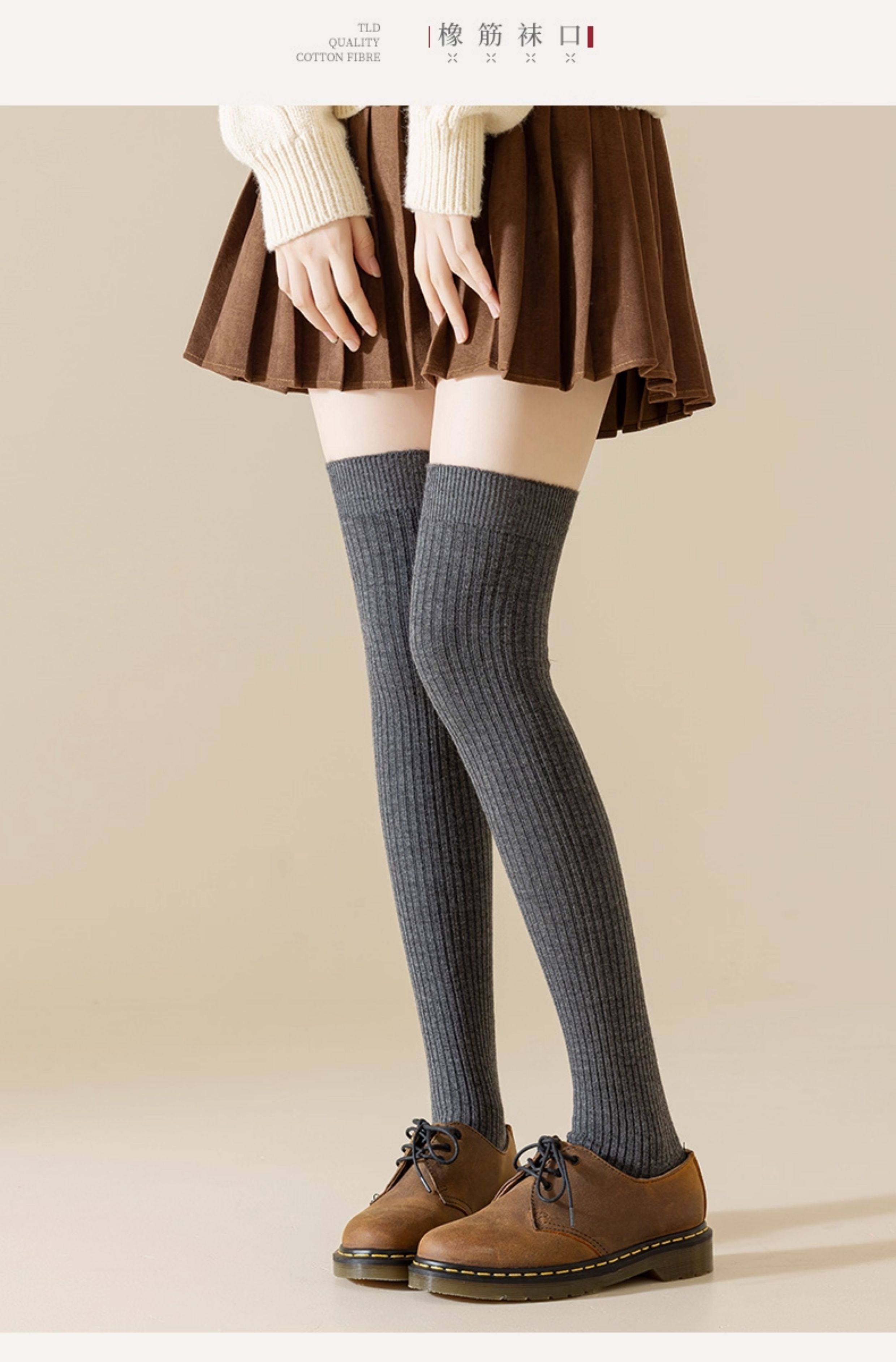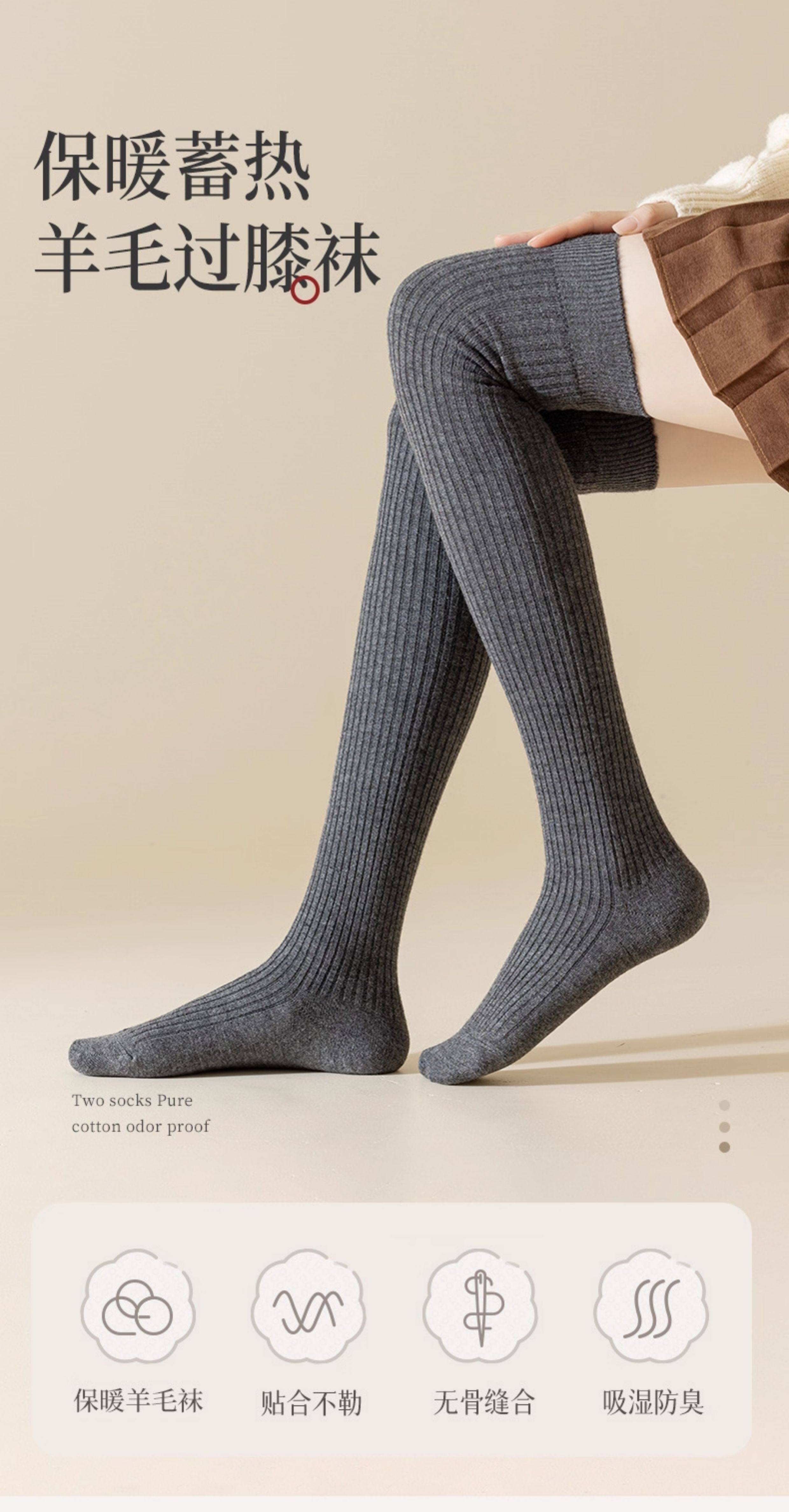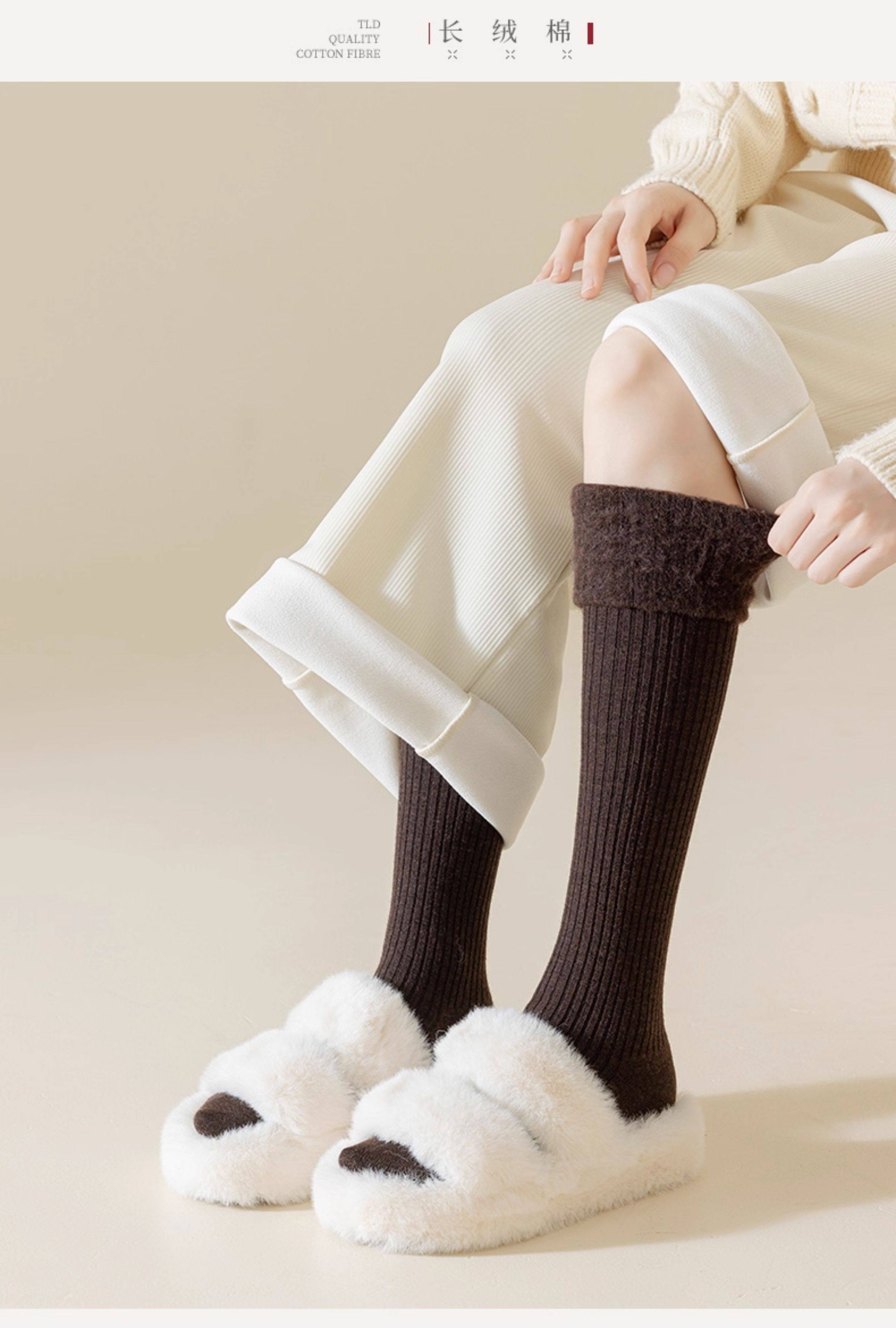 长筒袜女秋冬季搭配小皮鞋保暖袜无骨袜羊毛加绒加厚毛圈过膝袜女