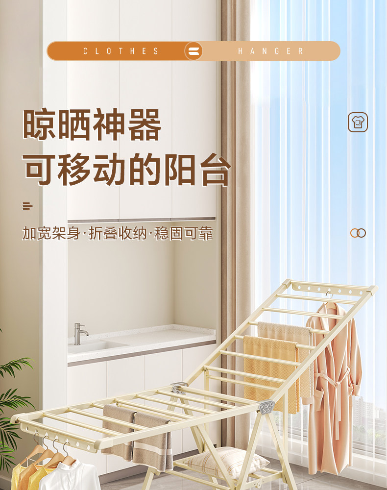 铝合金晾衣架落地折叠室内家用阳台凉挂衣杆户外晒衣架晒被子神器