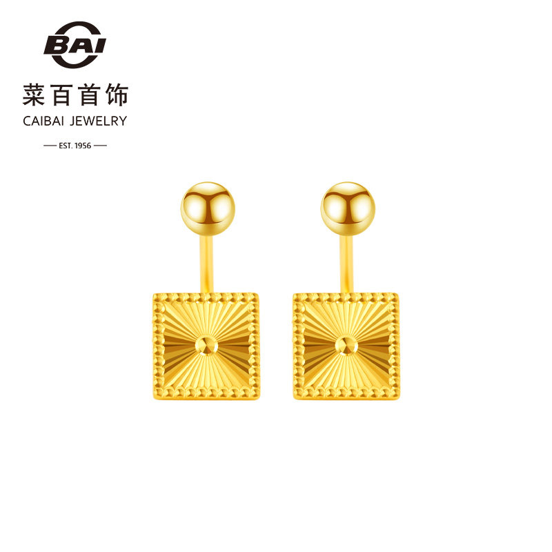 Neujahrsgeschenk Schmuck reines Gold Ohrringe Gold Mode Laser quadratische Ohrringe personalisierte Nische quadratische Ohrringe einzeln