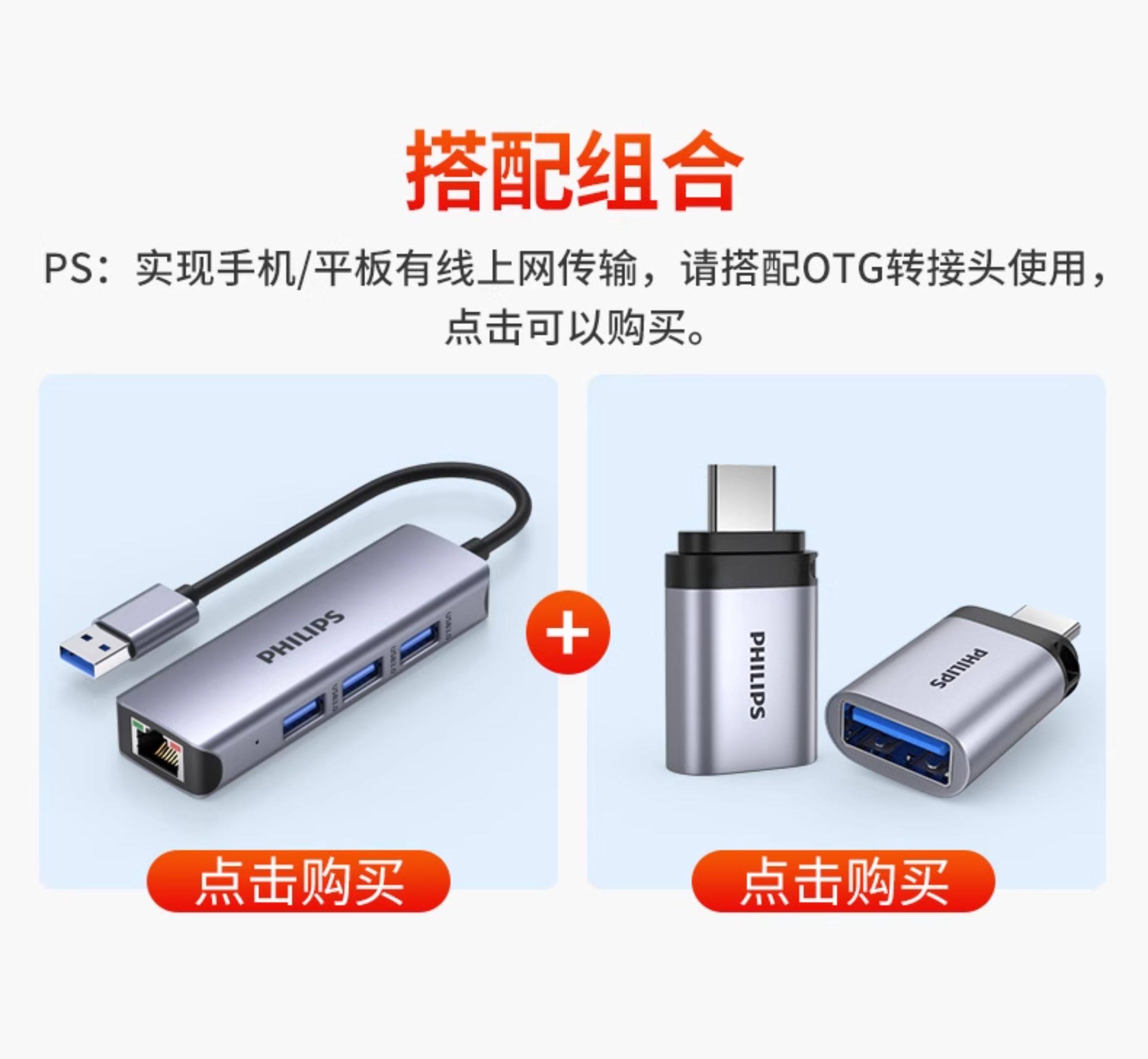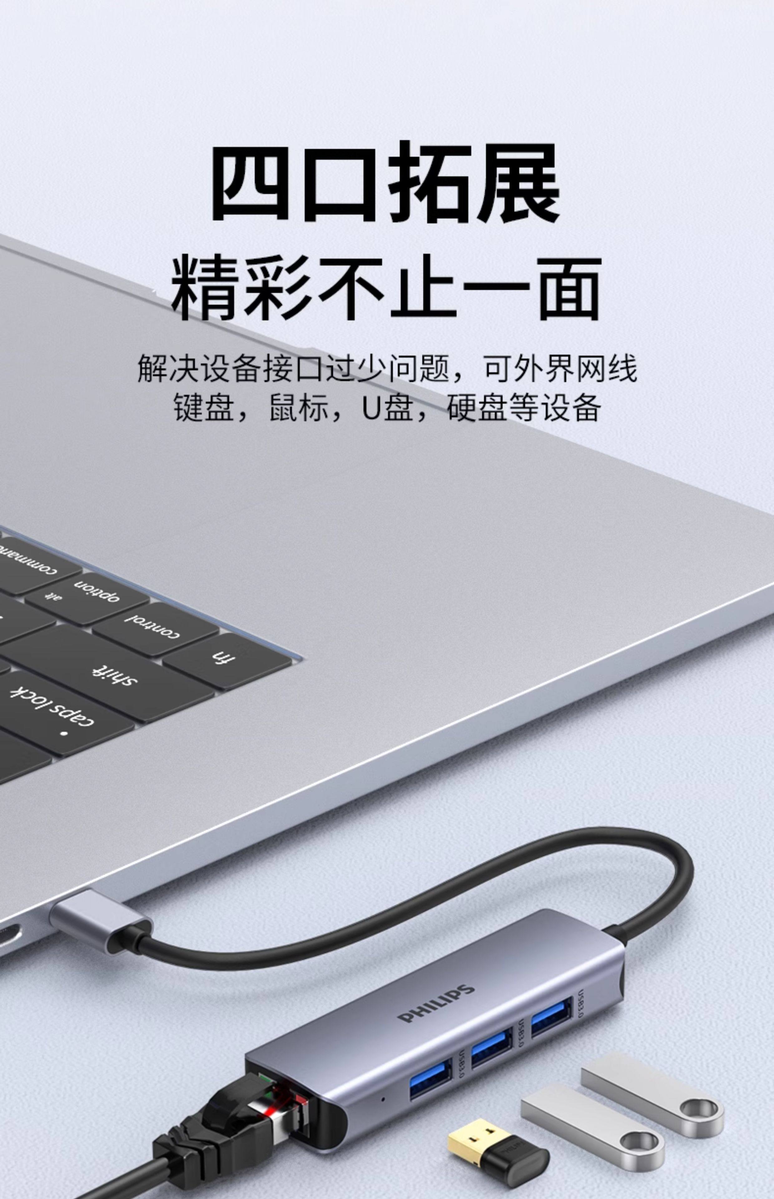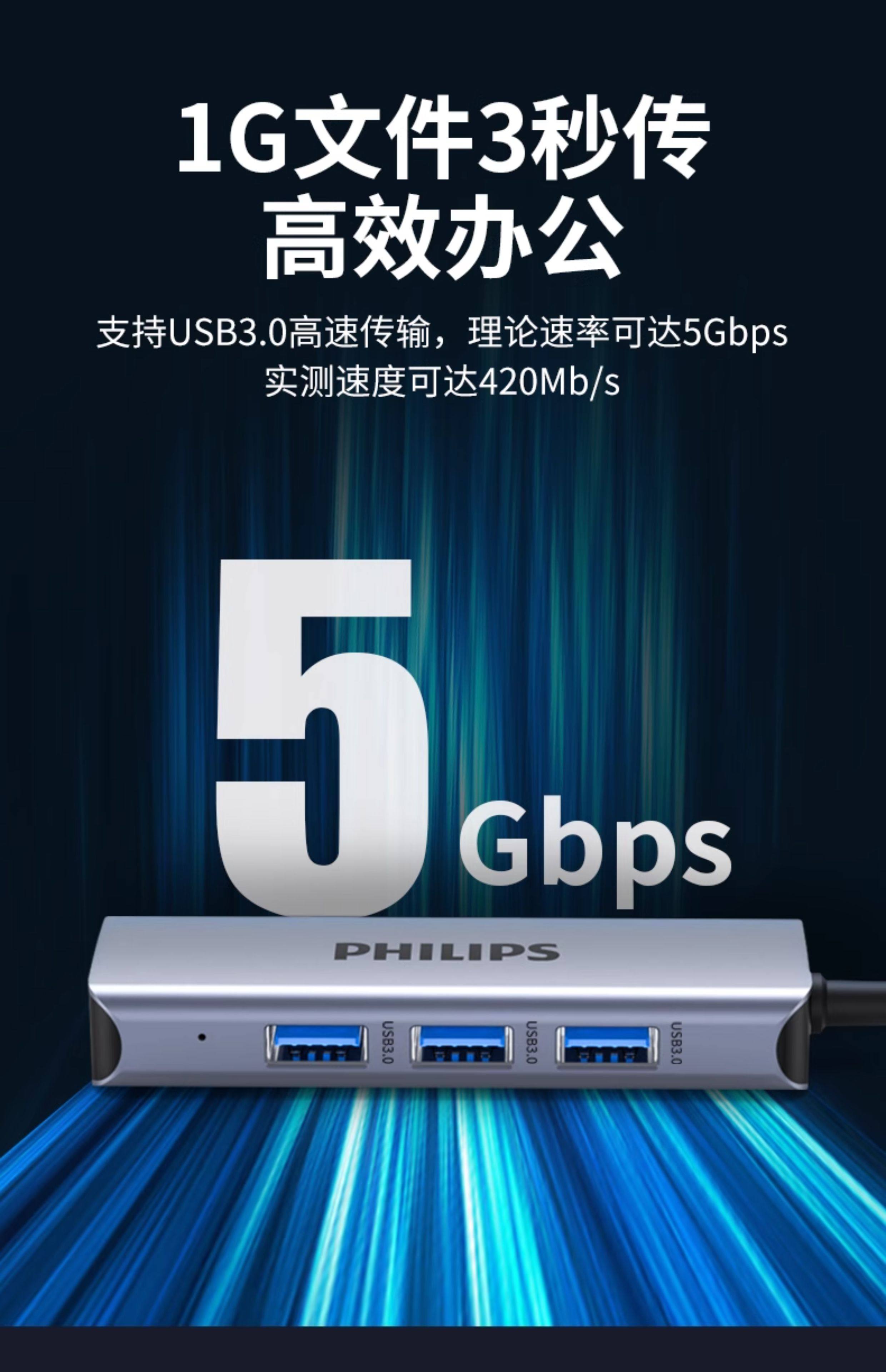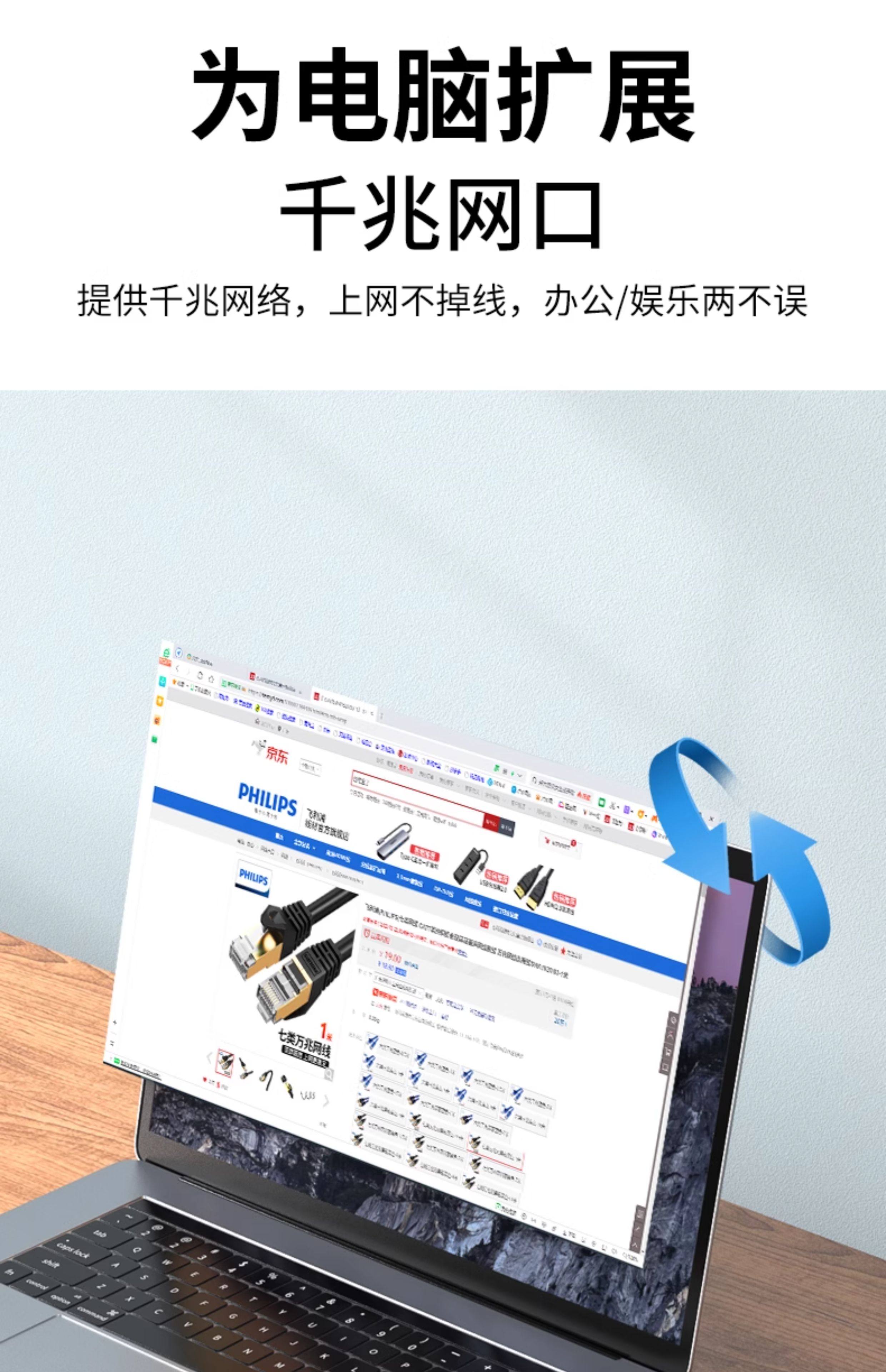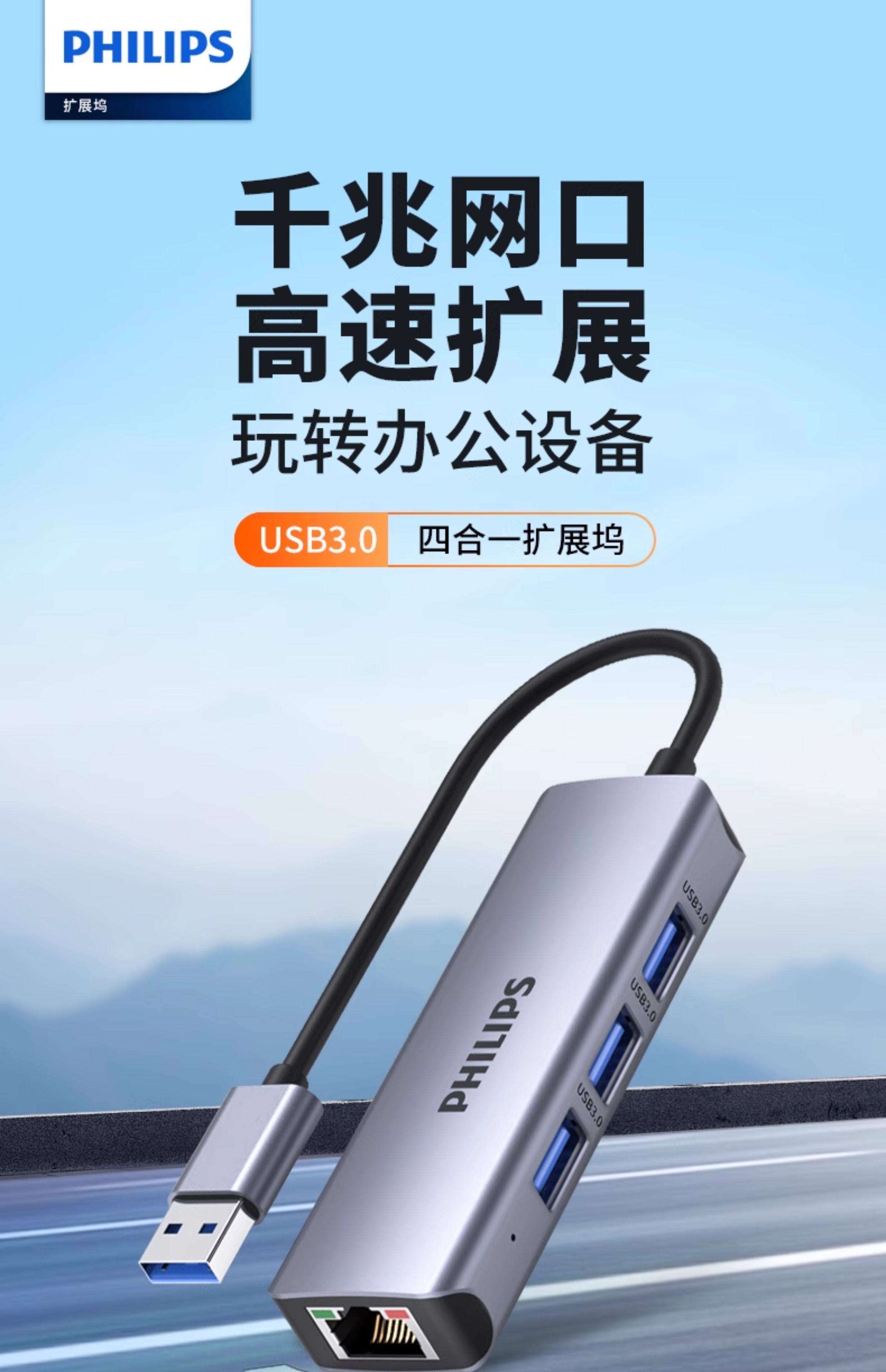 Philips USB-Kabel-Netzwerkkarte, Computer-Netzwerkkabel, Übertragungsschnittstelle, Computer, externes RJ45-Netzwerk, 100 m Gigabit-Ethernet-Anschluss, Konverter, geeignet für Desktop-Laptops, Mobiltelefone, Tablets, NAS