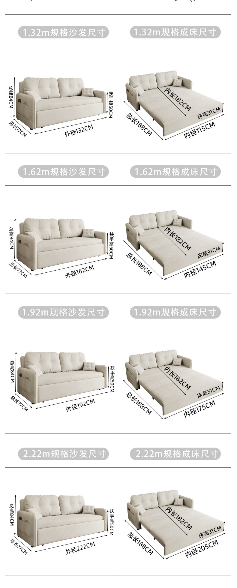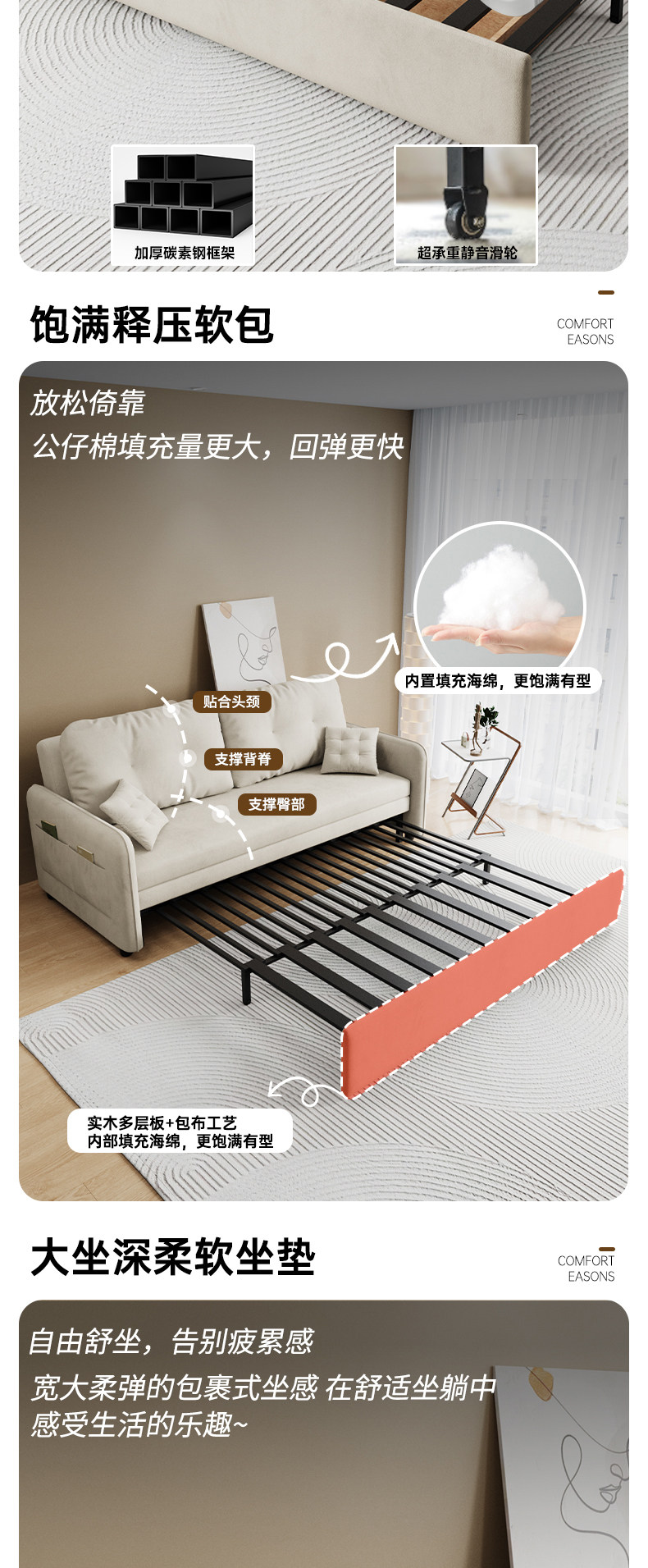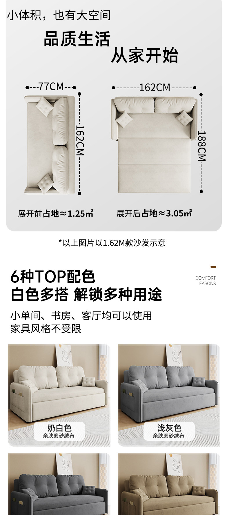 GREMOR沙发床折叠两用2024新款简约现代小户型可伸缩坐卧布艺床
