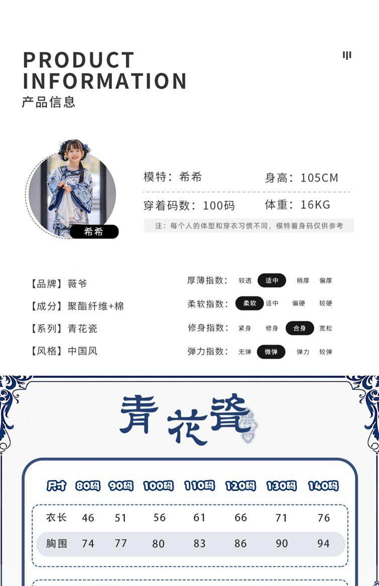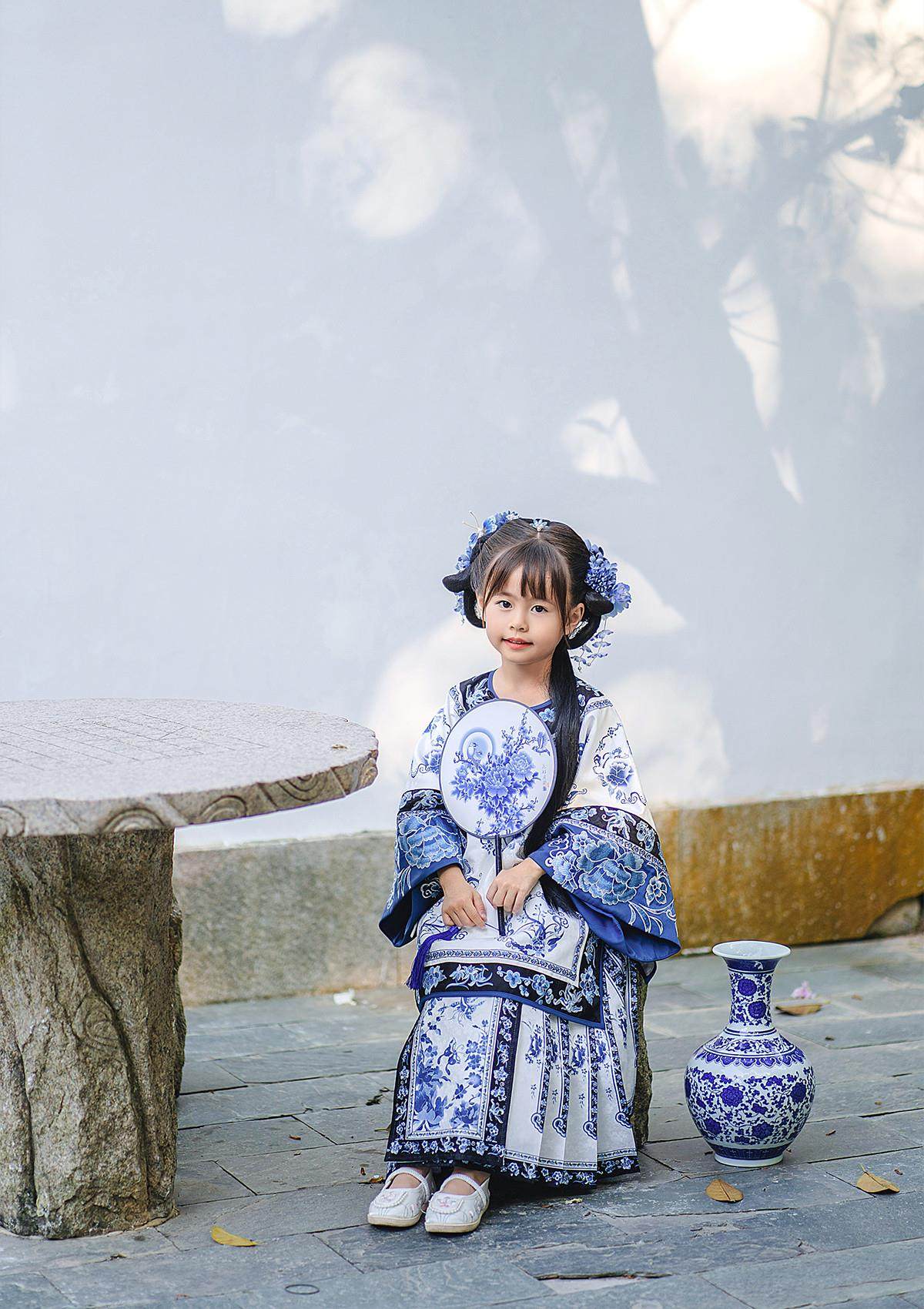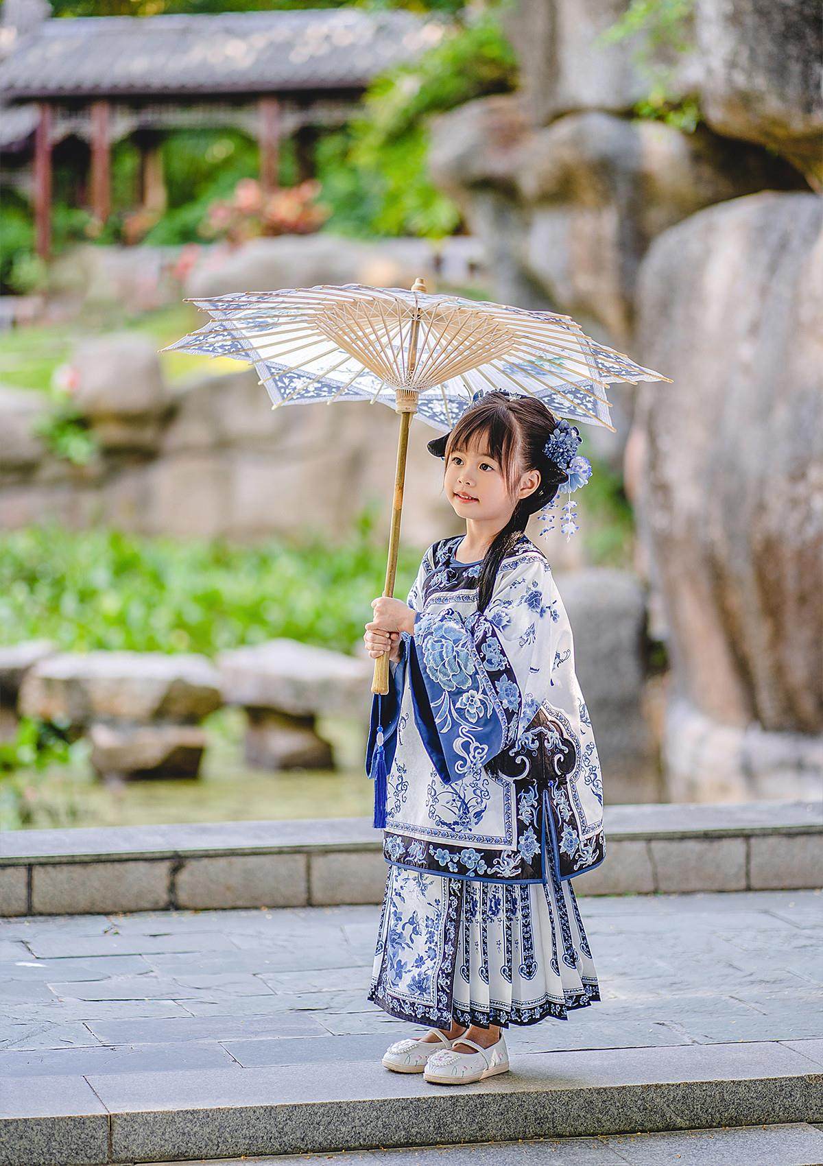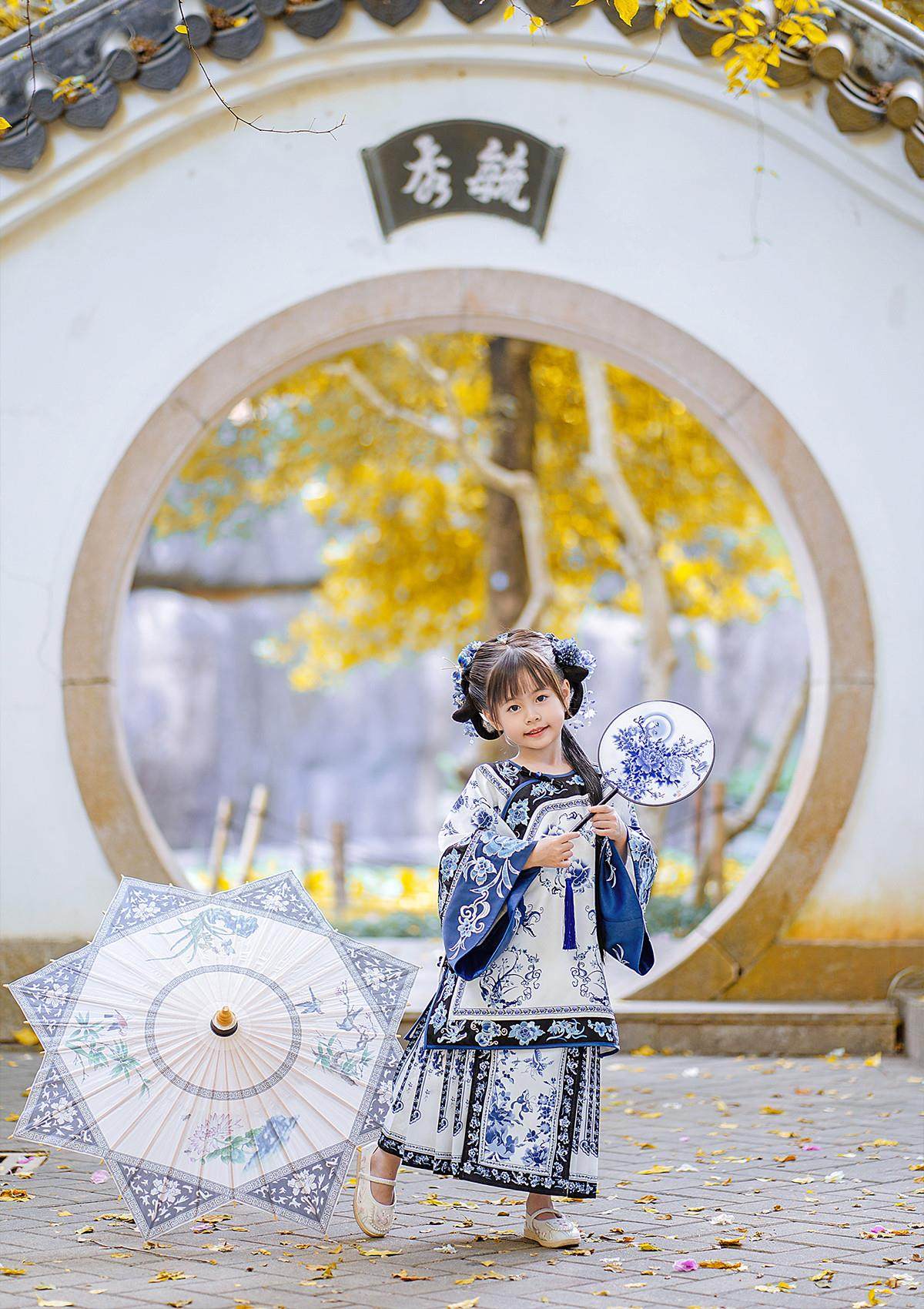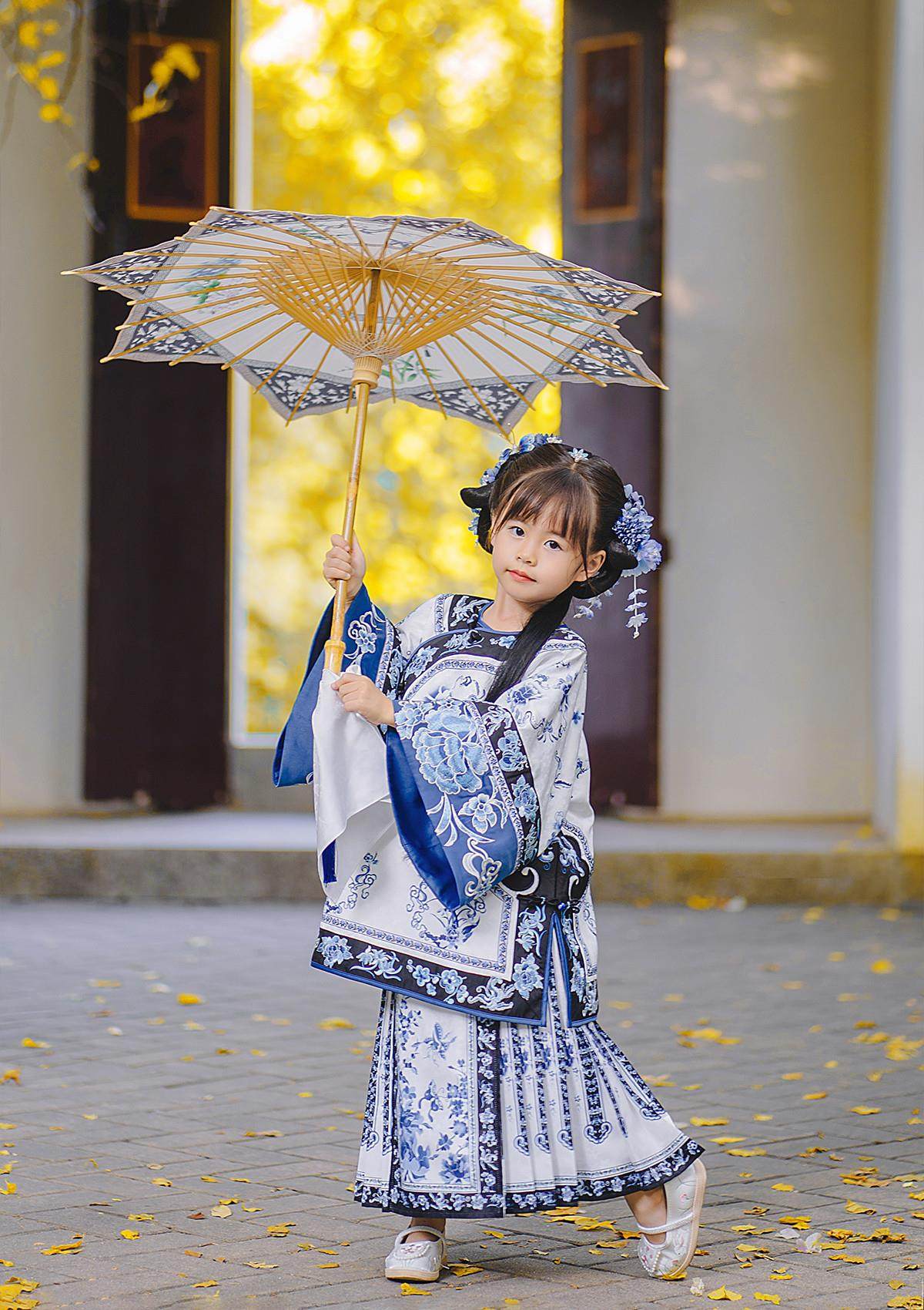 Girls Manchu Chinese Han Dynasty Blue and White Porcelain Qing Dynasty Checkered Skirt Spring and Autumn Qing Han Female Pioneer Grandma Little Princess Skirt