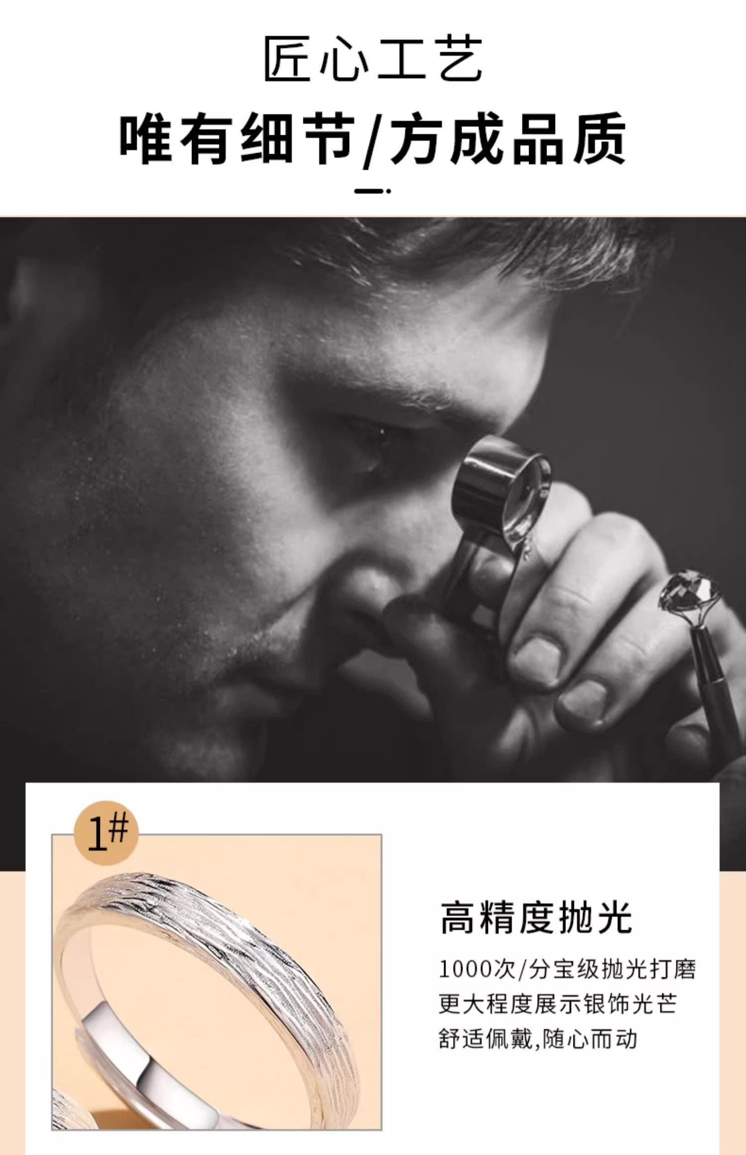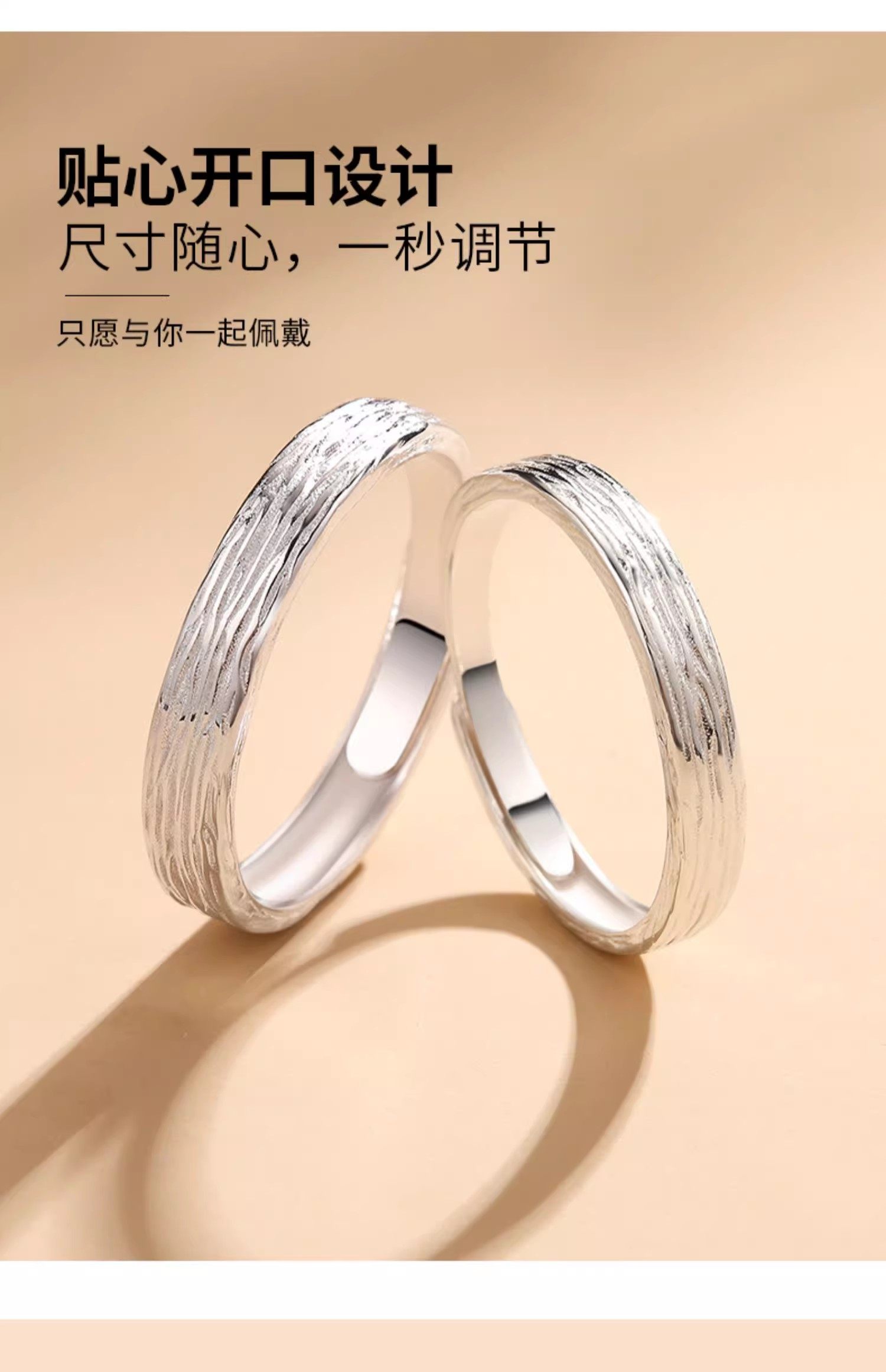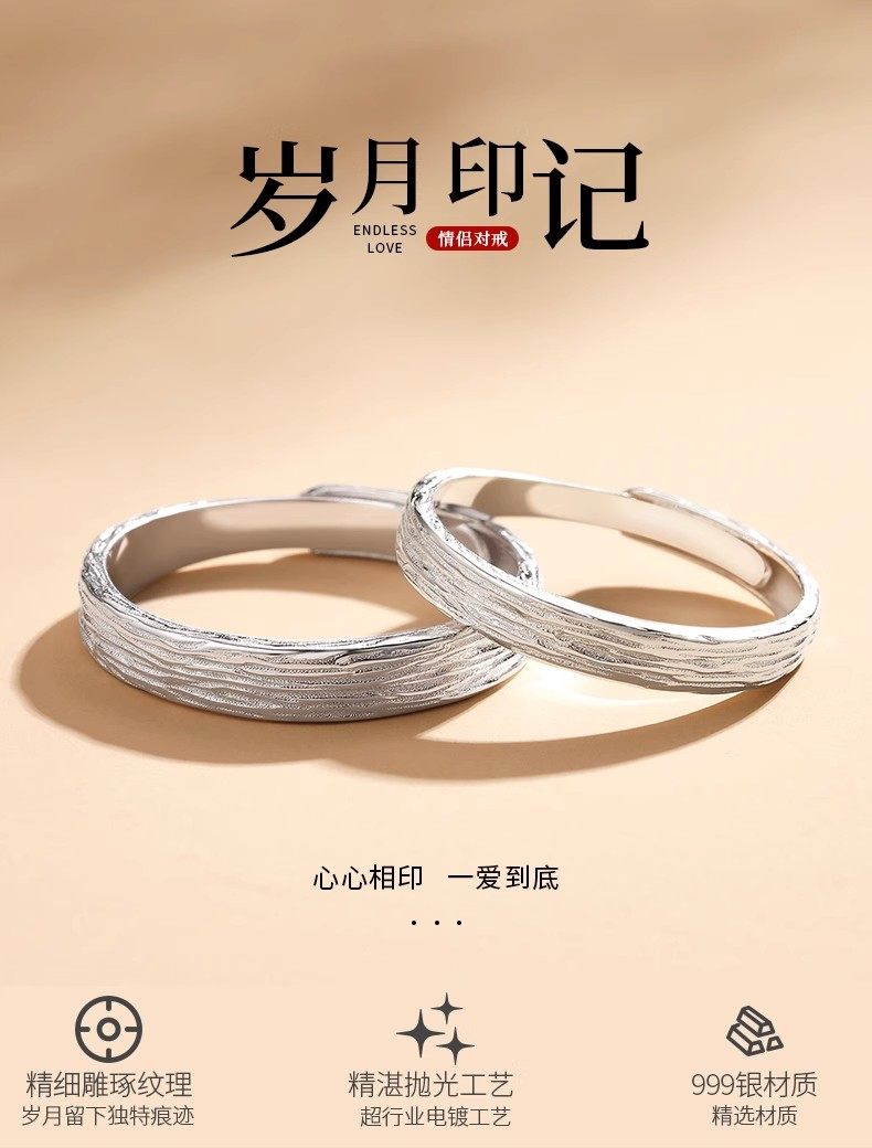 Time Mark 999 Pure Silver Ring Niche Design Couple Rings Plain Band New Year Birthday Gift for Girlfriend