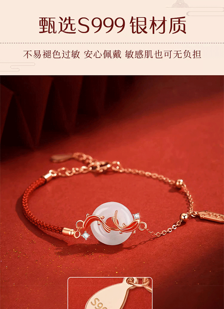 Браслет из серебра S999 с подвеской из нефрита Хотан для женщин, красная нить на год рождения, подарок на день рождения и Новый год для девушки