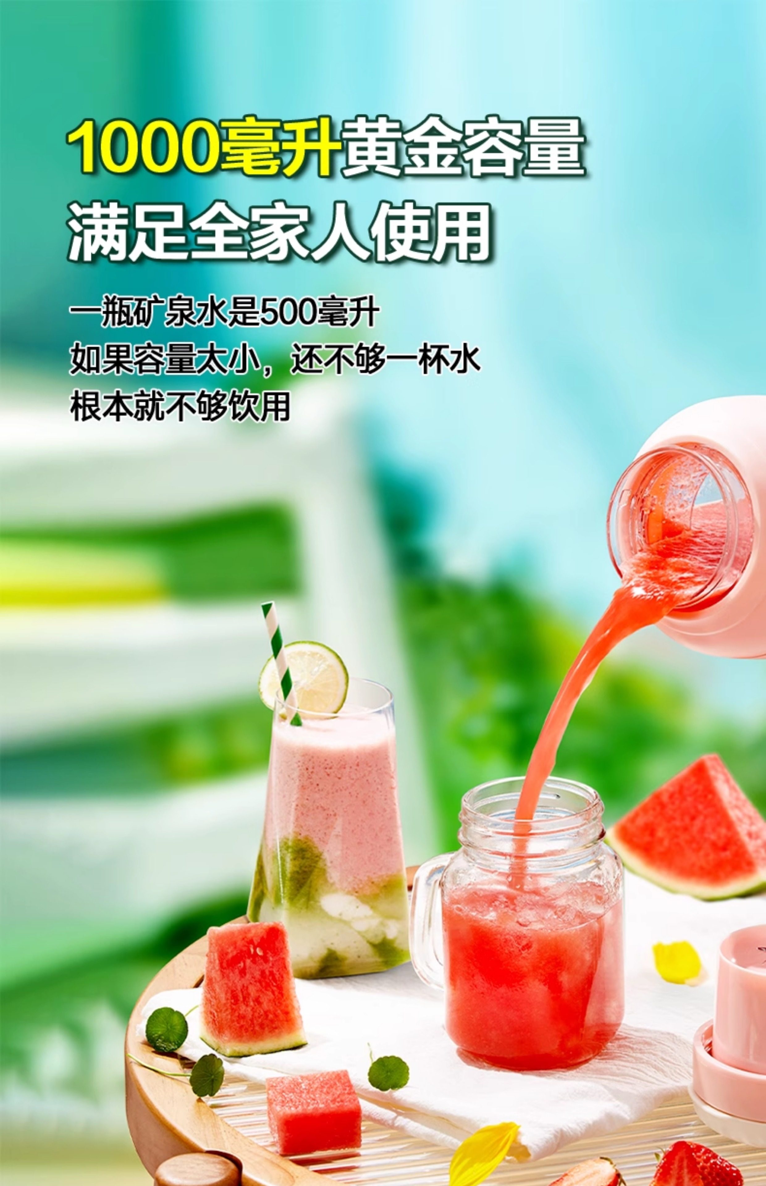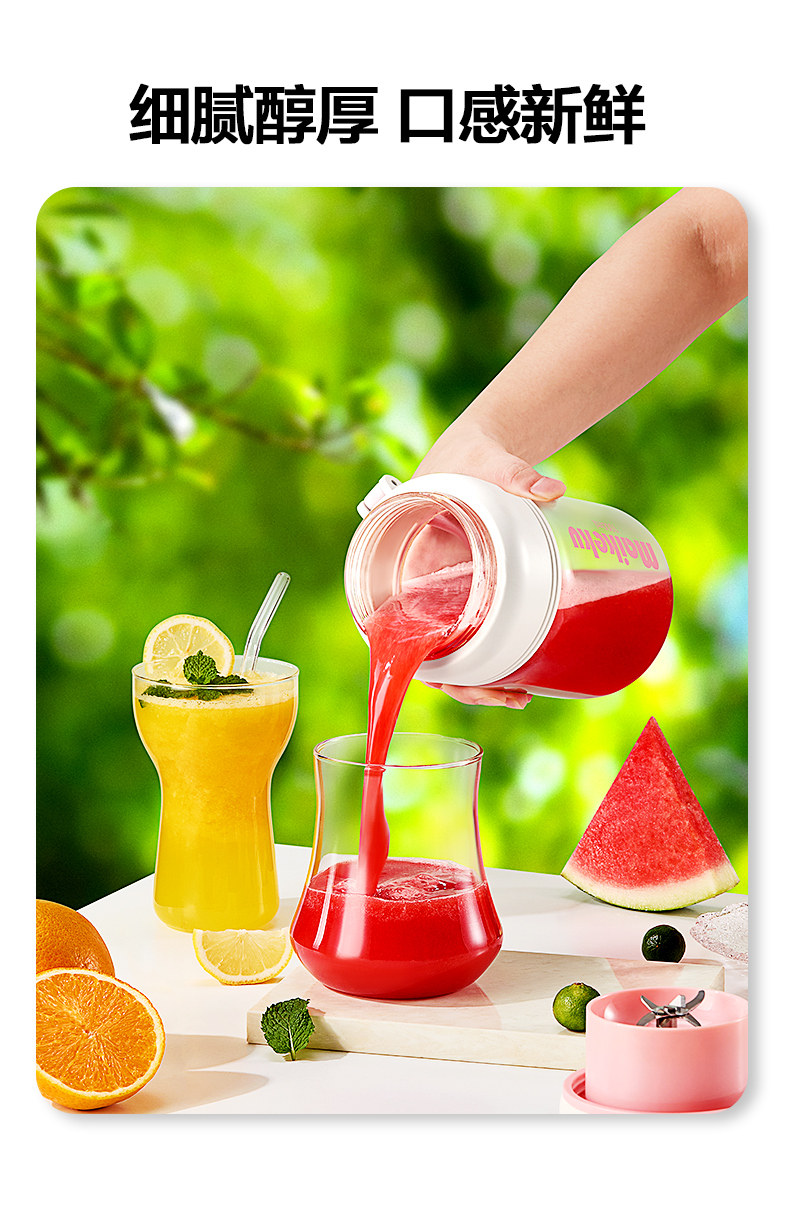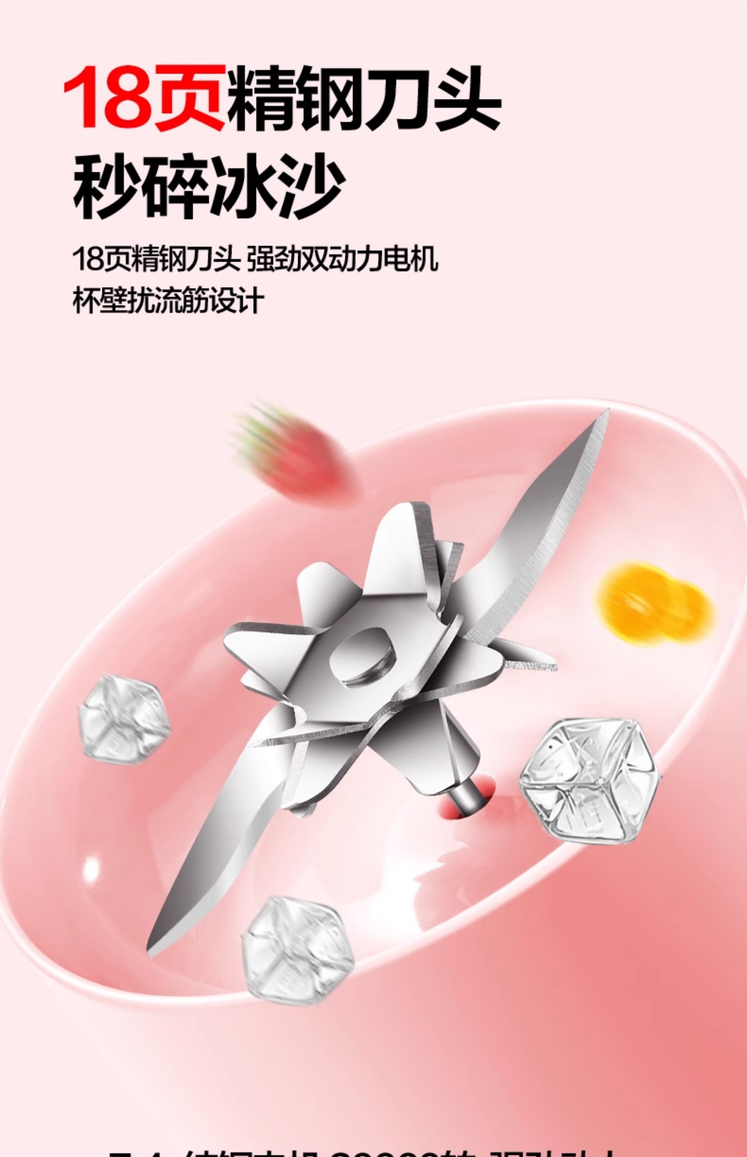 榨汁机附加功能 榨汁,碎冰,搅拌,干磨,无线便携