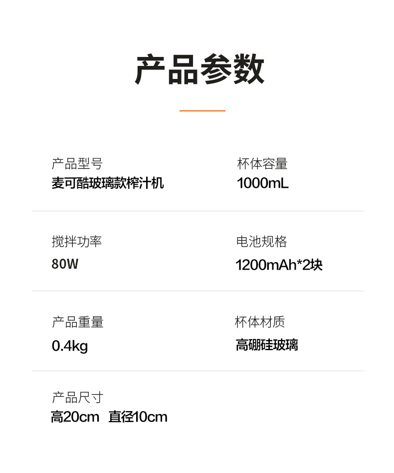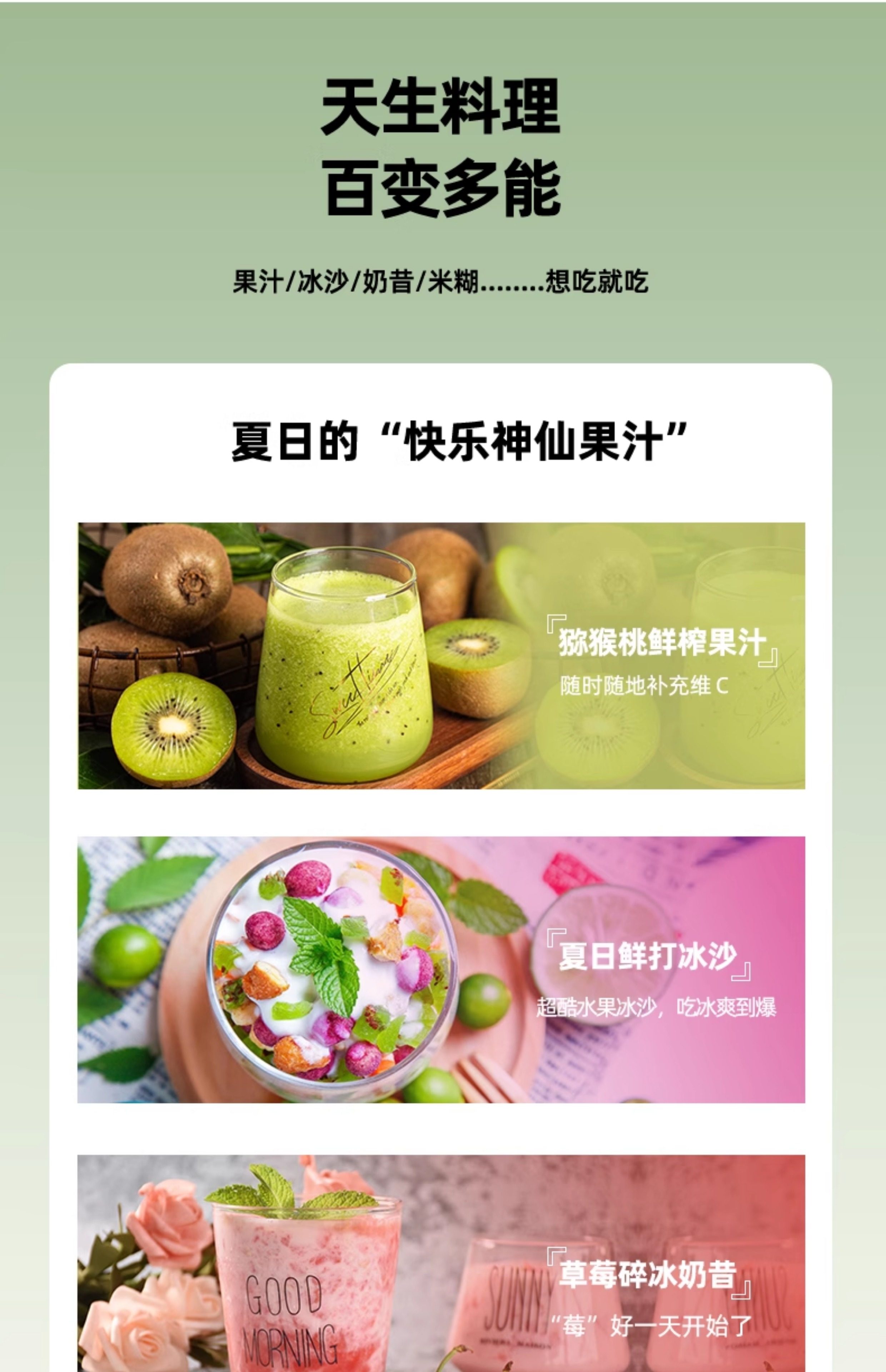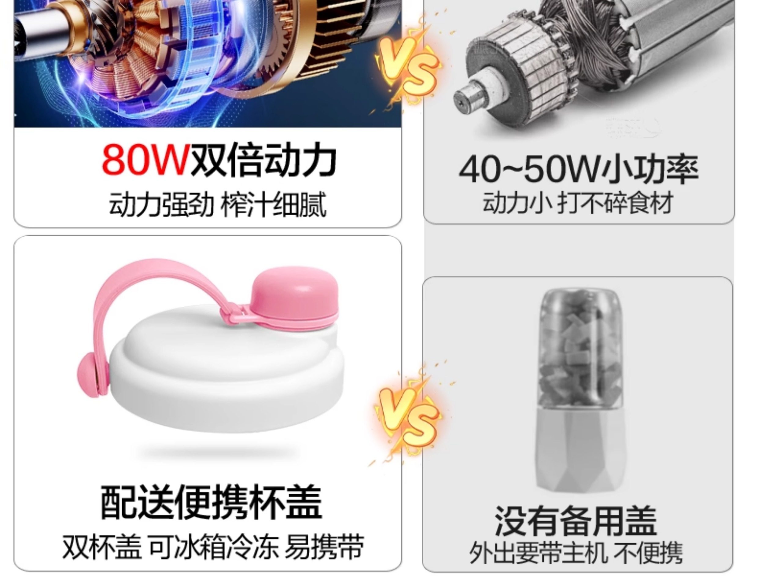 榨汁机附加功能 榨汁,碎冰,搅拌,干磨,无线便携