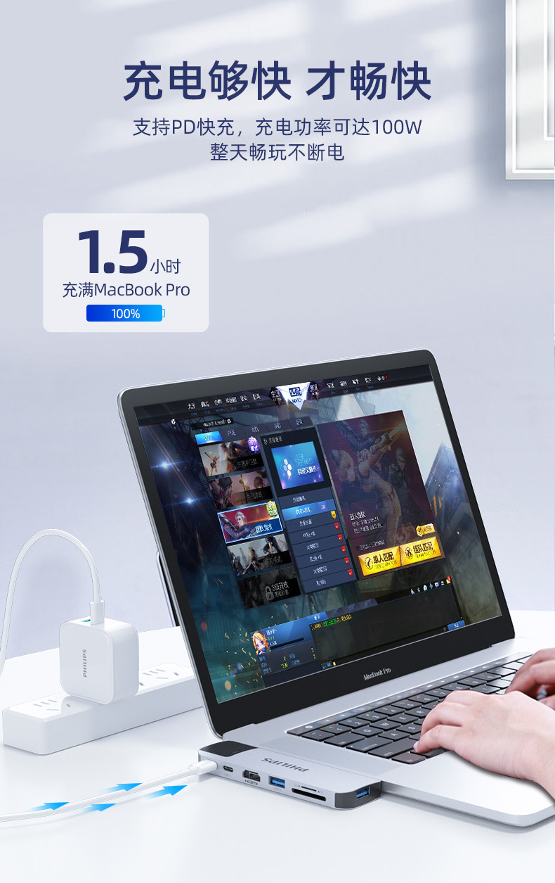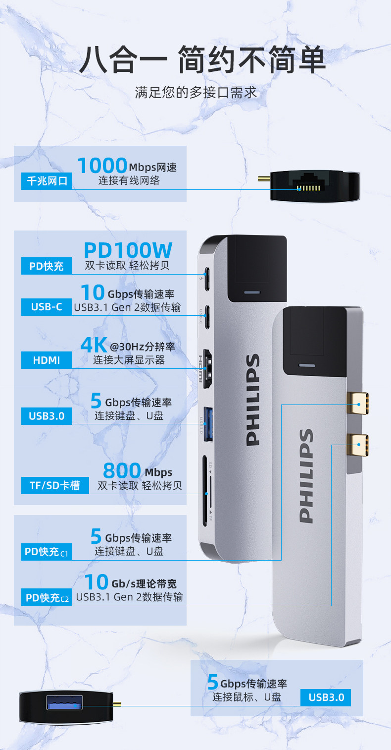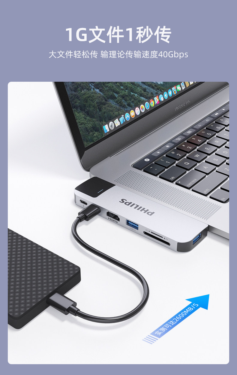 飞利浦拓展坞typec扩展坞适用mac苹果电脑转接头macbookpro笔记本投屏hdmi网口usb3.0雷电4air配件转换器iPad