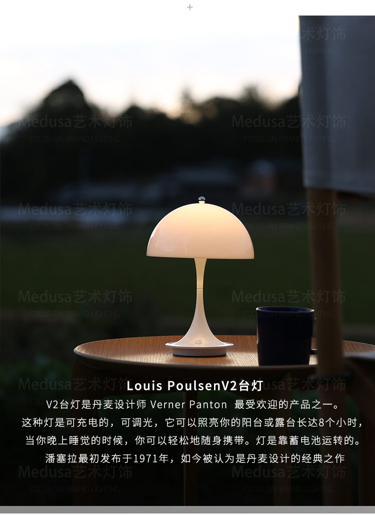 Danish Loius Poulsen Mushroom Rechargeable Night Table Lamp Design for Living Room, Bedroom, Study, with Adjustable Light Ambiance