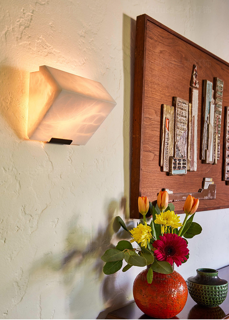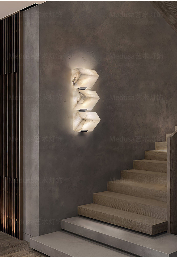 French Pierre Chareau Natural Marble Wall Lamp Designer Modern Staircase Corridor Aisle Bedside Wall Lamp