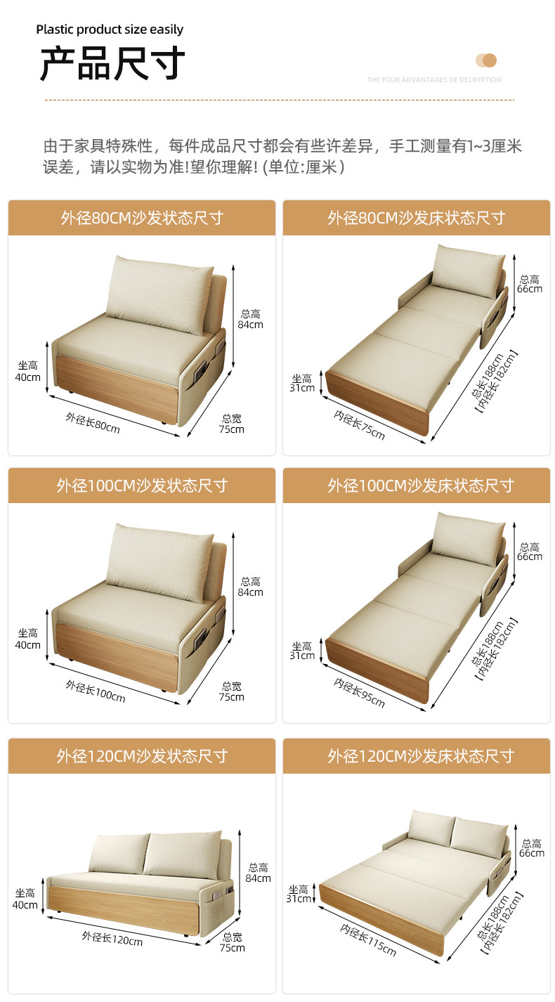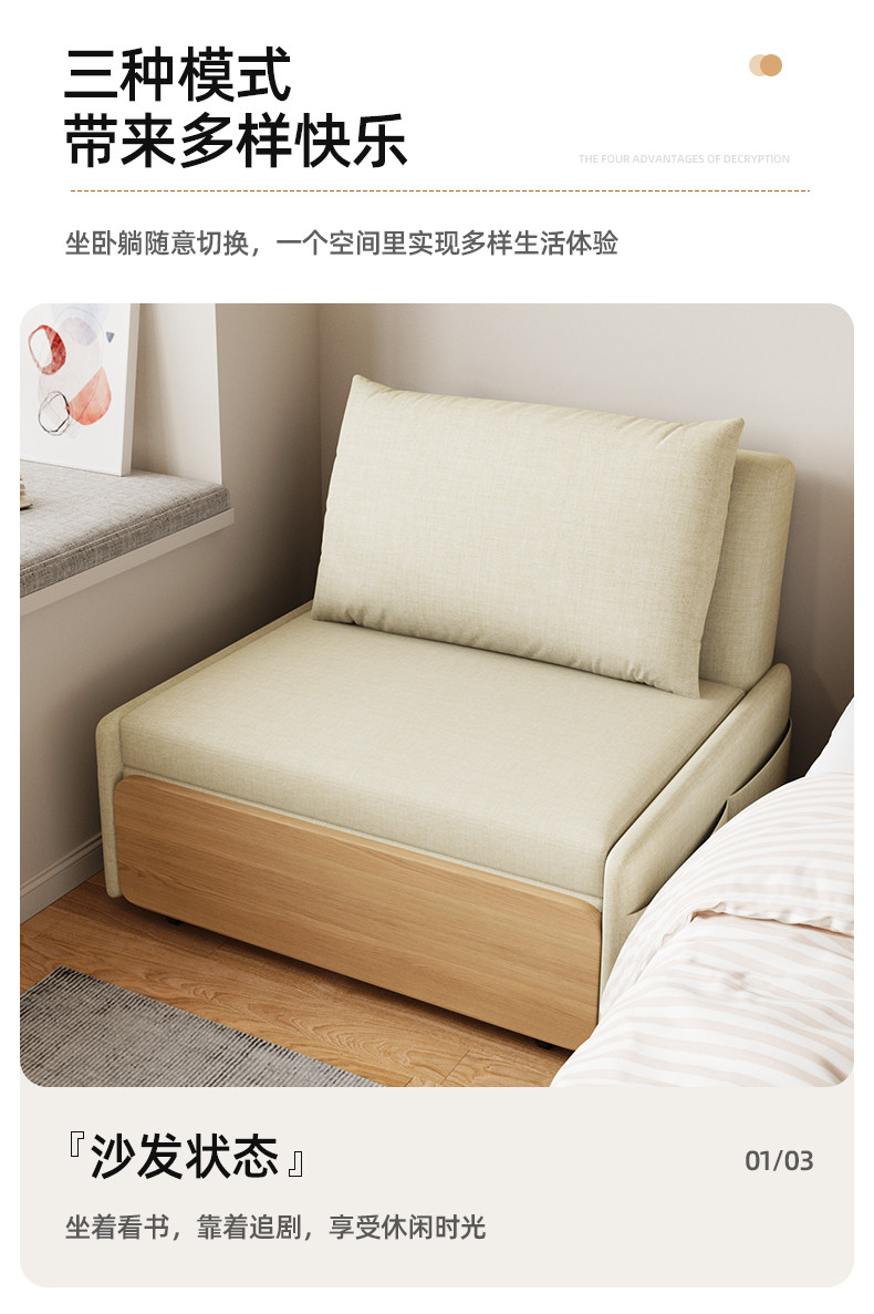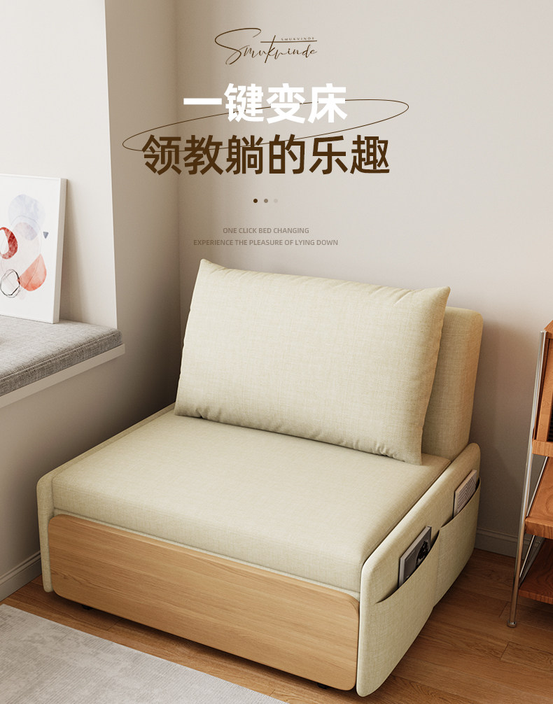 Kailaixing log style Nordic small apartment study balcony all-in-one dual-use retractable 1.2m fabric sofa bed