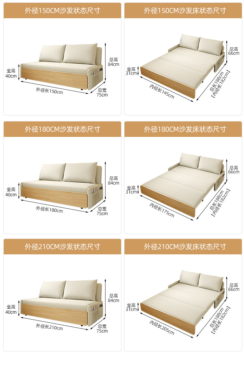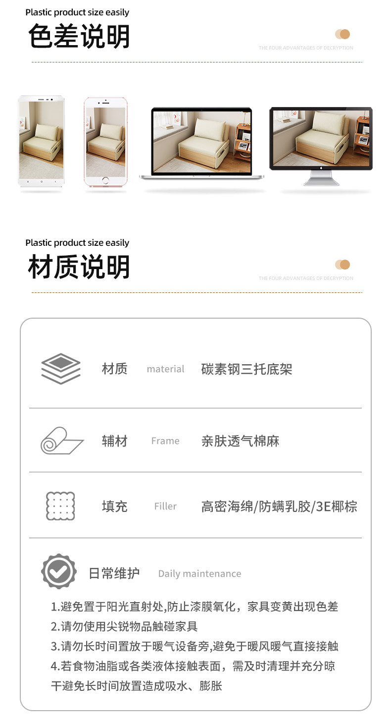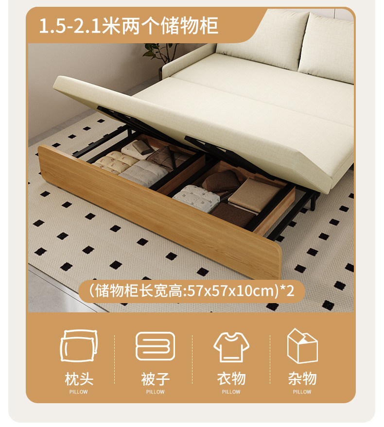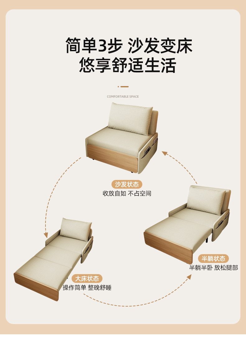 Kailaixing log style Nordic small apartment study balcony all-in-one dual-use retractable 1.2m fabric sofa bed
