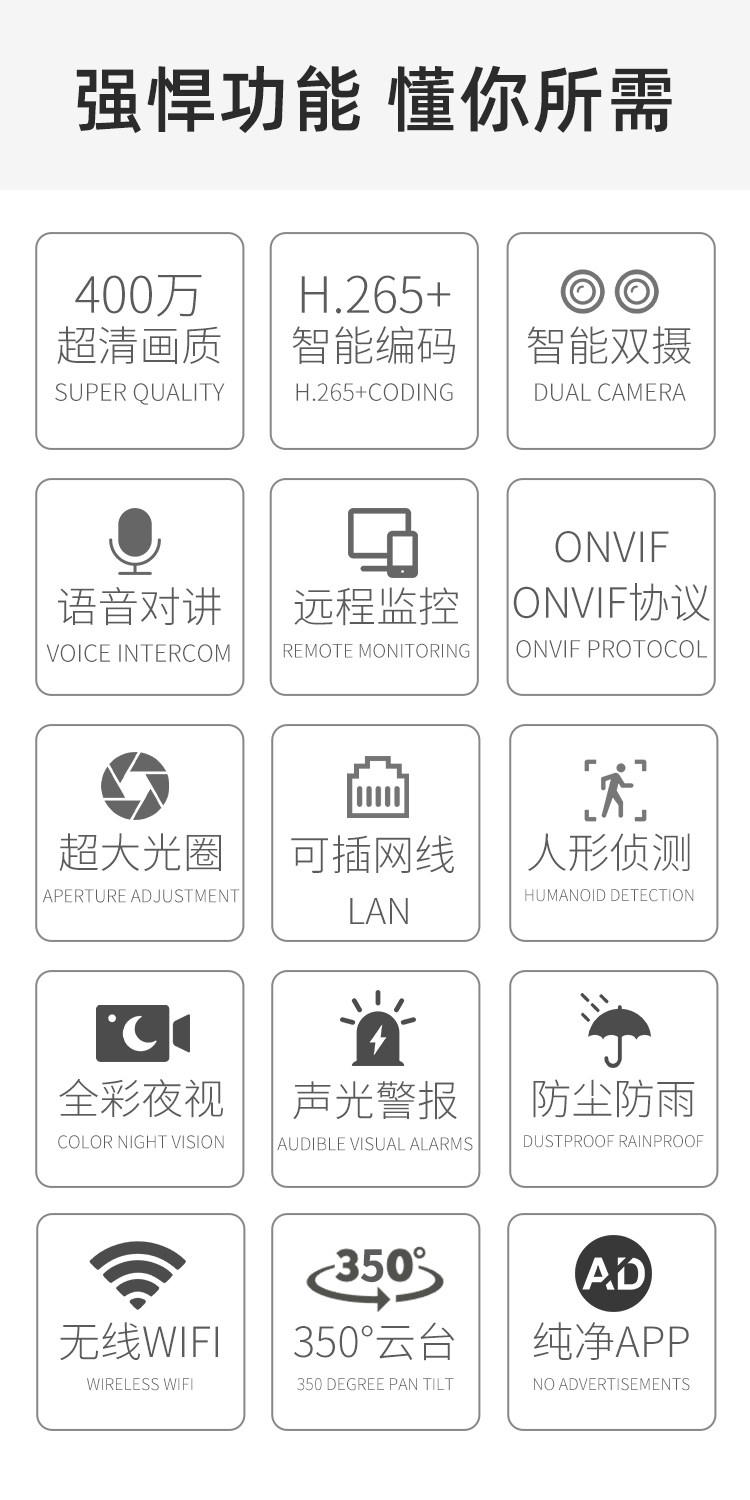 Lifetime Free Data Ball Camera Wifi/4G Ultra Black Light Full-Color Night Vision Mobile Phone Intercom Camera E52/D52