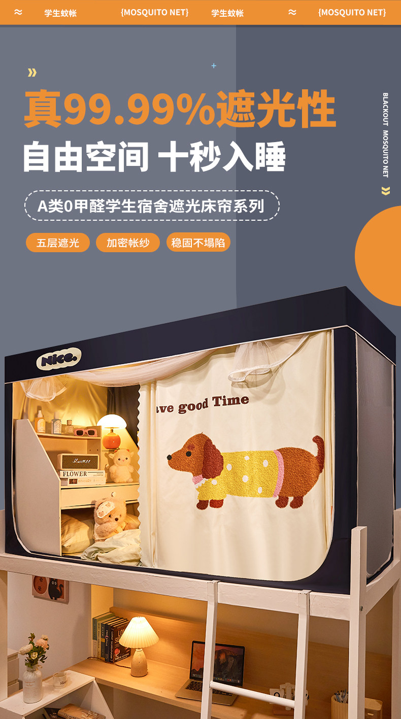 大学生宿舍强遮光蚊帐床帘一体式上下铺专用2025新款寝室全包床幔