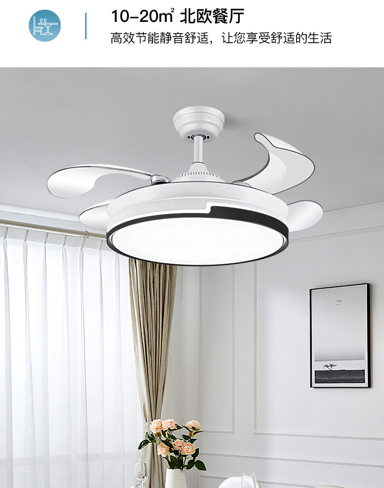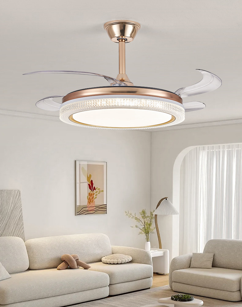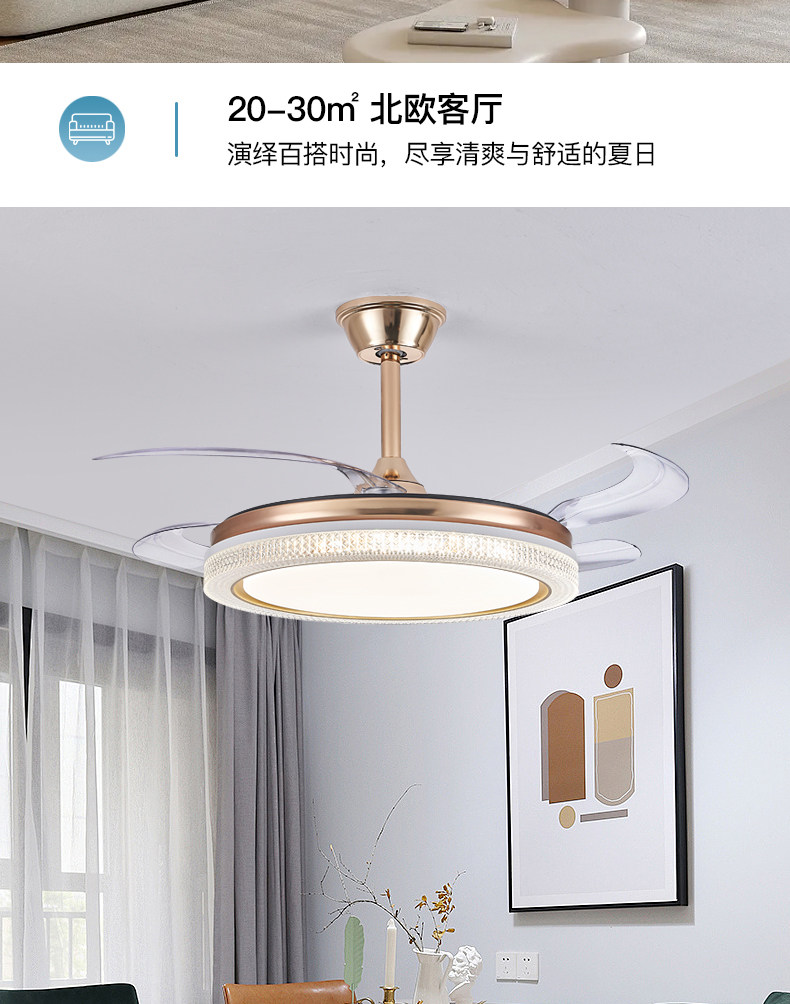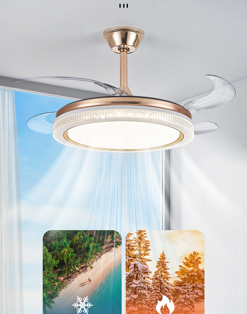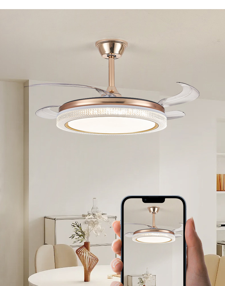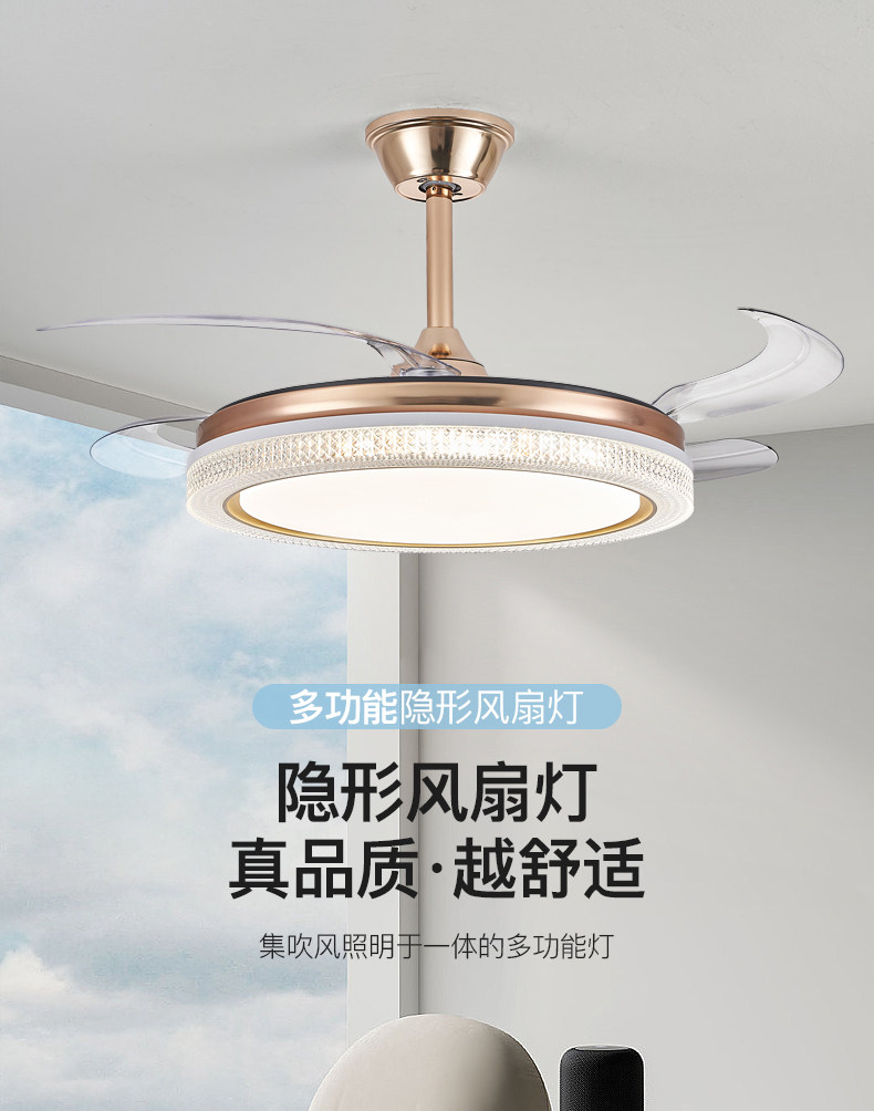Hong Kong-Style Invisible Fan Light, Living Room Chandelier, Nordic Light Luxury Smart Invisible Bedroom Dining Room Integrated Crystal Fan Light