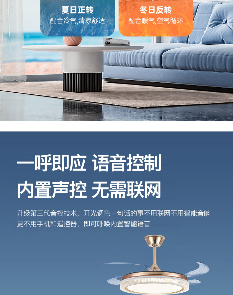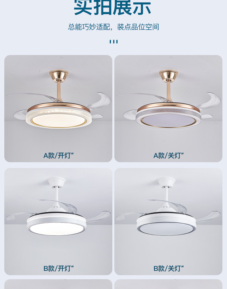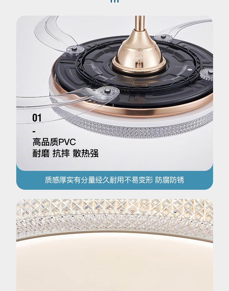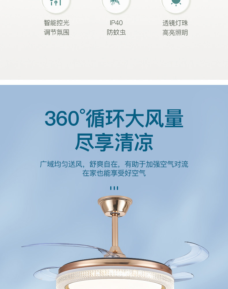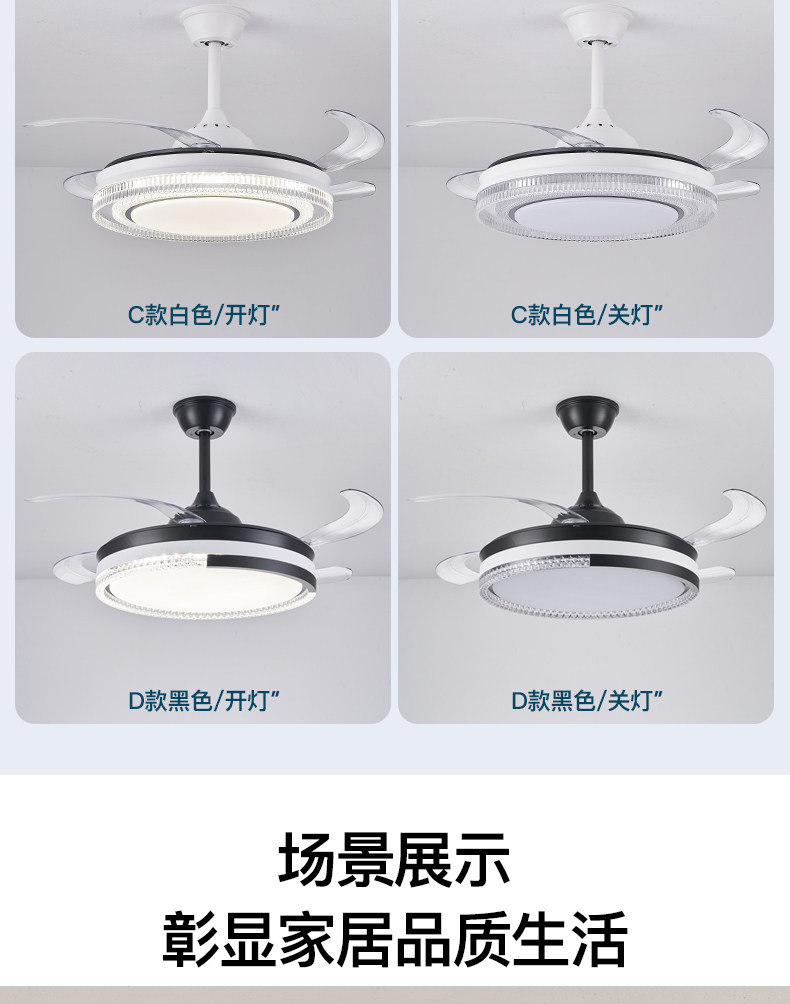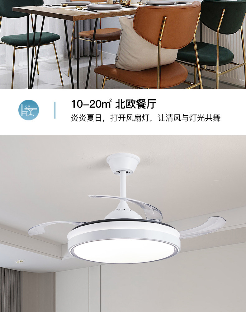 Hong Kong-Style Invisible Fan Light, Living Room Chandelier, Nordic Light Luxury Smart Invisible Bedroom Dining Room Integrated Crystal Fan Light