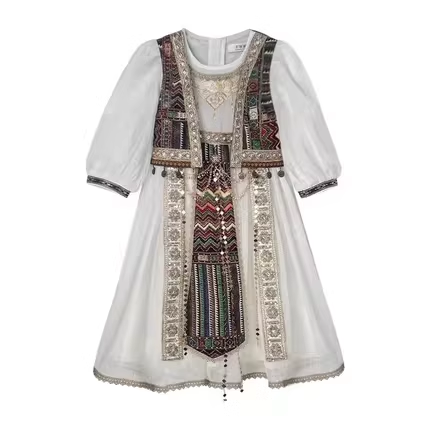 Girls' Xinjiang Uyghur Clothing, Han Dynasty, Kidsren's Western Style Brother and Sister Ethnic Minority Dance Clothing Dress for Women