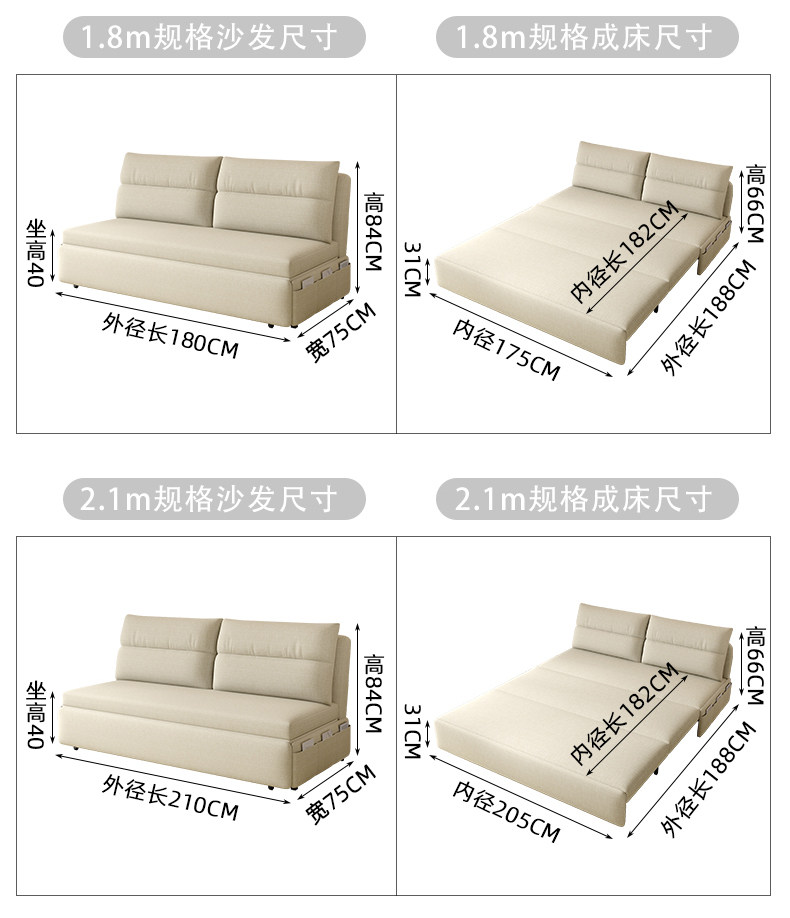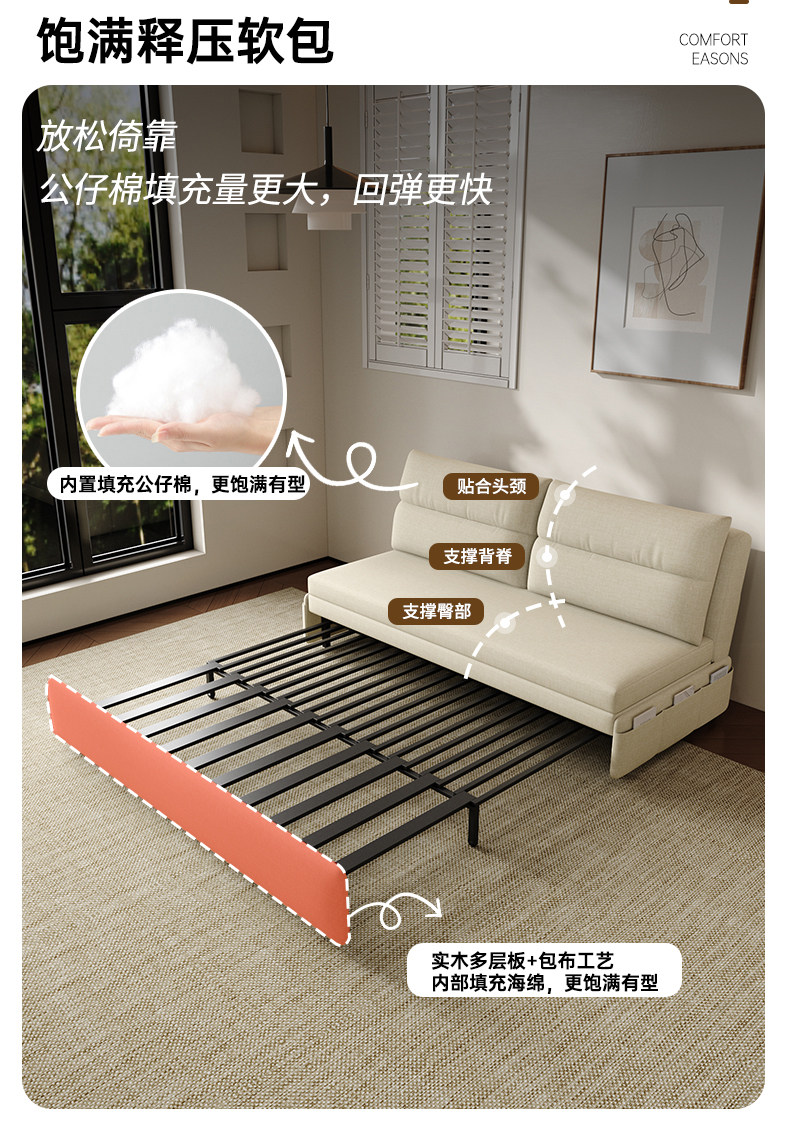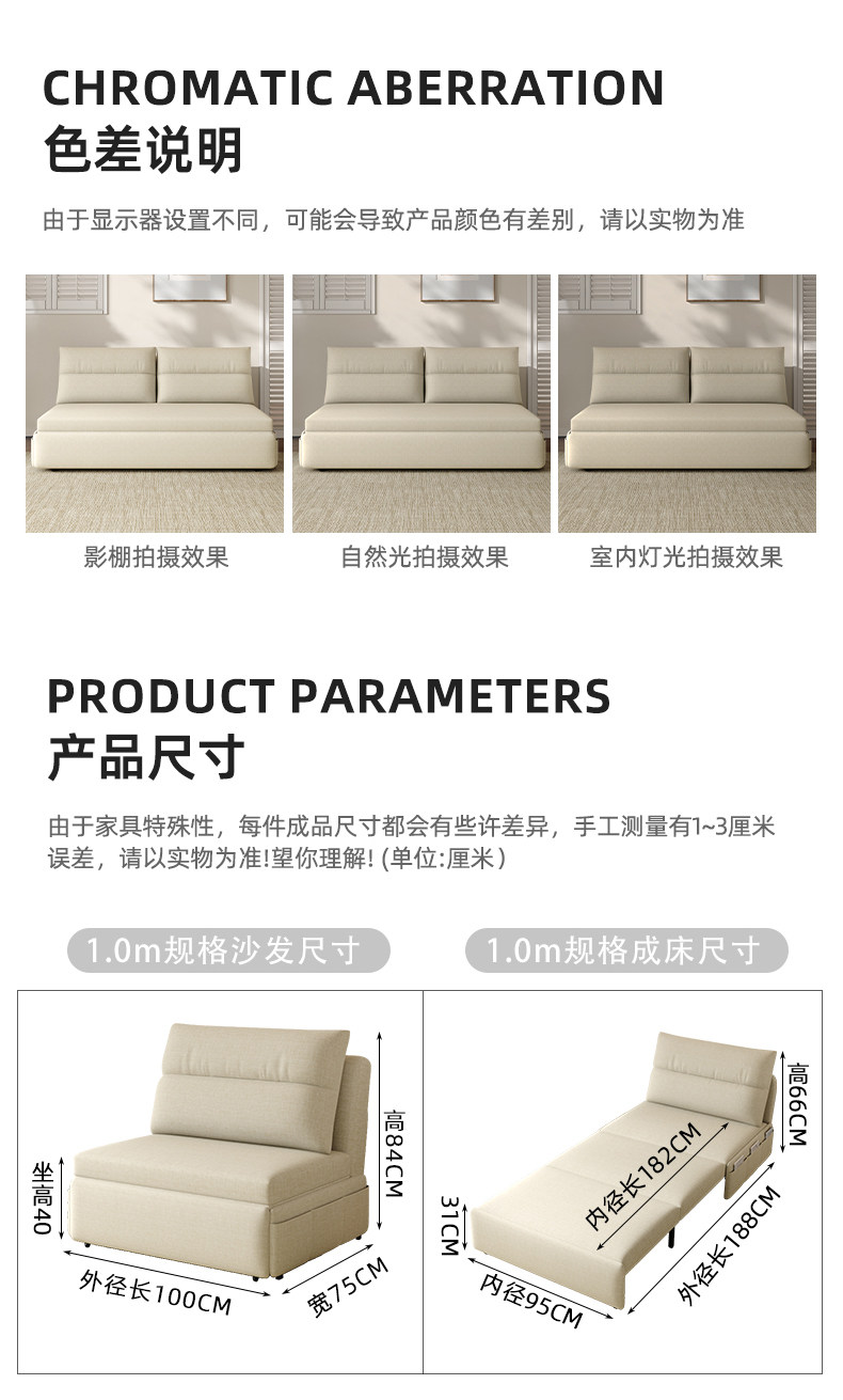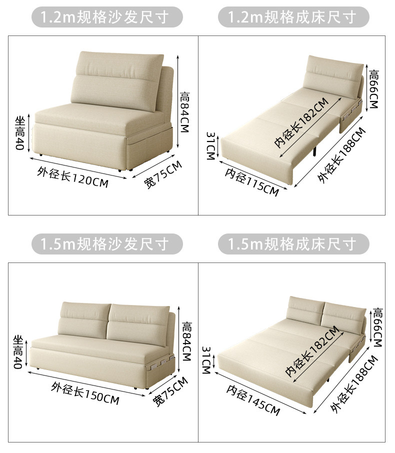 GREMOR2025 nuevo sofá cama plegable de doble uso estilo crema de 1,2 m para apartamento pequeño, moderno y sencillo, plegable, push-pull
